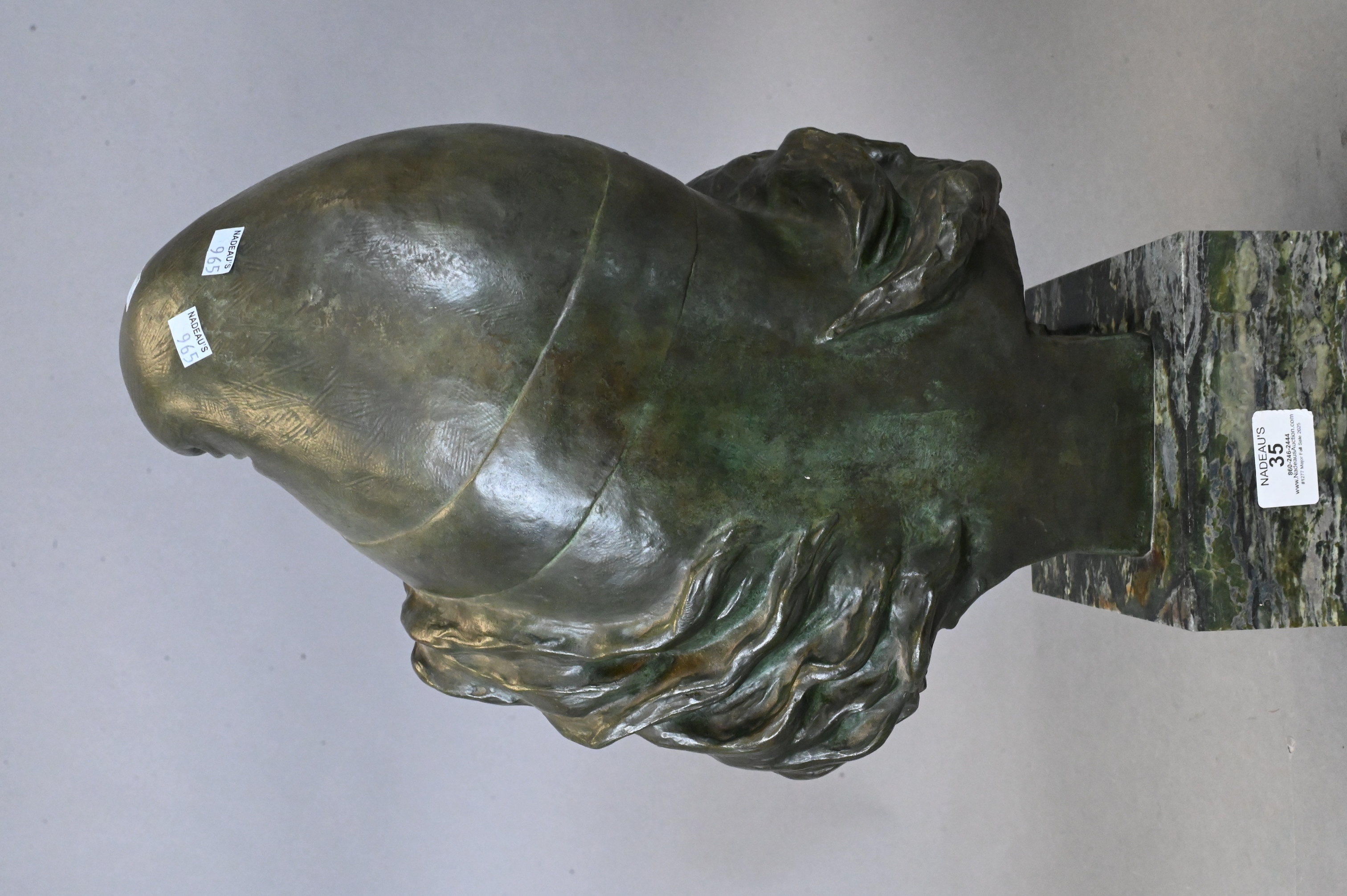Figure with wide eyes and open mouth in a cry of defiance, hair swept back beneath the Phrygian cap. The model is derived from François Rude’s monumental sculptural ensemble La Marseillaise (also known as The Departure of the Volunteers of 1792), completed in 1836 for the Arc de Triomphe in Paris and regarded as one of the masterpieces of French Romantic sculpture.