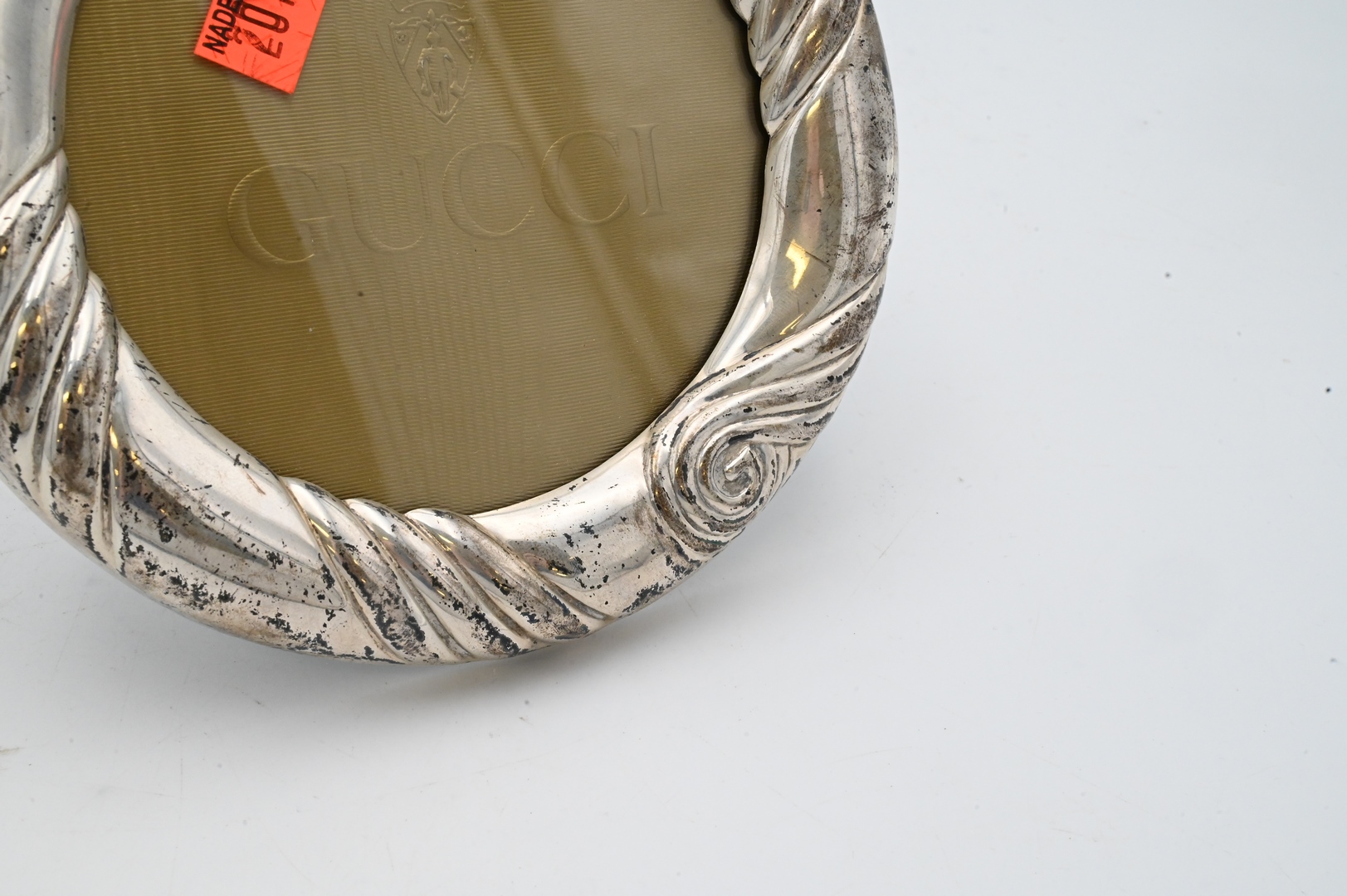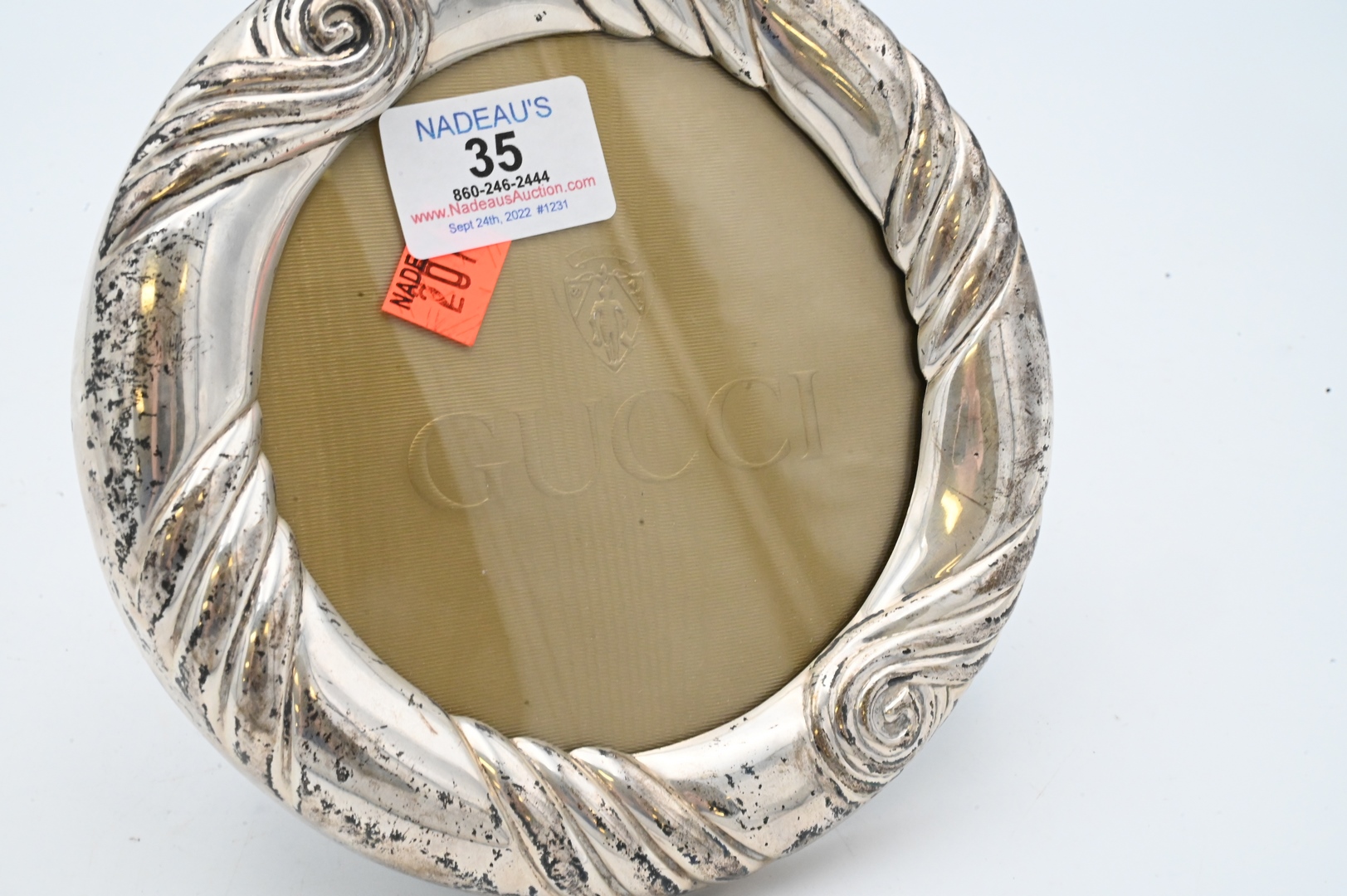 Gucci Sterling Silver Picture Frame, marked “Gucci, Italy 925” on back, height 7 inches.