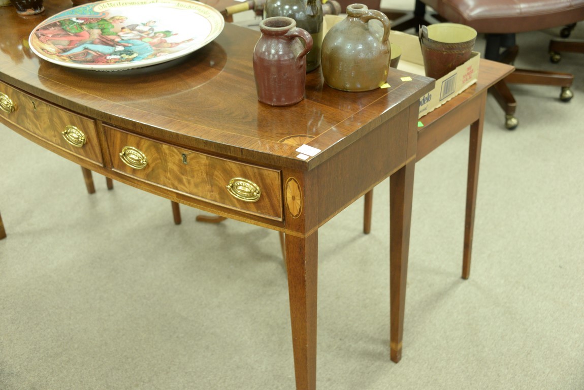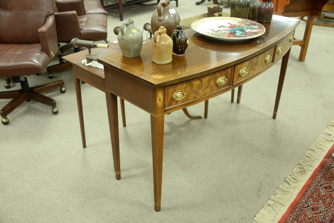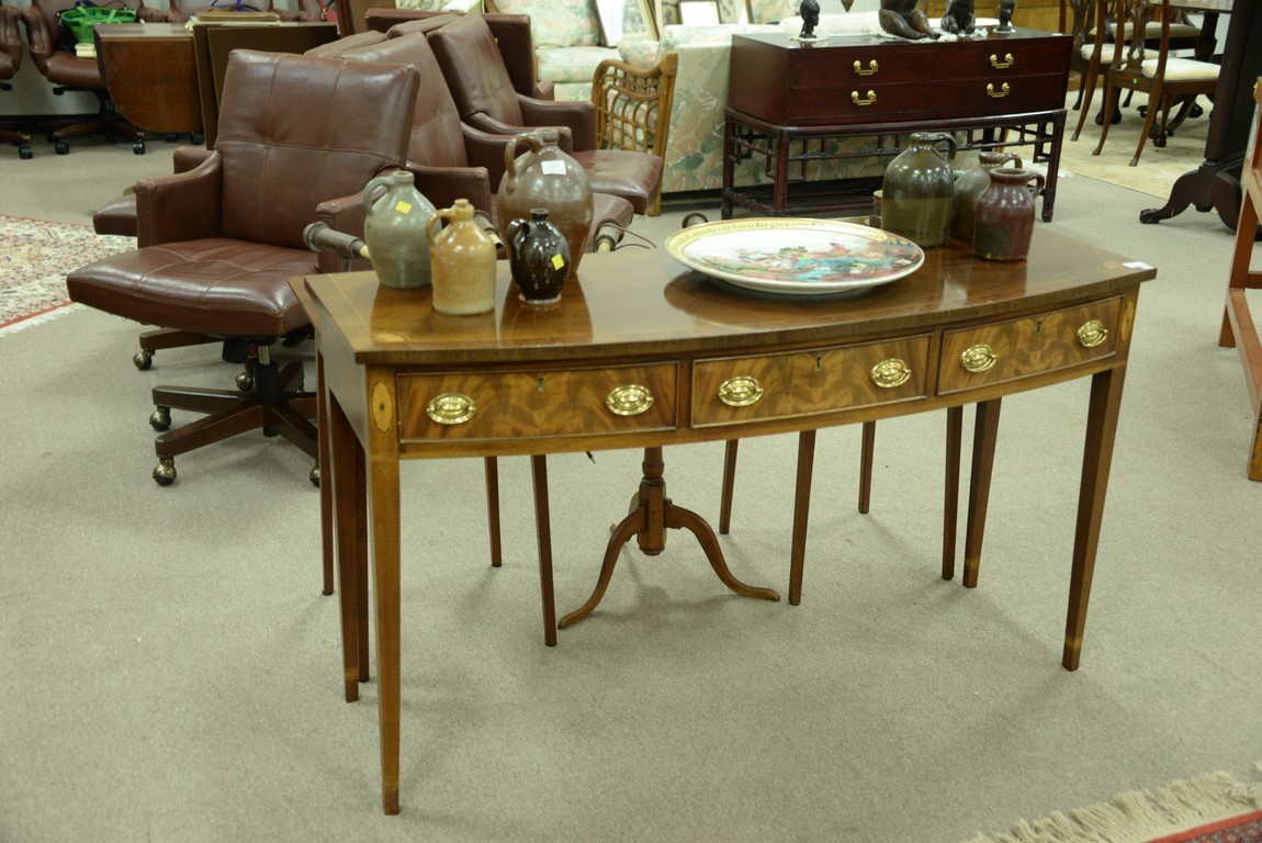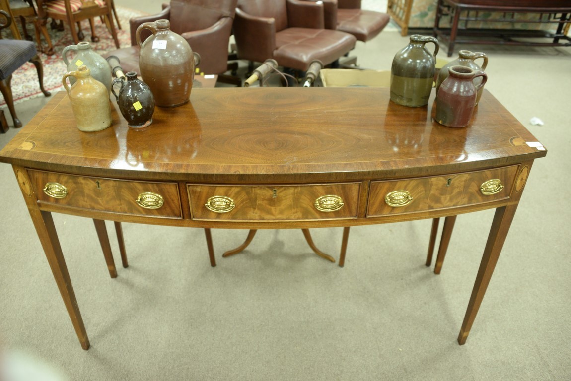 Lot 35: Hickory mahogany server with fan and panel inlays. ht. 32in., wd. 56in., dp. 20in.