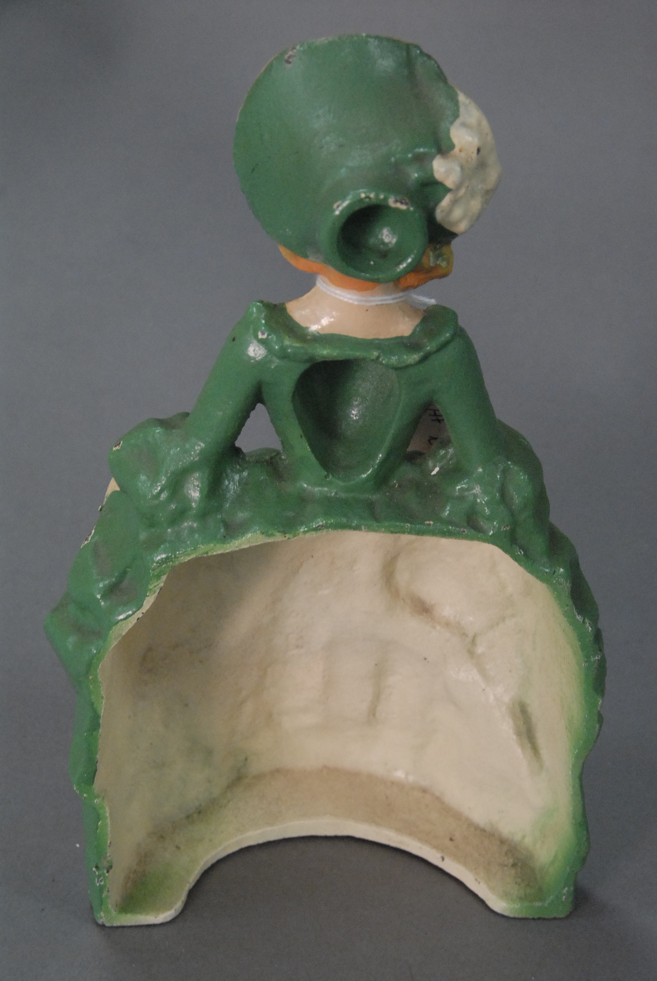 Iron doorstop of woman in Victorian dress and bonnet, ht. 10.