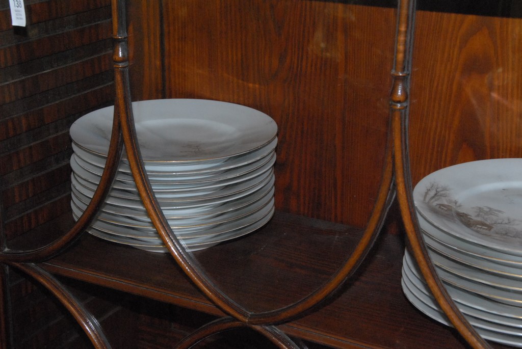 Lot 35: Japanese china dinnerware set, 119 pieces to include 25 dinner plates, 26 saucers, 19 dessert plates, 12 salad plates, 28 cups, 2 pl…