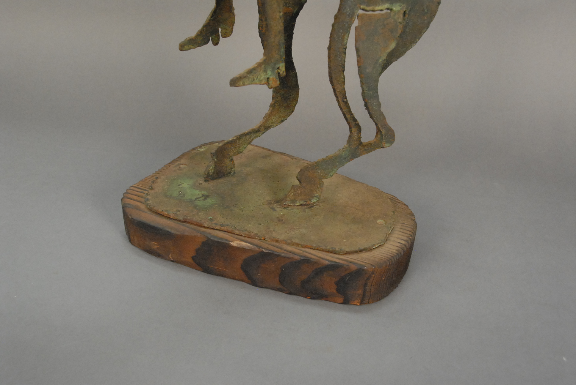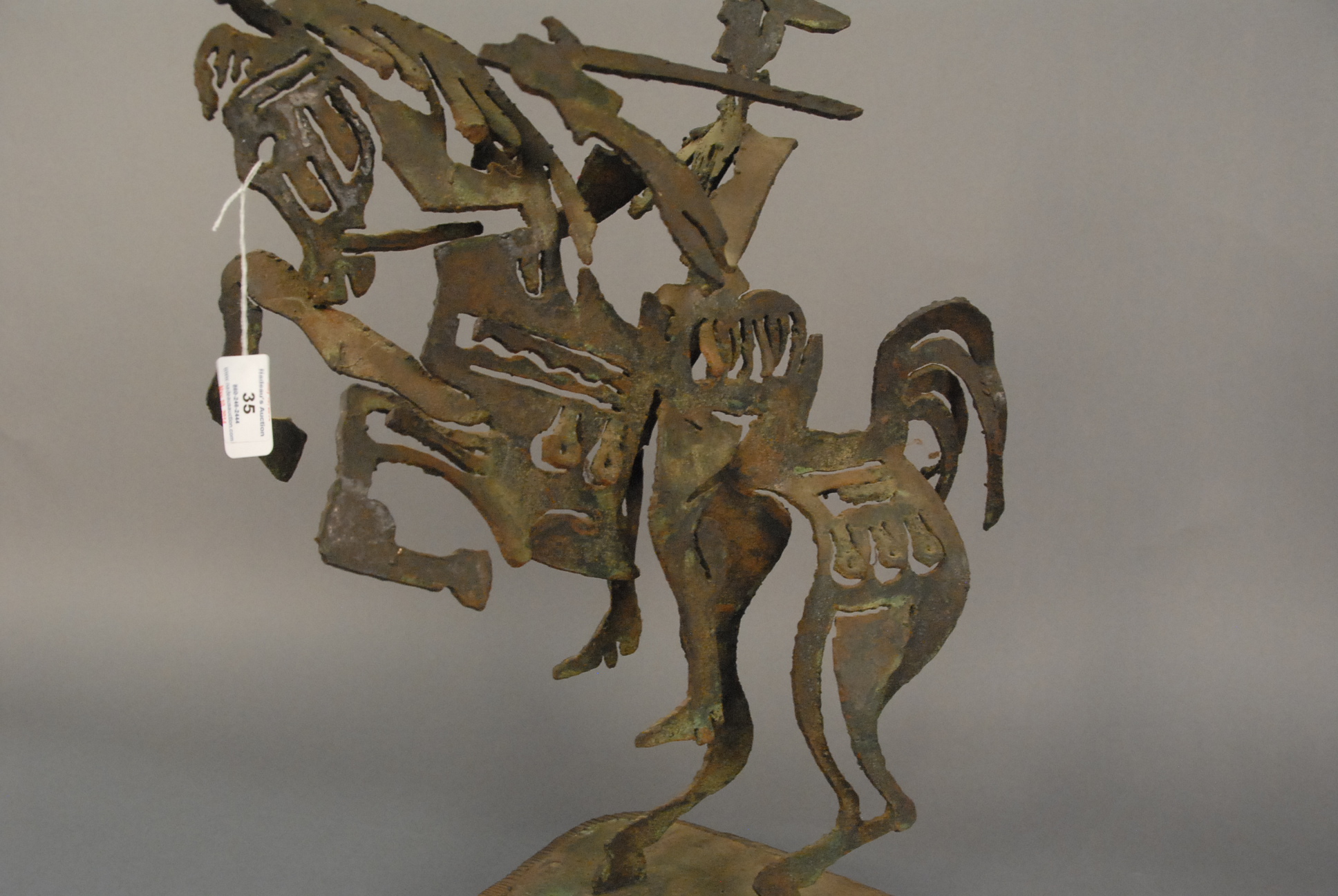 Lot 35: Large iron sculpture of a cowboy riding a horse, ht. 24in.
