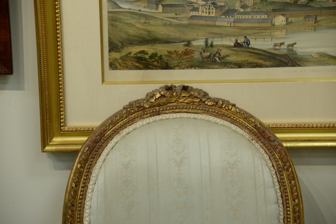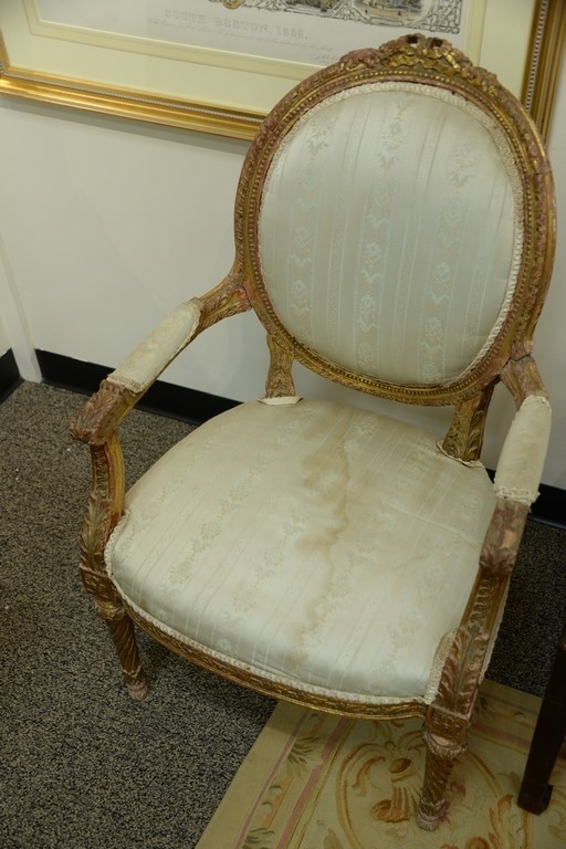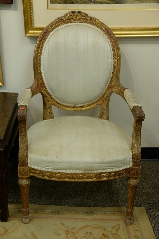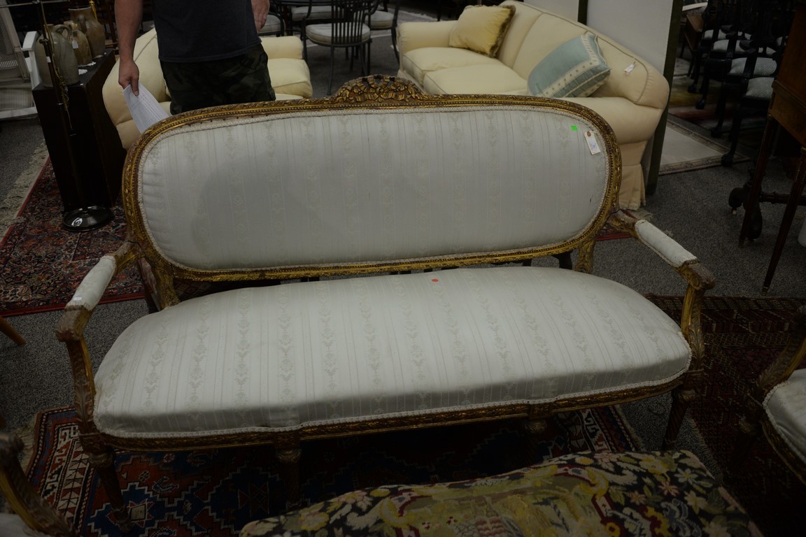 Louis XVI three piece suite to include canape with gilt frame and pair of fauteuil. ht. 40in., wd. 64in. Provenance: Collection of Anne Jones Willis and the late John Ralph Willis, New Jersey