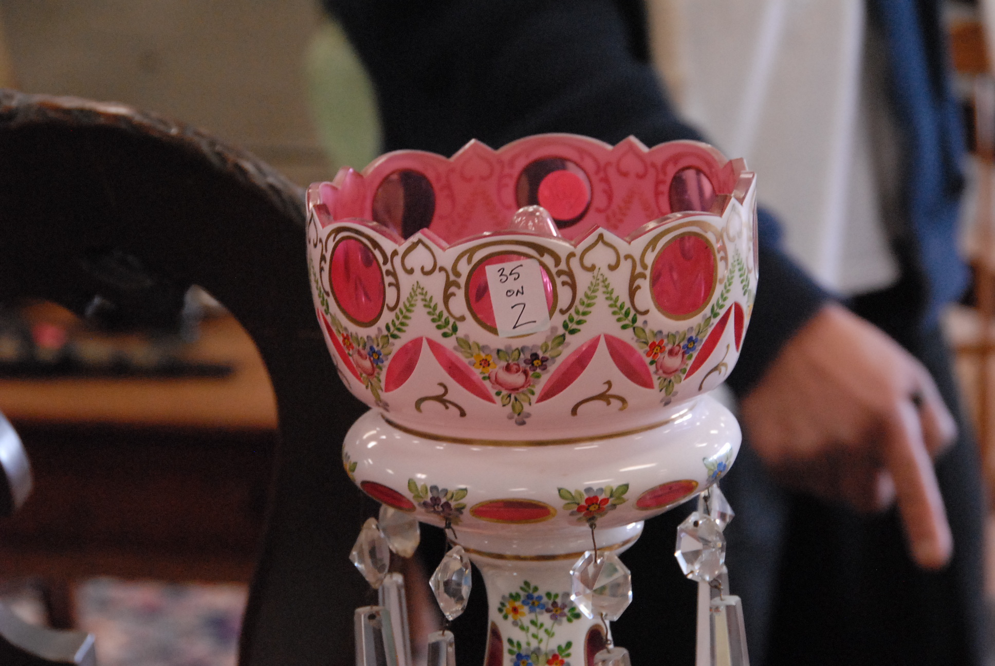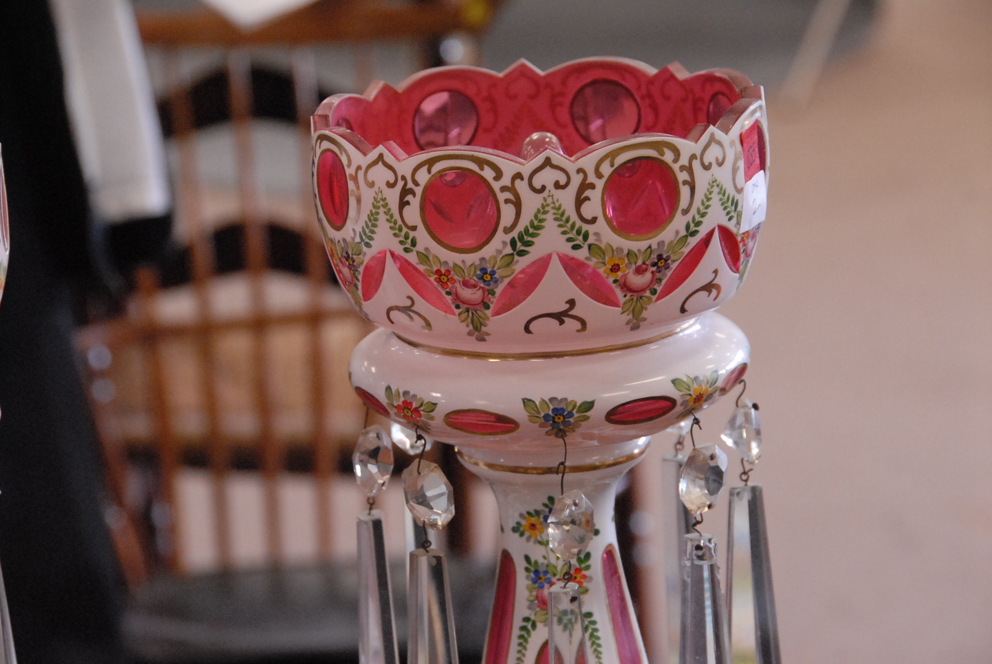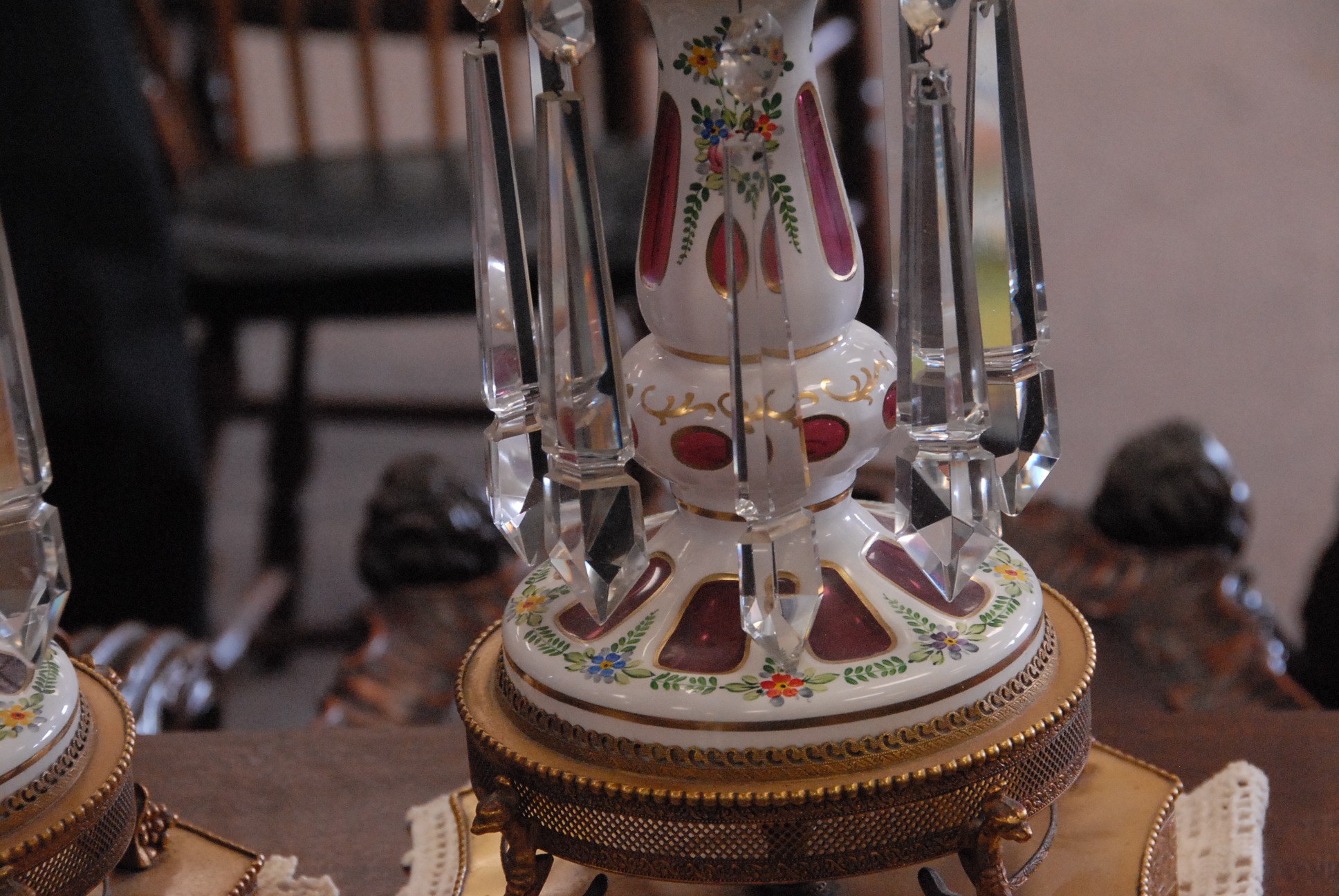 Pair of overlay girandoles on bases, electrified