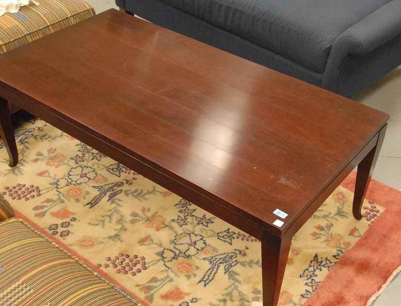 Lot 35: Stickley contemporary cherry coffee table, ht. 18 1/2in. lg. 50in. and Stickley signed mahogany end table.