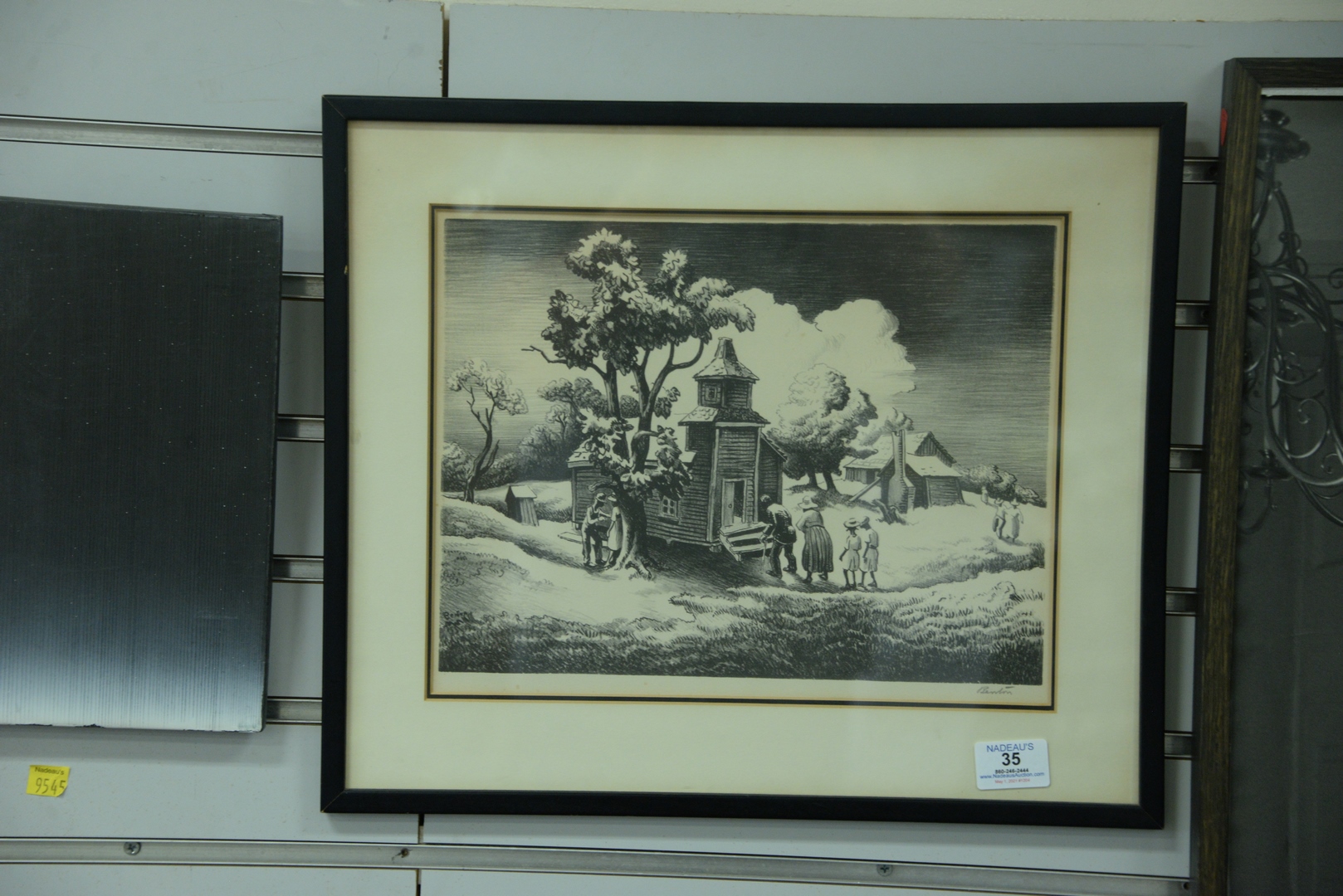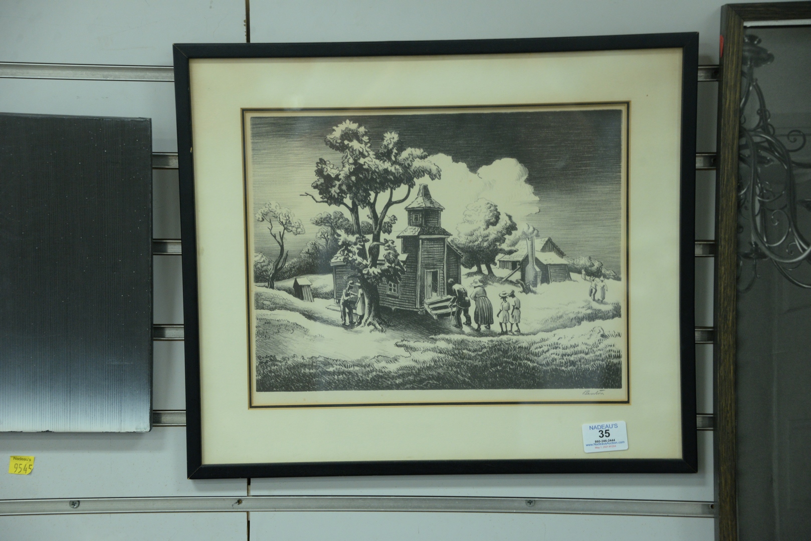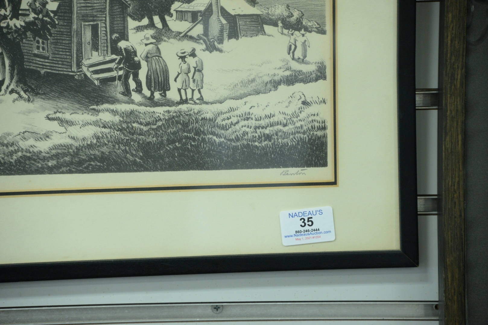 Lot 35: Thomas Hart Benton (American, 1889-1975), Sunday Morning, 1939, lithograph on paper, pencil signed lower right, sight size: 10 1/4″ x 13″.