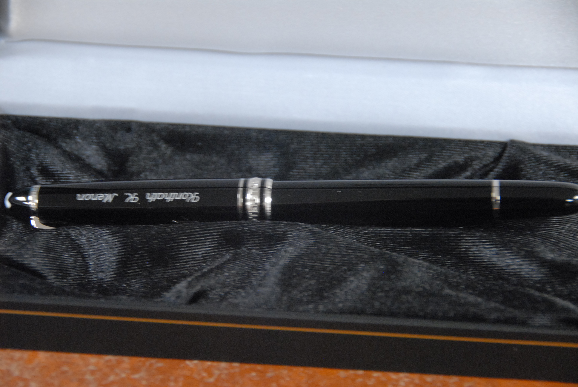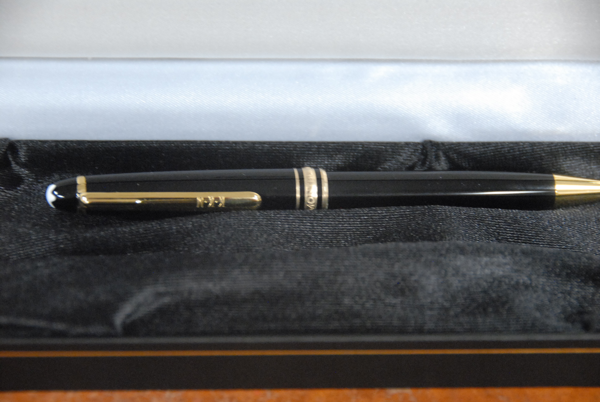 Two Mont Blanc Meisterstuck Classic ball point pens, one with gold and one with silver.