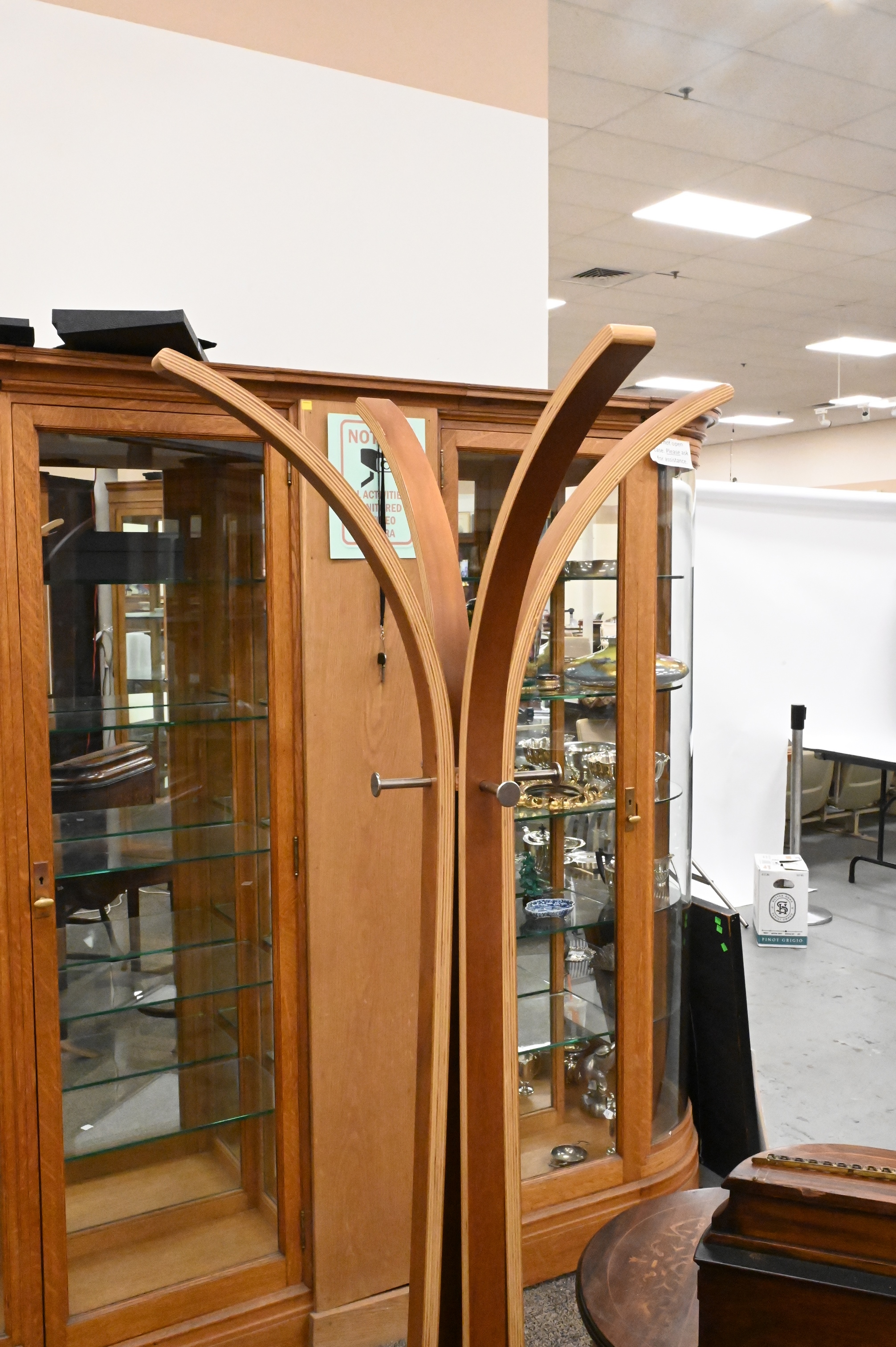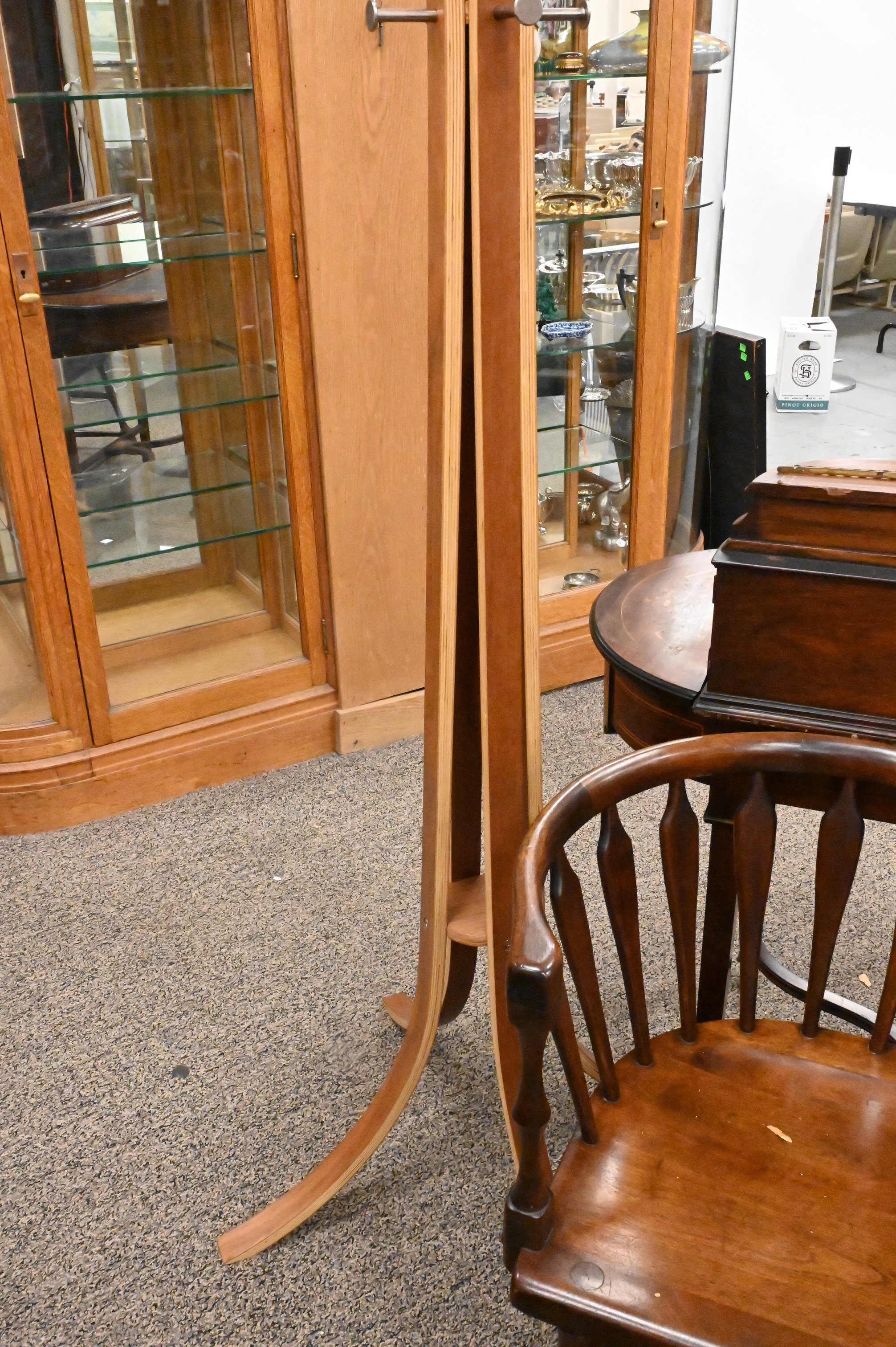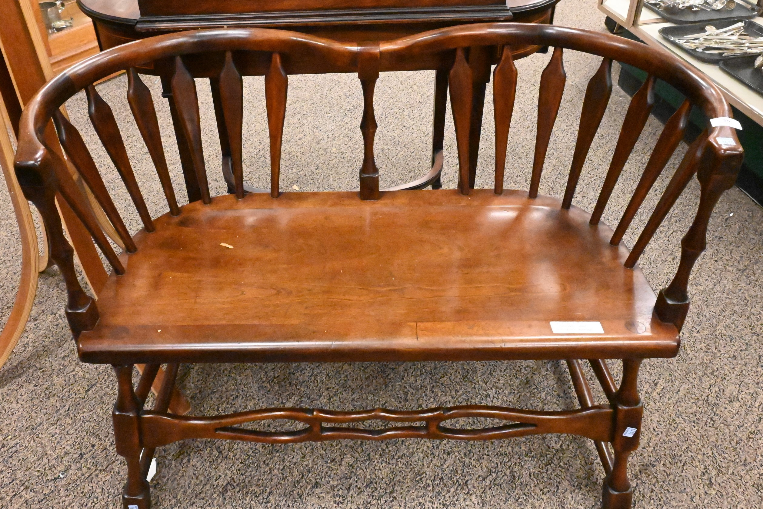 Two Piece Benchmade Lot, to include double seat walnut bench, along with cherry bentwood coat rack, height of coat rack 72 inches, width of bench 41 inches.