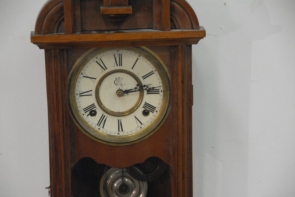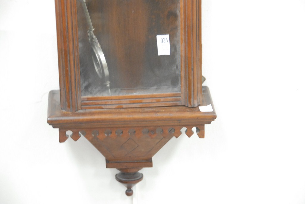 Walnut key wind Victorian regulator clock, ht. 34in.