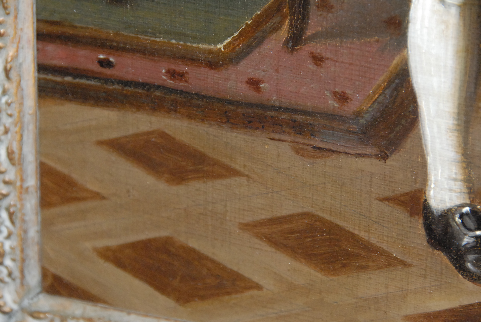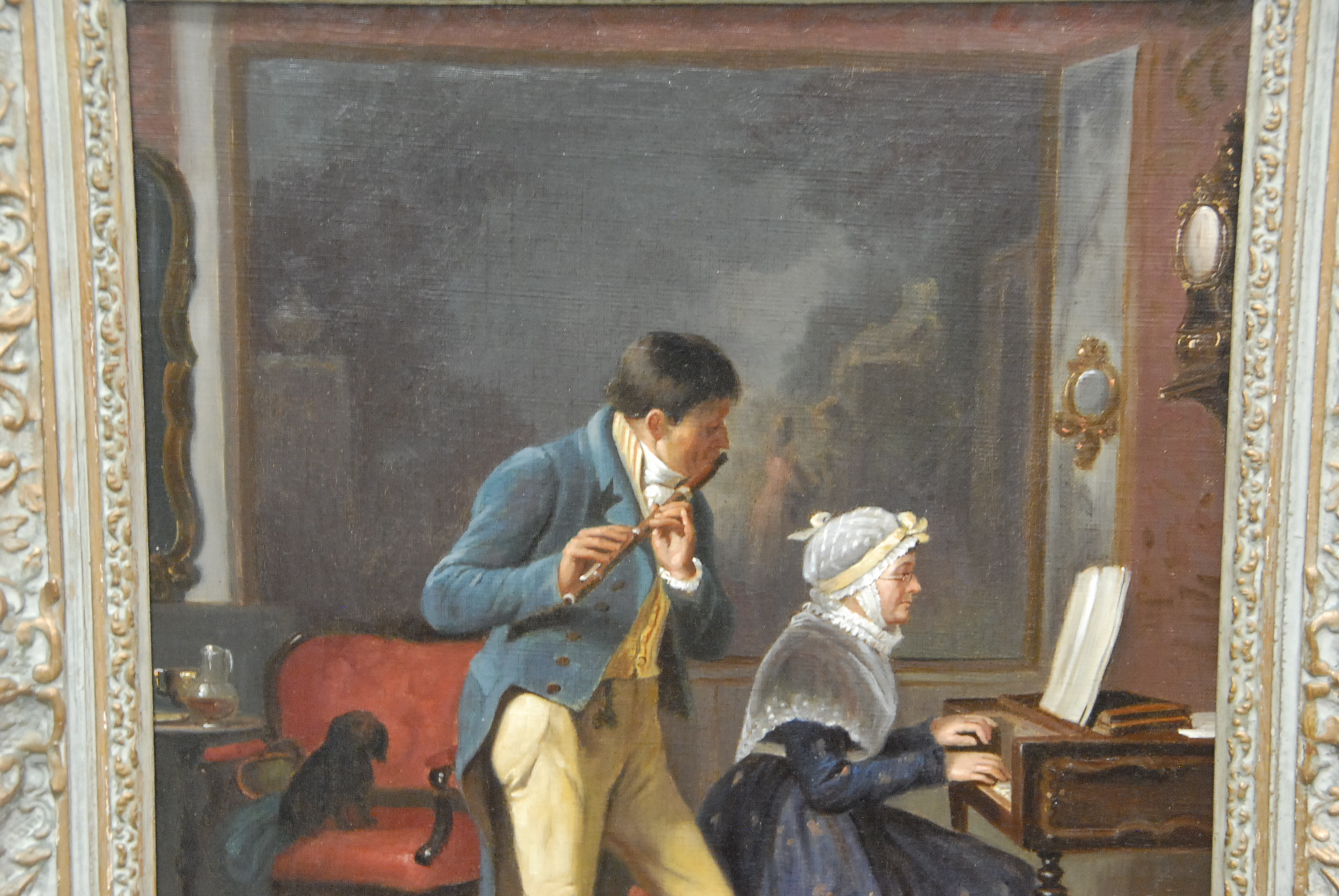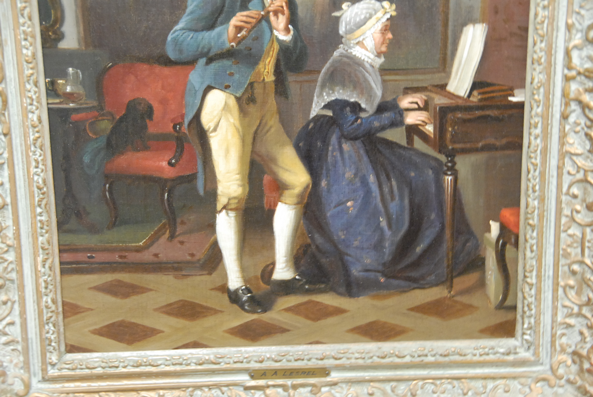 Adolphe Alexandre Lesrel 1839-1929 interior scene playing music oil on canvas, signed lower middle left, LESREL, also with a plaque attributing to Lesrel.