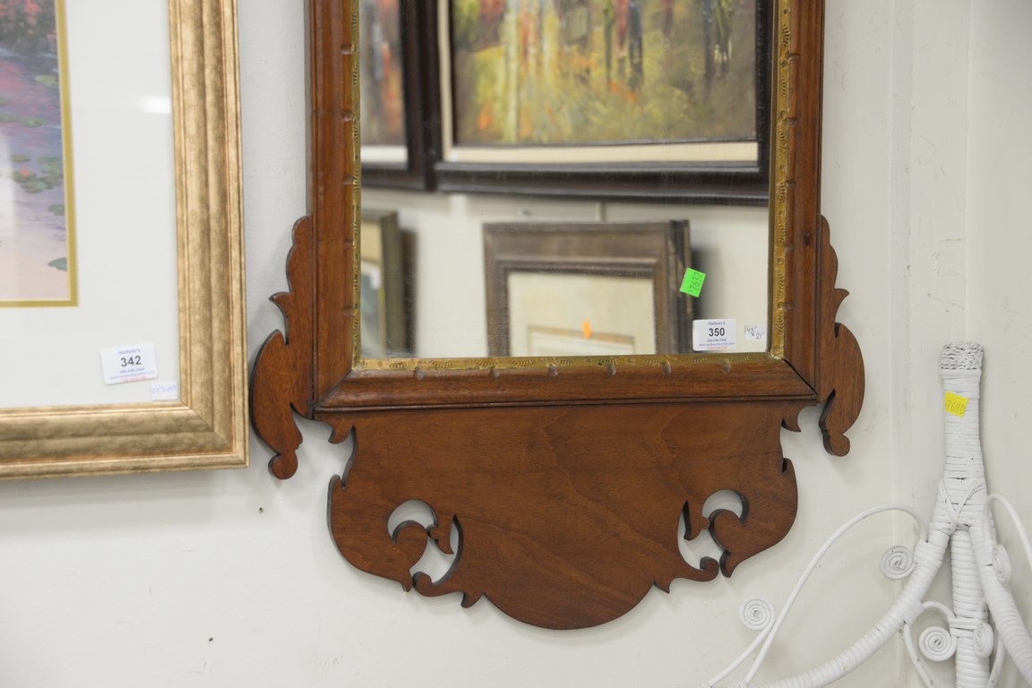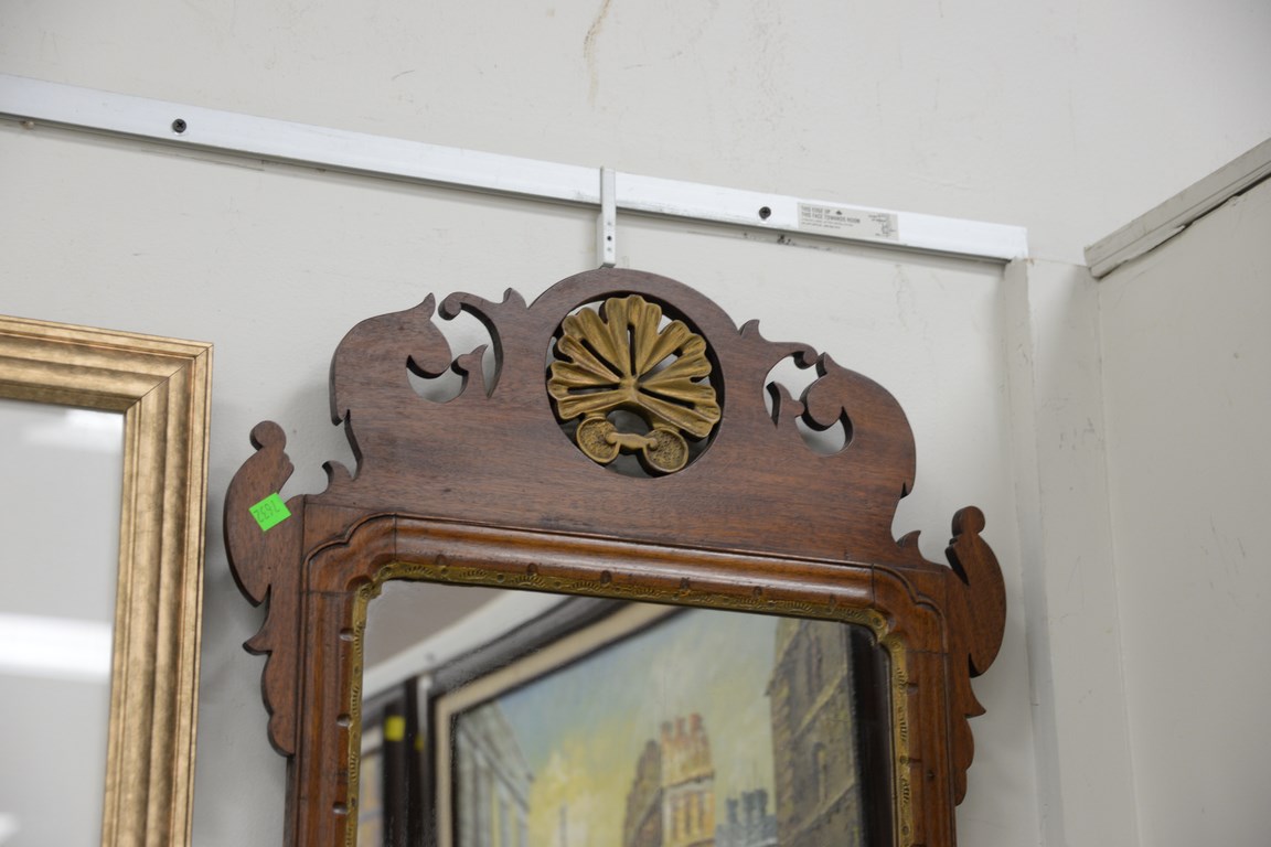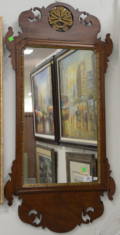 Custom mahogany Chippendale style mirror with gold shell in top, early 20th century, 48 x 21.