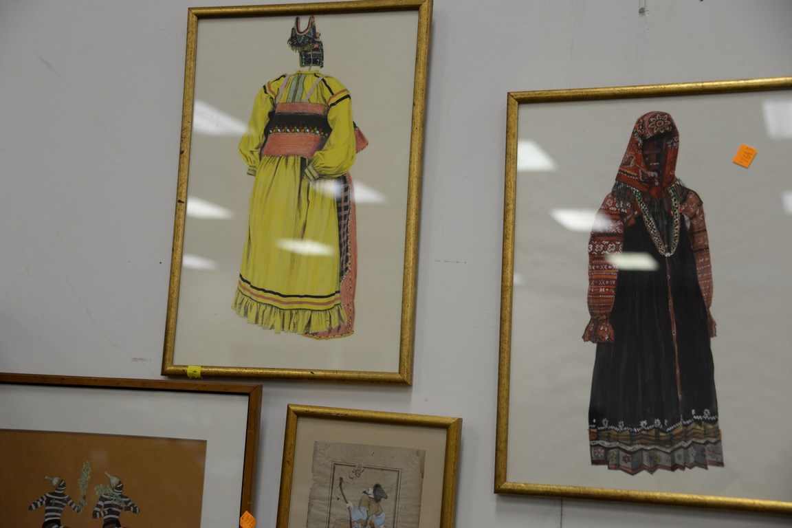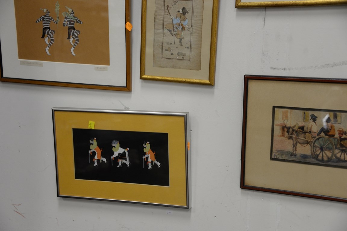 Lot 350: Group of eight framed South American gouache, watercolor and oil paintings, one signed Lola 98, two of Indian dress, one of Indian c…