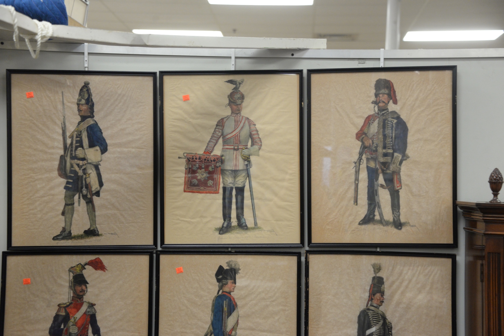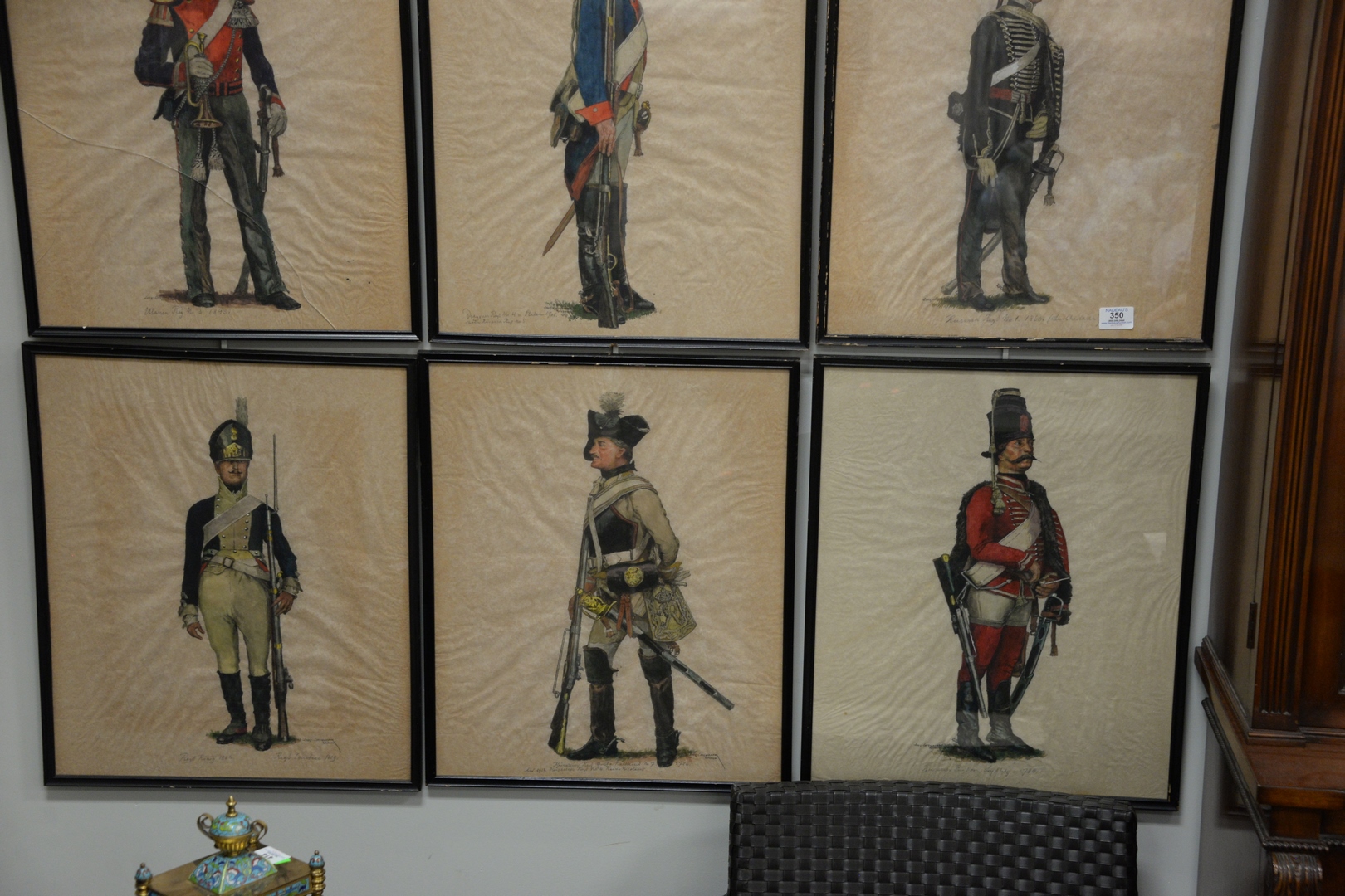 Lot 350: Group of Ten Walter Von Looz-Corswarem (German, 1874 – 1946) Prussian Military Costume Studies, each watercolor on paper, each signed in ink and inscribed in pencil along the lower edge, sight size 20 3/4″ x 16 3/4″.