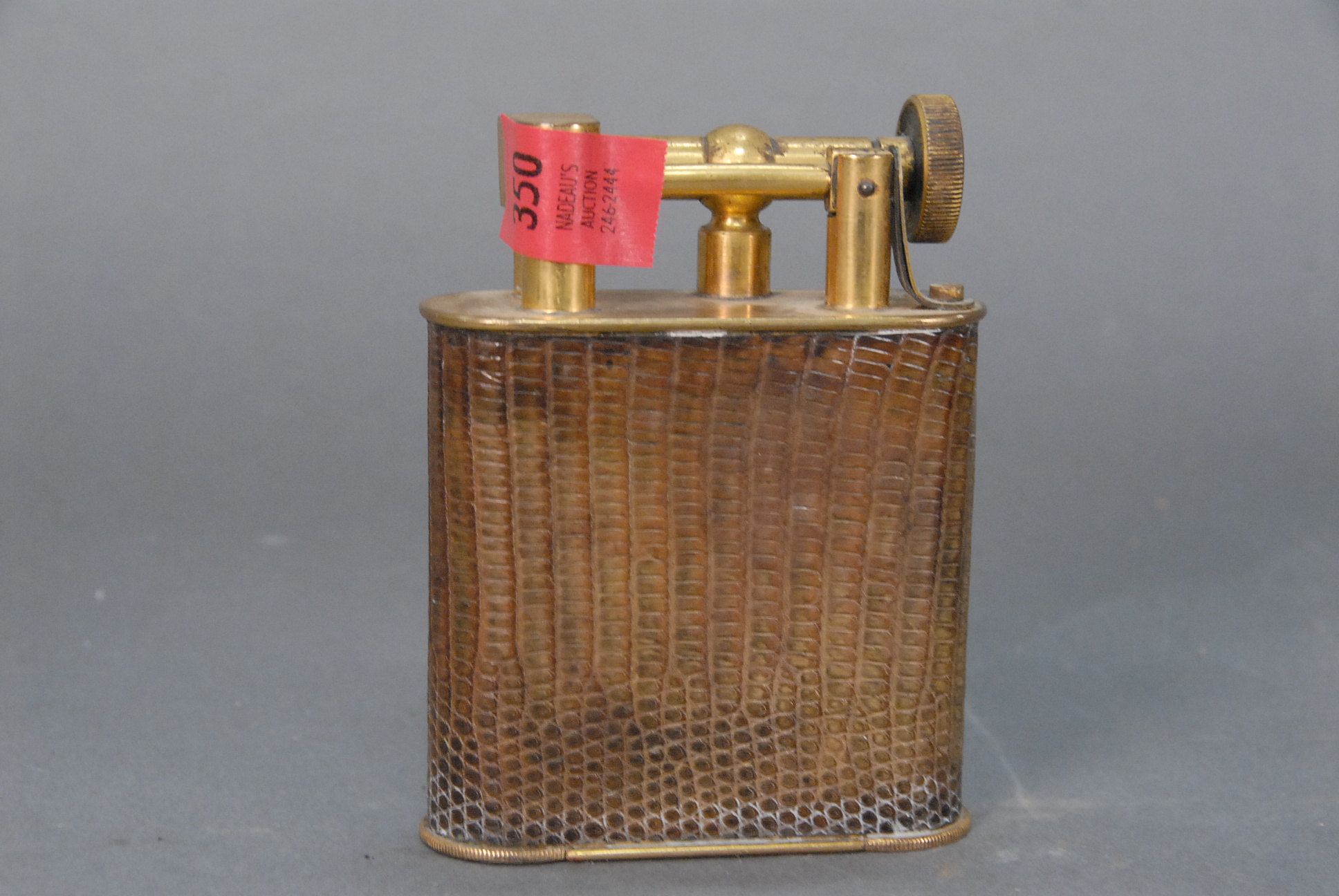 Large Wilson Gil Classic Lighter with lizard skin body, ht. 4 1/2, wd. 3 1/2.