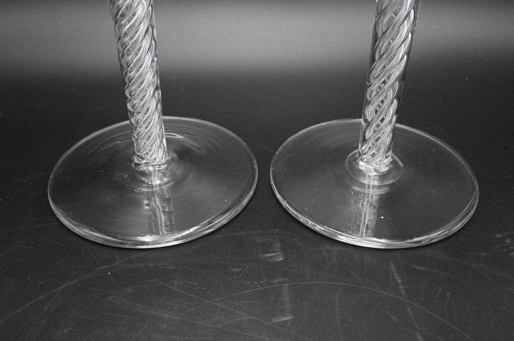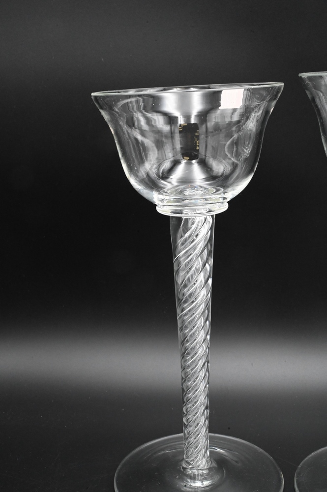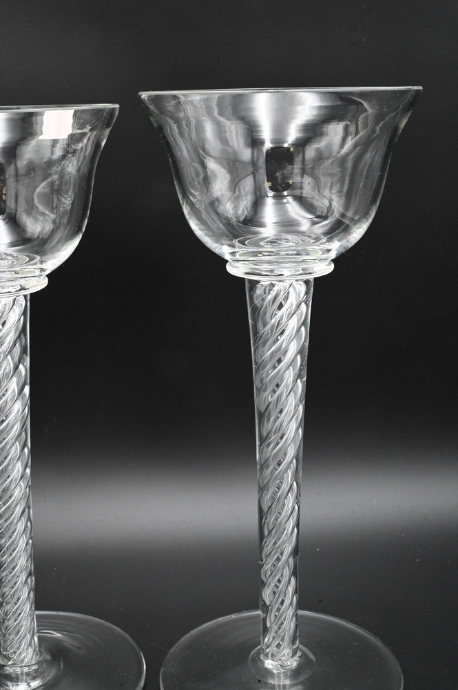 Pair of Large Steuben Stems, having twist stems, Steuben fleur-de-lis acid mark, height 12 inches.