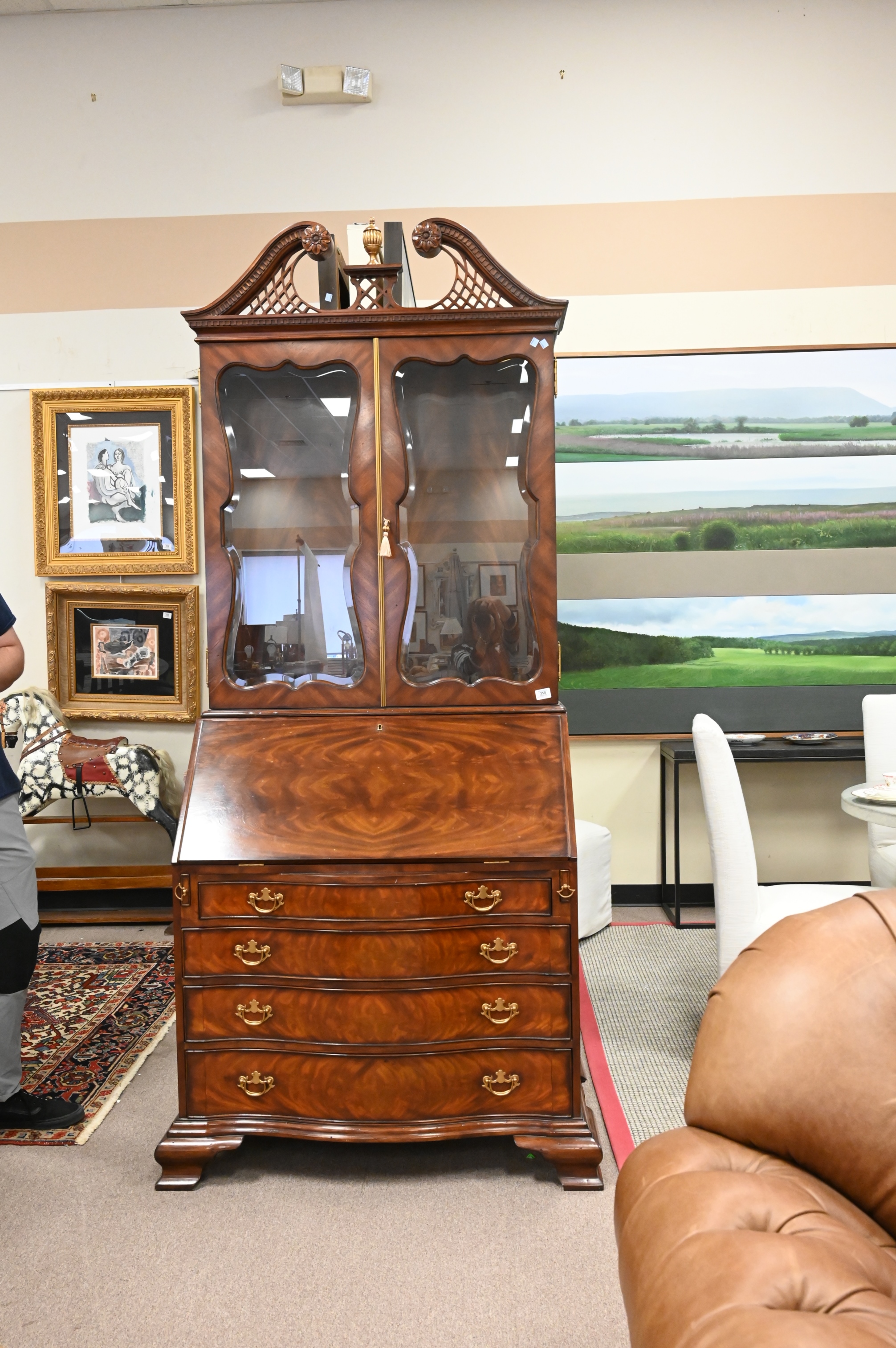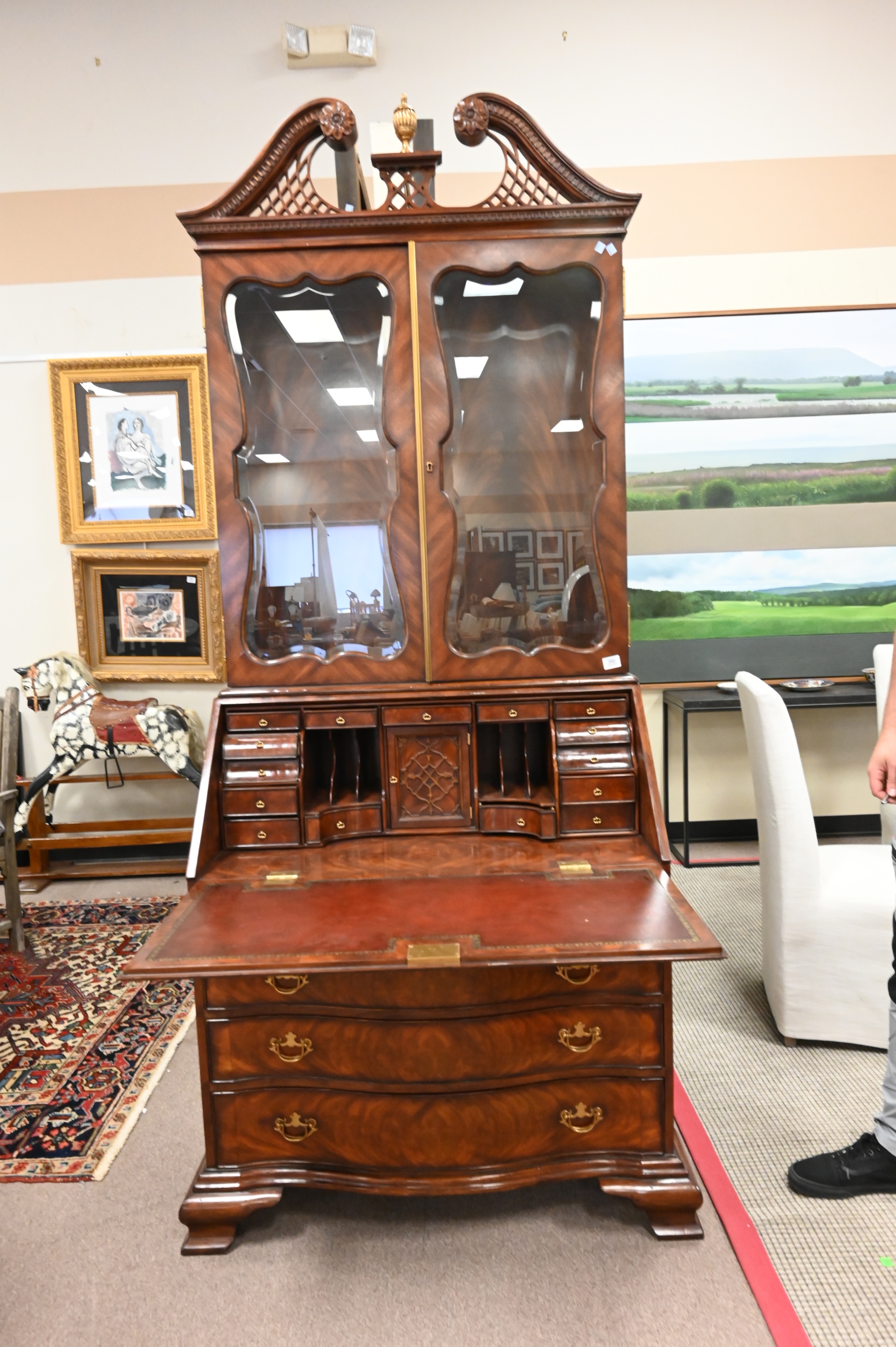 Theodora Alexander Secretary Desk, having bookcase top, on serpentine base, height 93 inches, width 38 inches, depth 22 inches