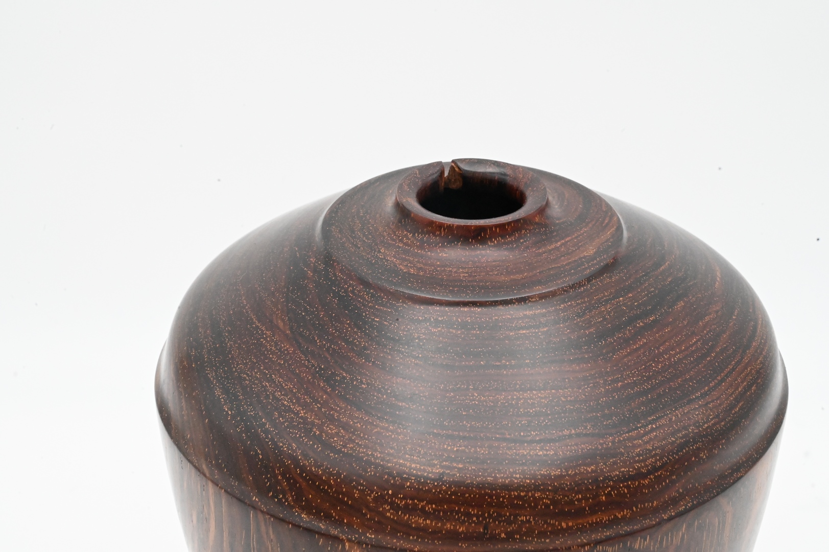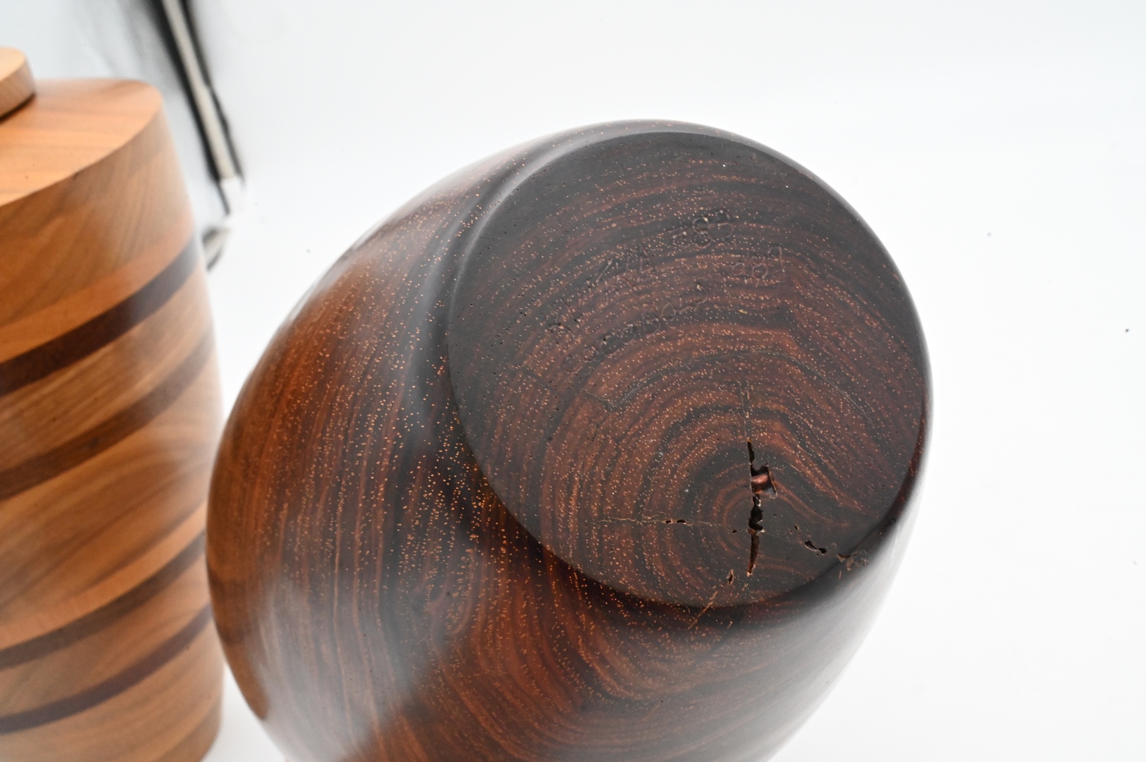 Dan Kvitka Cocobolo, turned wood vase, #83, 1989, signed on bottom, height 10 inches, diameter 7 inches.