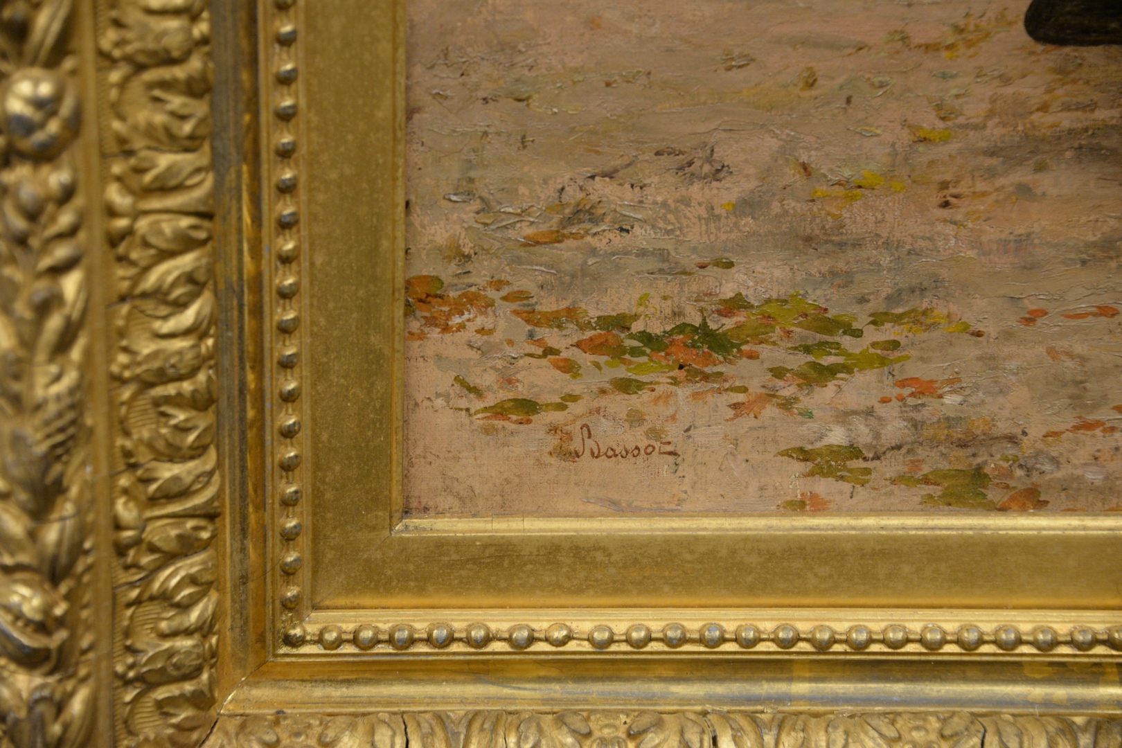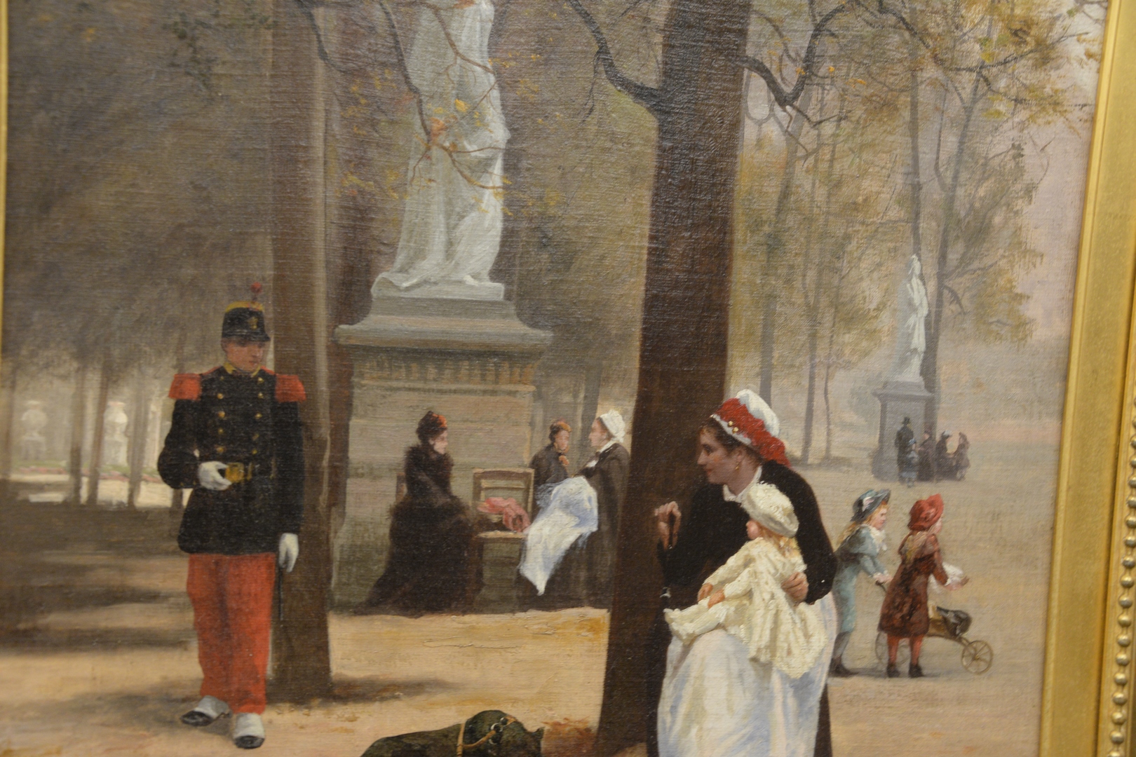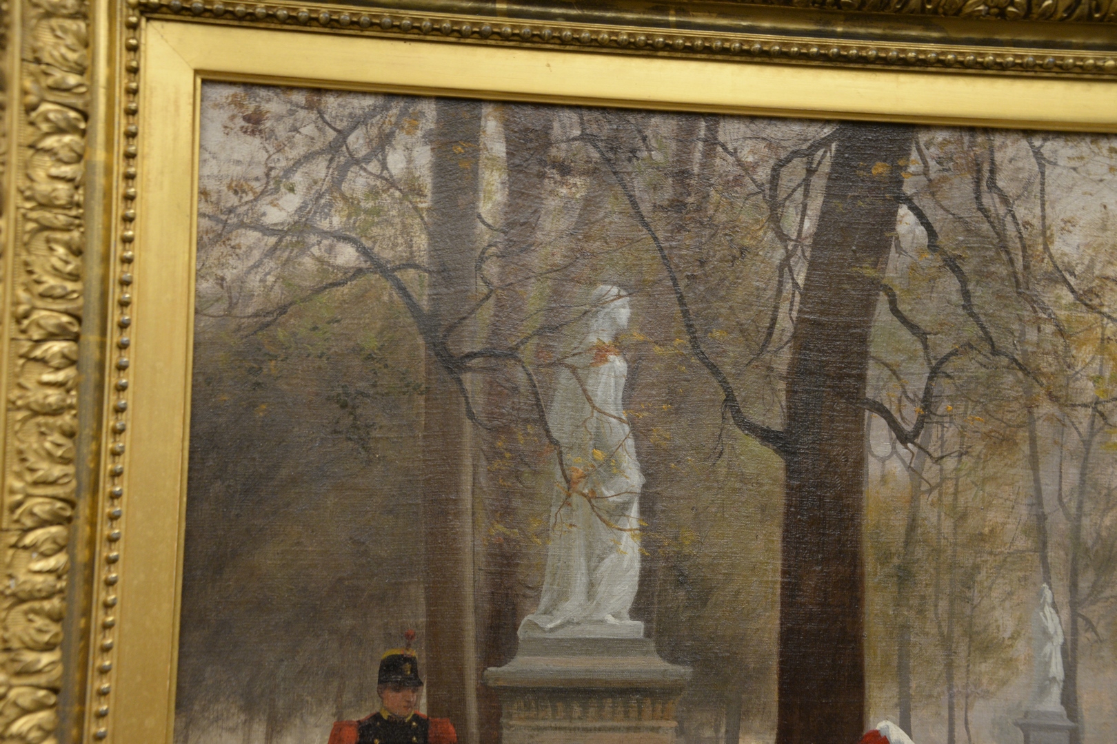Lot 351: Ferdinand Bassot French, 1843 – 1900, Day in the Park, oil on glue lined canvas, signed lower left Bassot, 24 1/4 x 19 3/4.