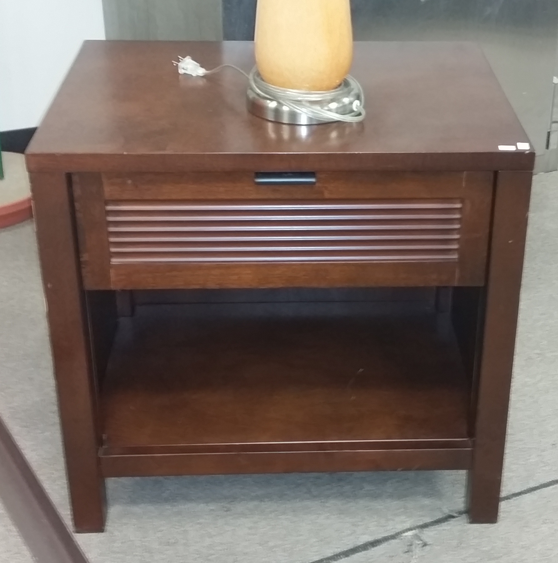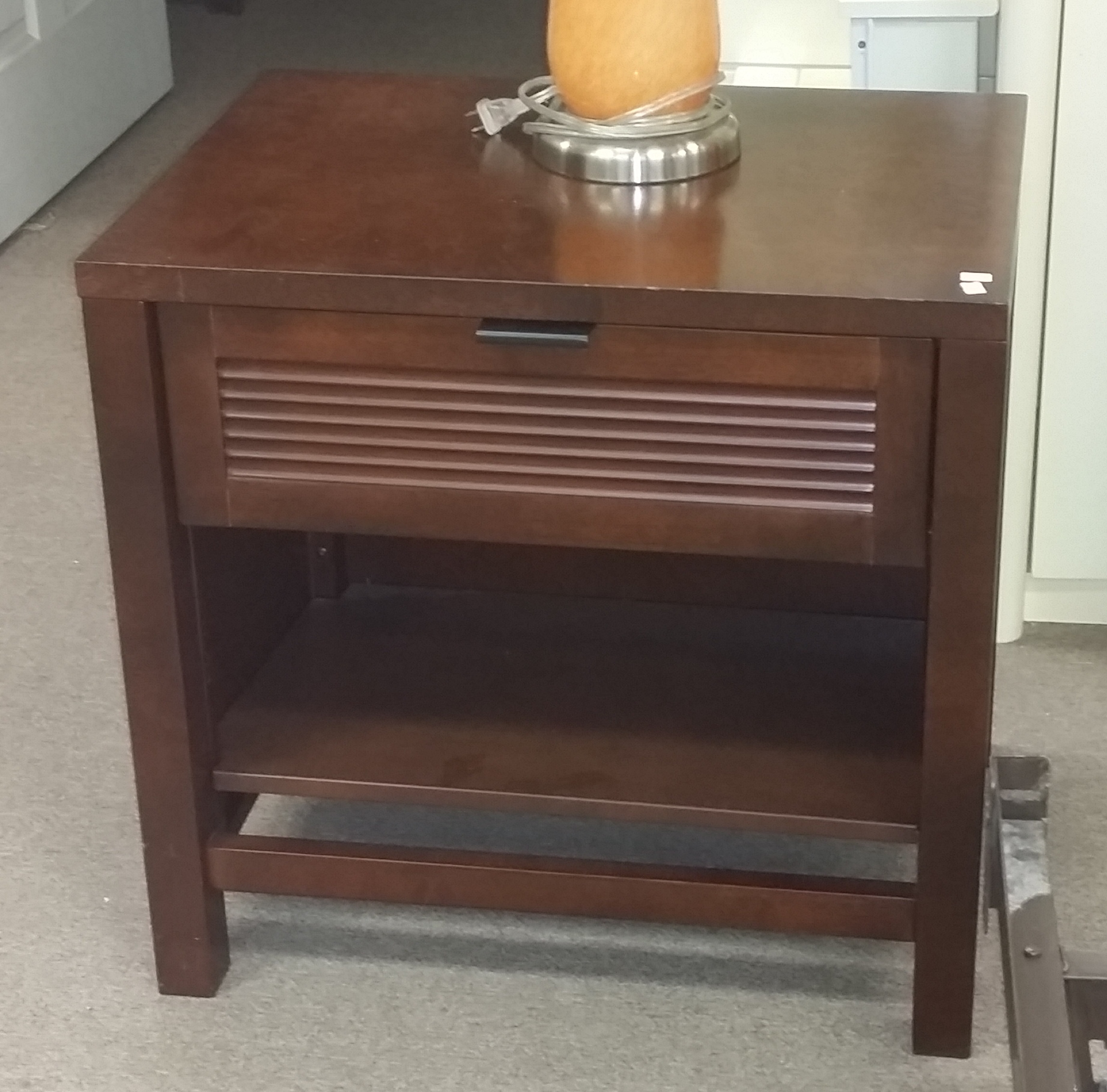 Lot 351: Four piece Crate & Barrel bedroom set including tall chest, two night stands, and headboard with frame.