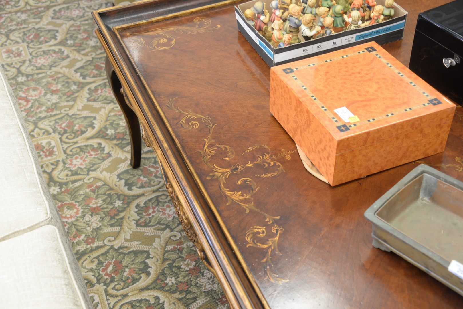 Large Tray Top Louis XV Style Coffee Table, height 22 inches, top 43″ x 56″.