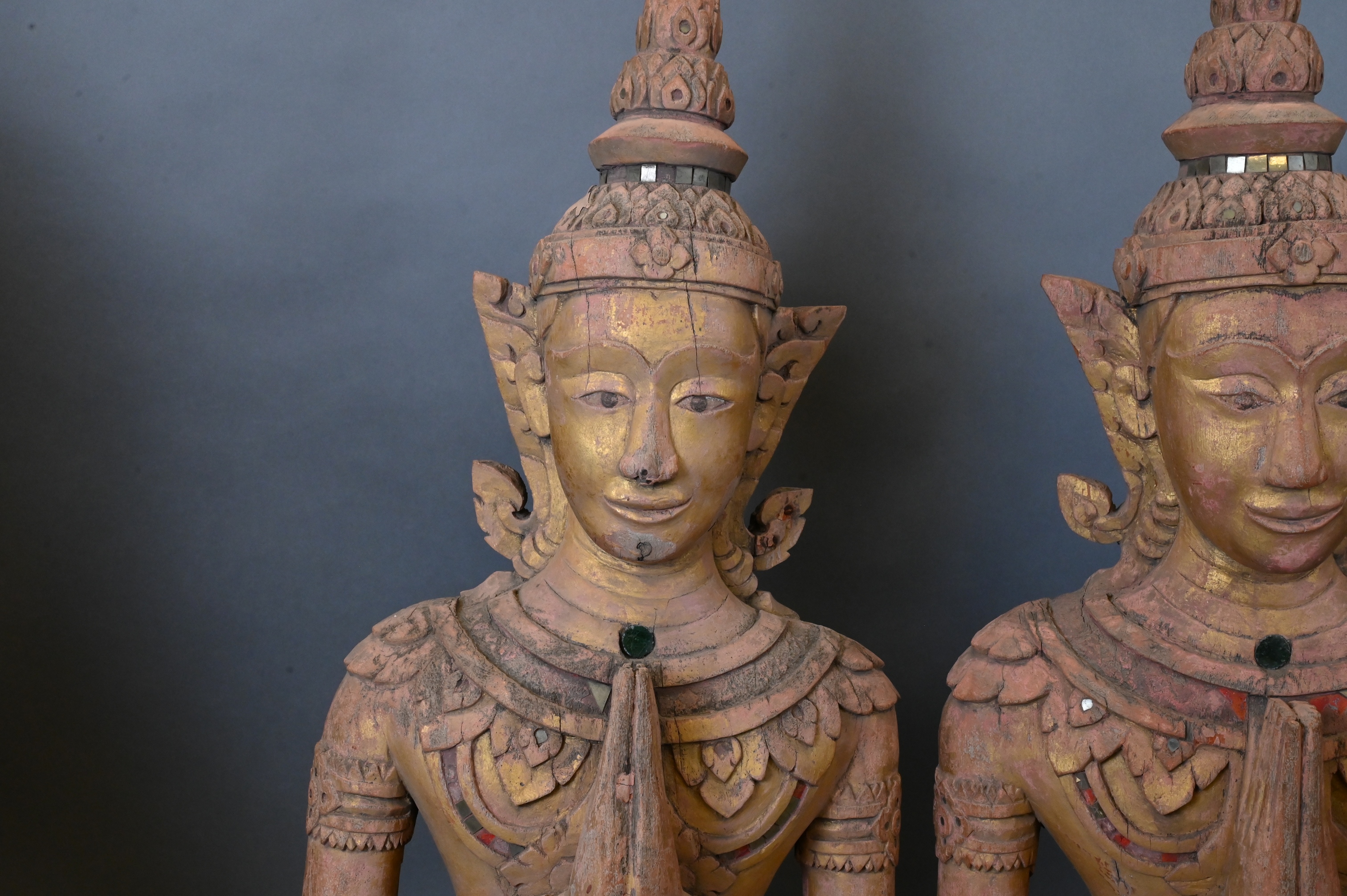 Pair of Burmese Thep Phanom (Guardian Angel) Carved Half Figures