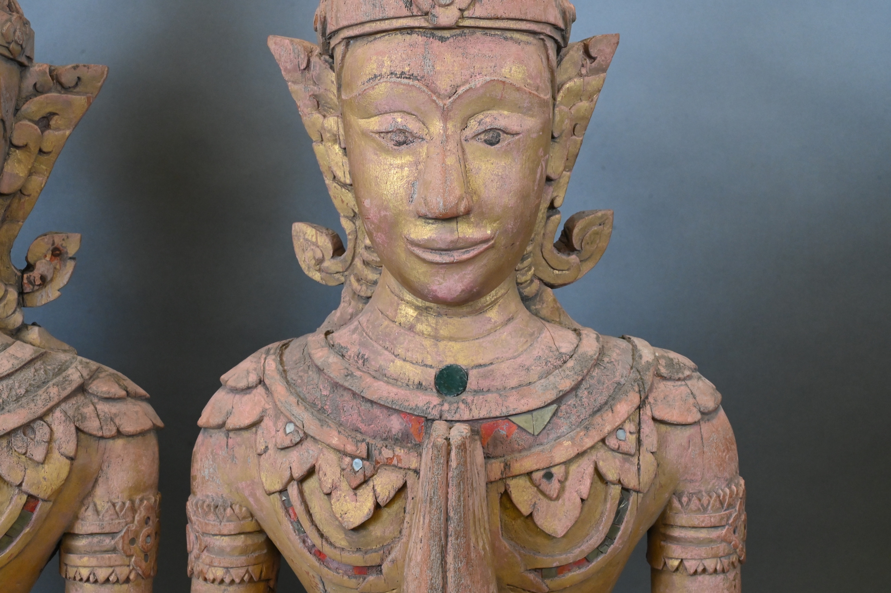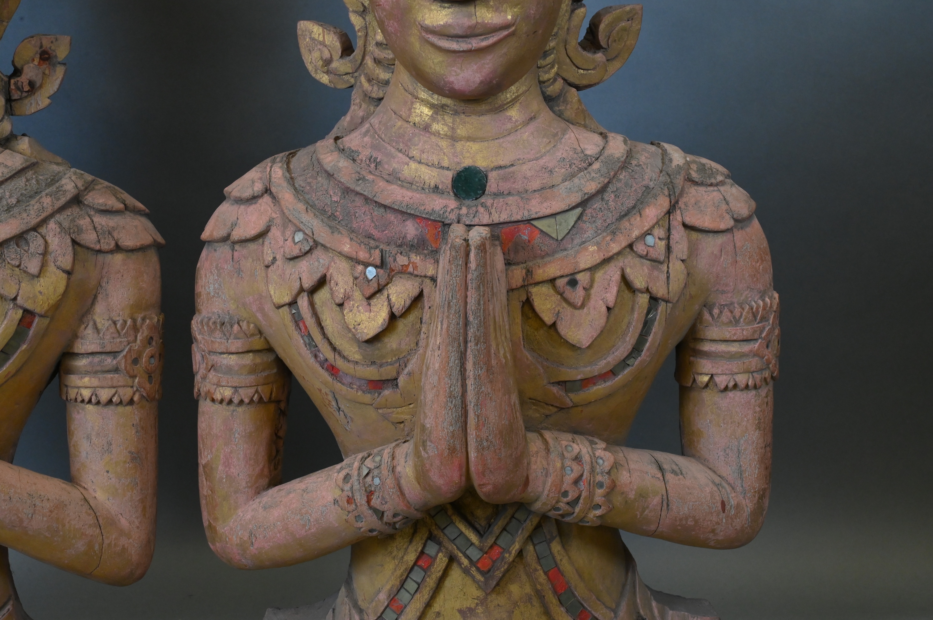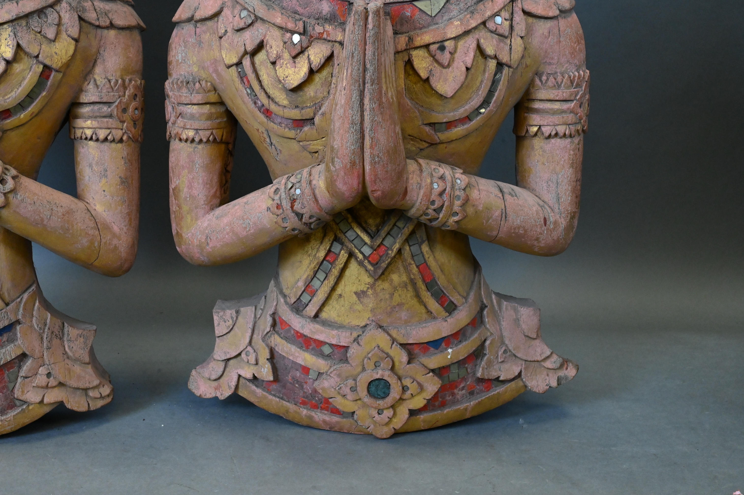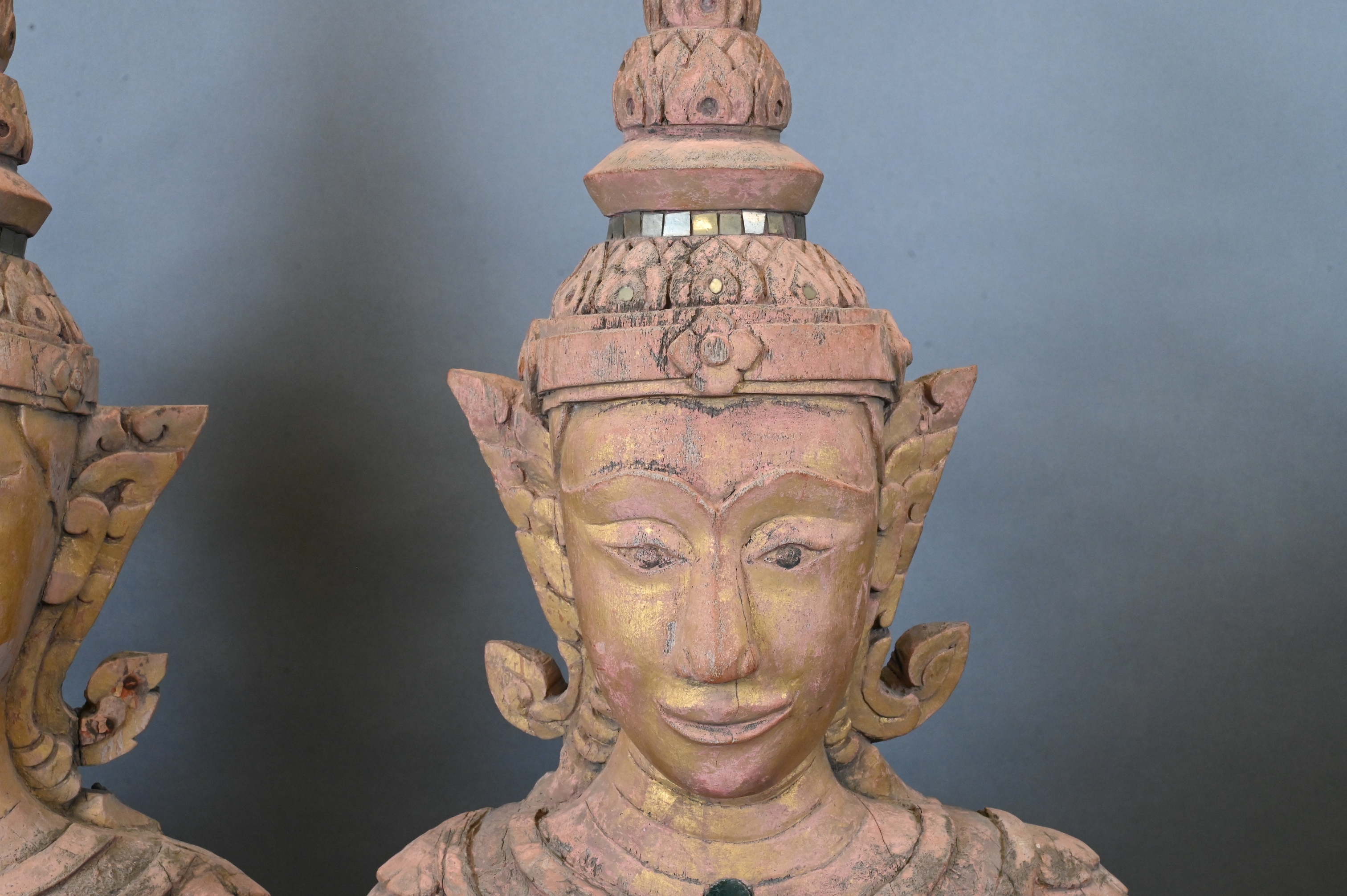 Lot 351: Pair of Burmese Thep Phanom (Guardian Angel) Carved Half Figures