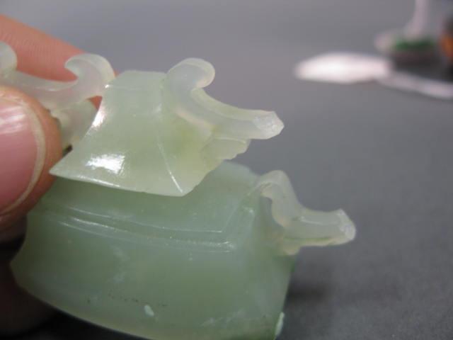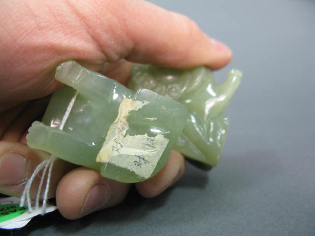 Lot 351: Pair of celadon jade foo-dogs and carved jade