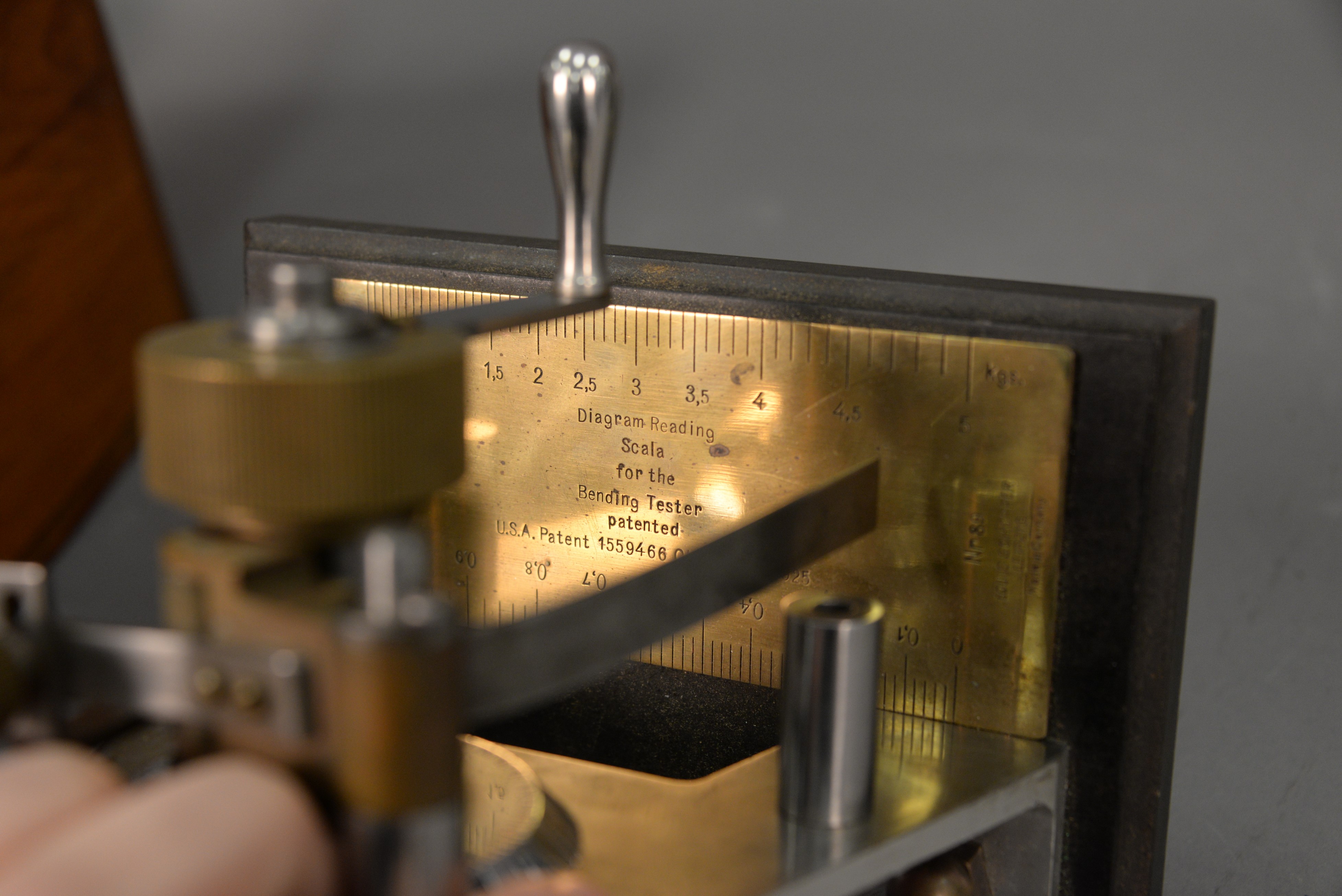 Lot 351: Patent Model, Louis Schopper Leipzig, NR89, diagram Reading Scala for the Bending Tester, patented USA, Patent 1559466 Oktober 27 19…
