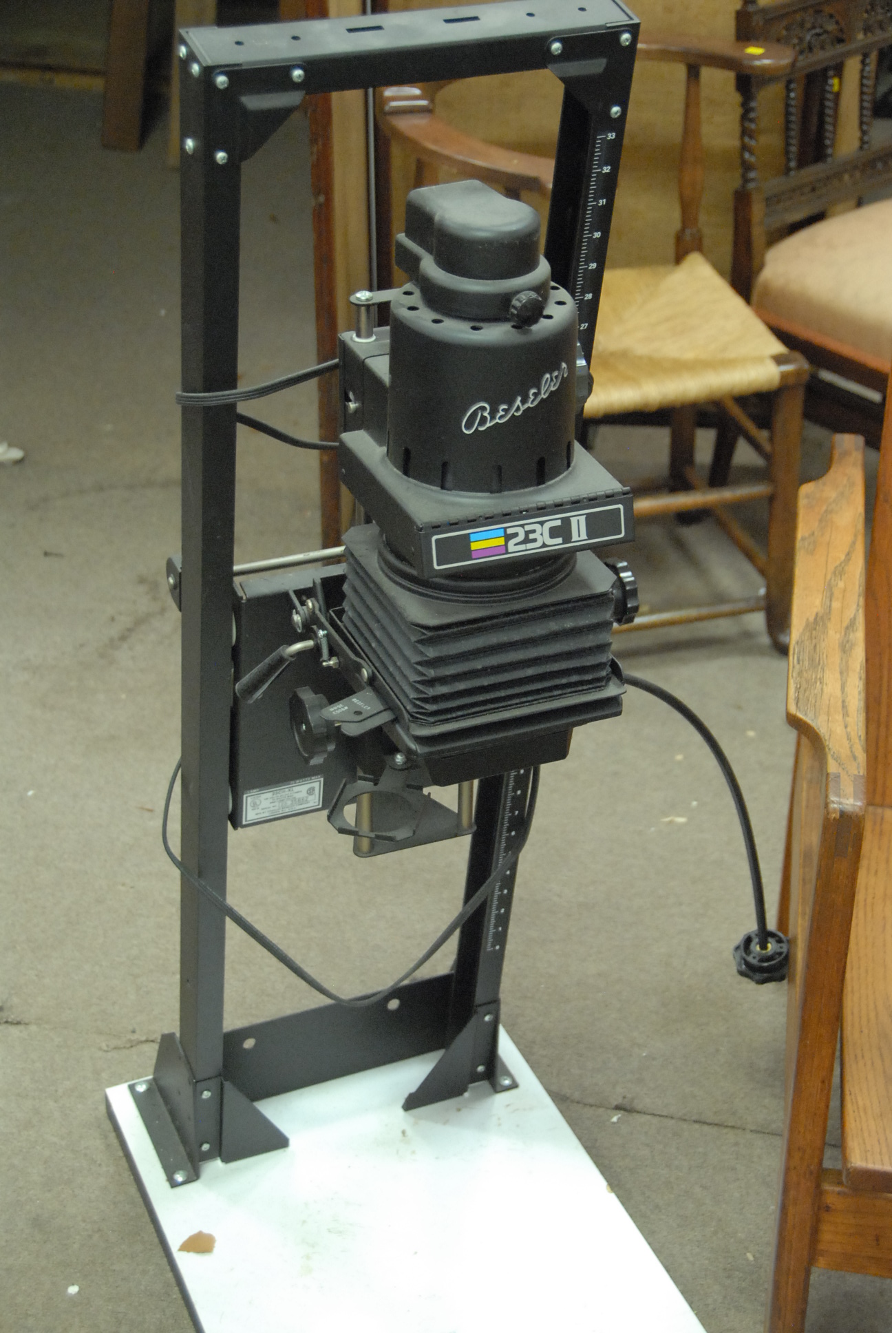 Three piece lot to include brass samovar, Bell Howell Filmo Diplomat projector with parts, and 23CII Beseler Photo Enlarger.