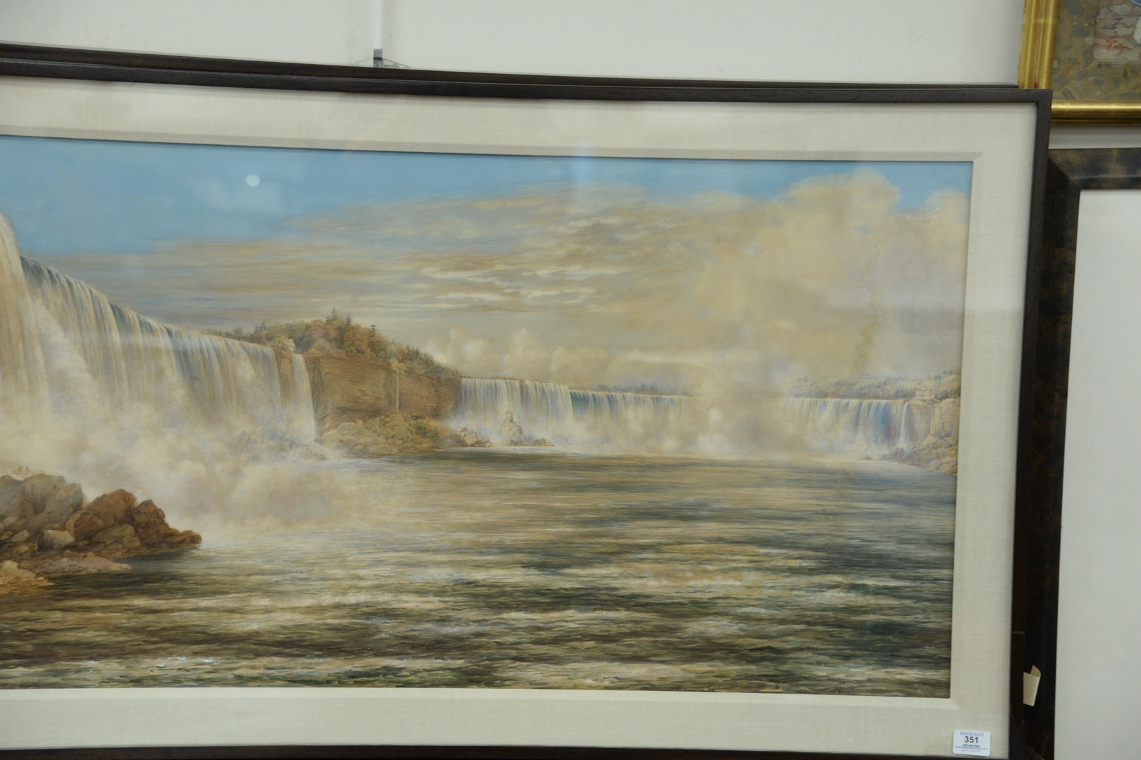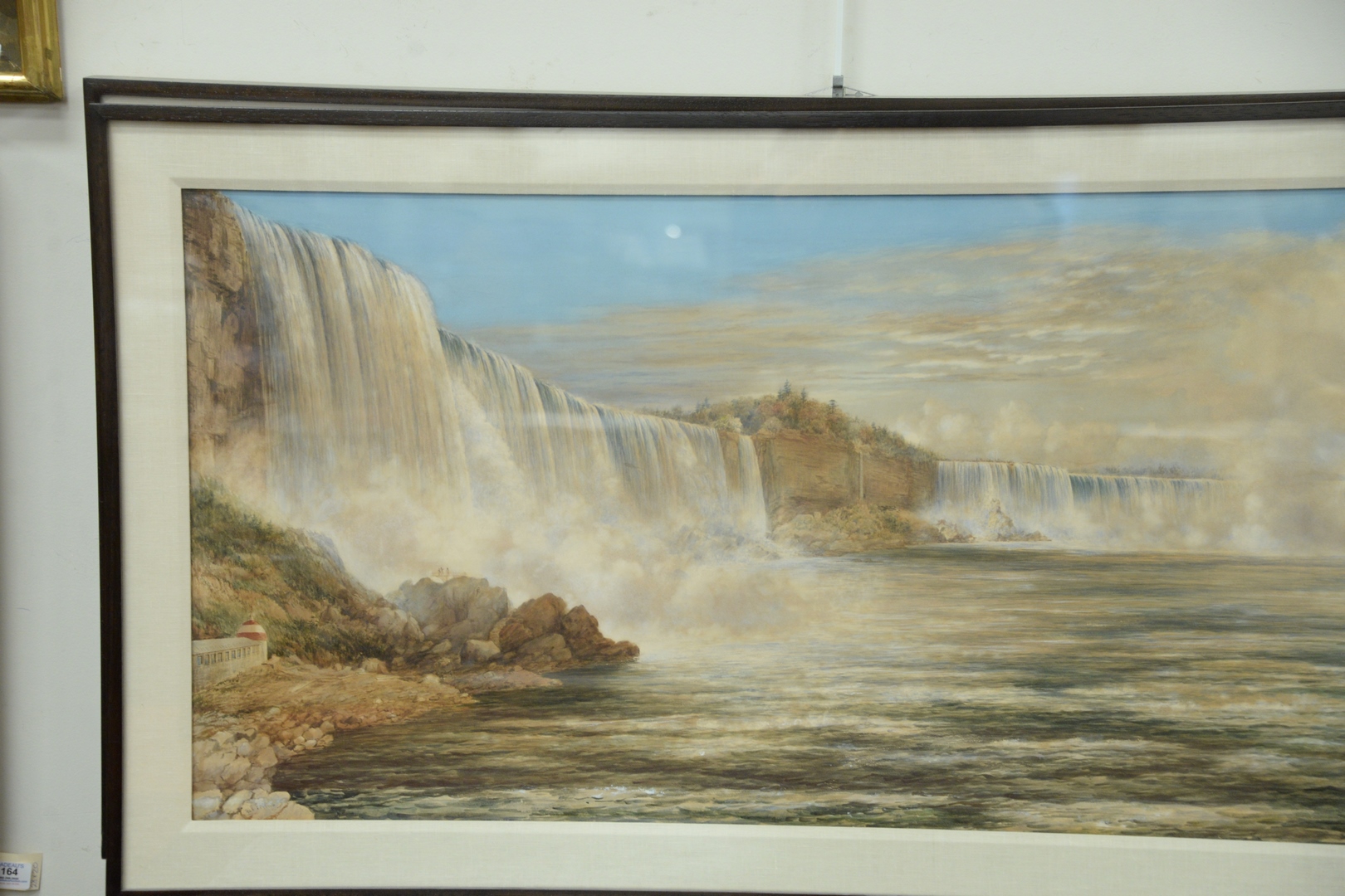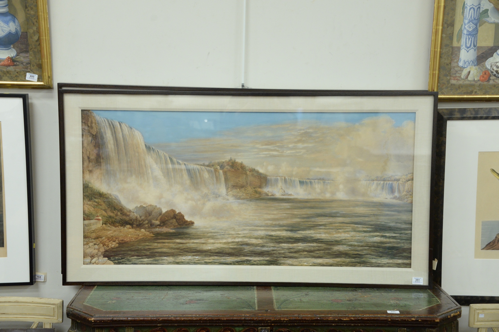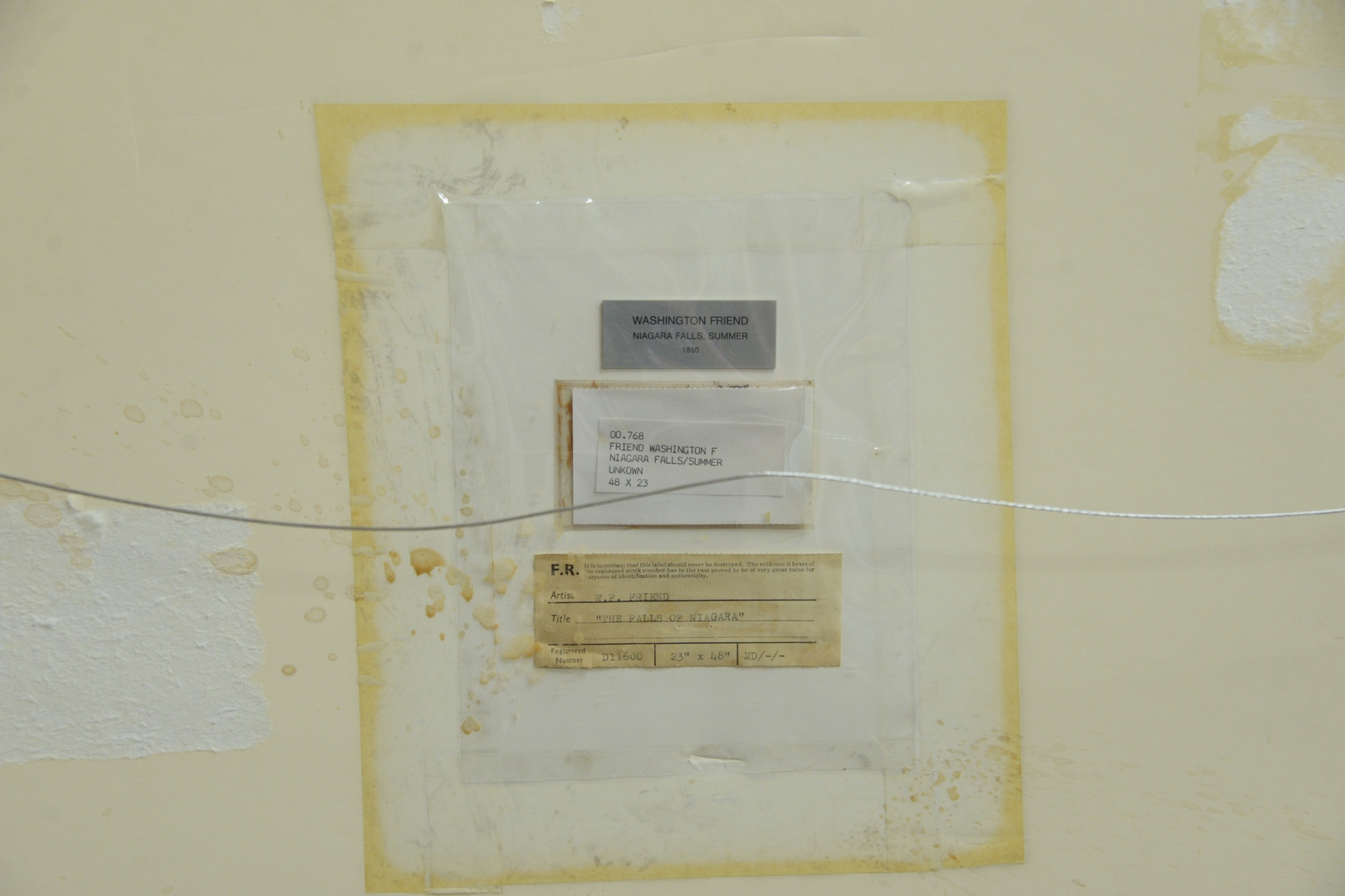 Lot 351: Washington Friend British/American, 1820 – 1886, View of Niagara Falls, Summer 1850, watercolor on paper, signed lower left W.F. Friend, old labels on back, 23 x 48.