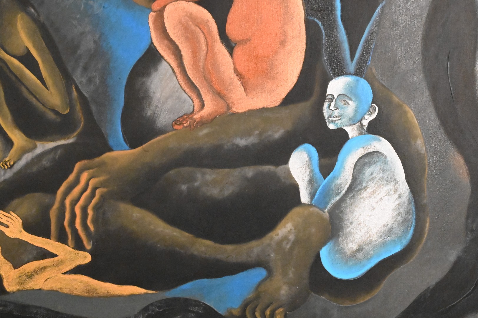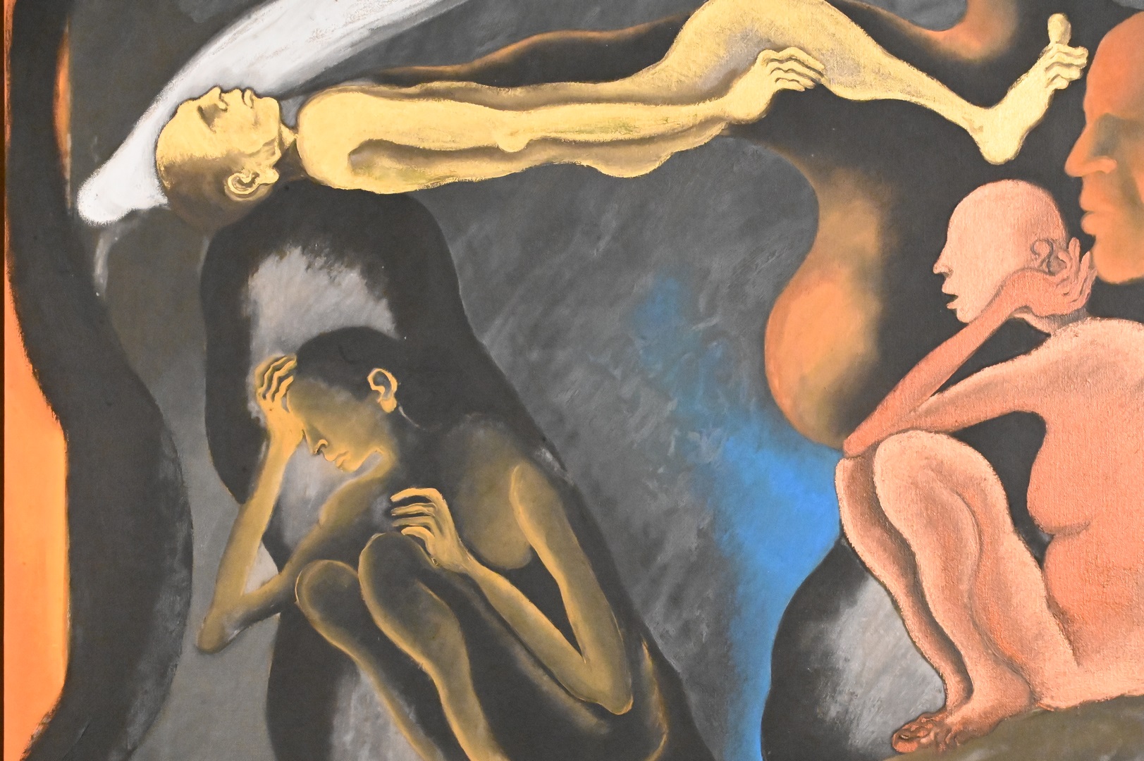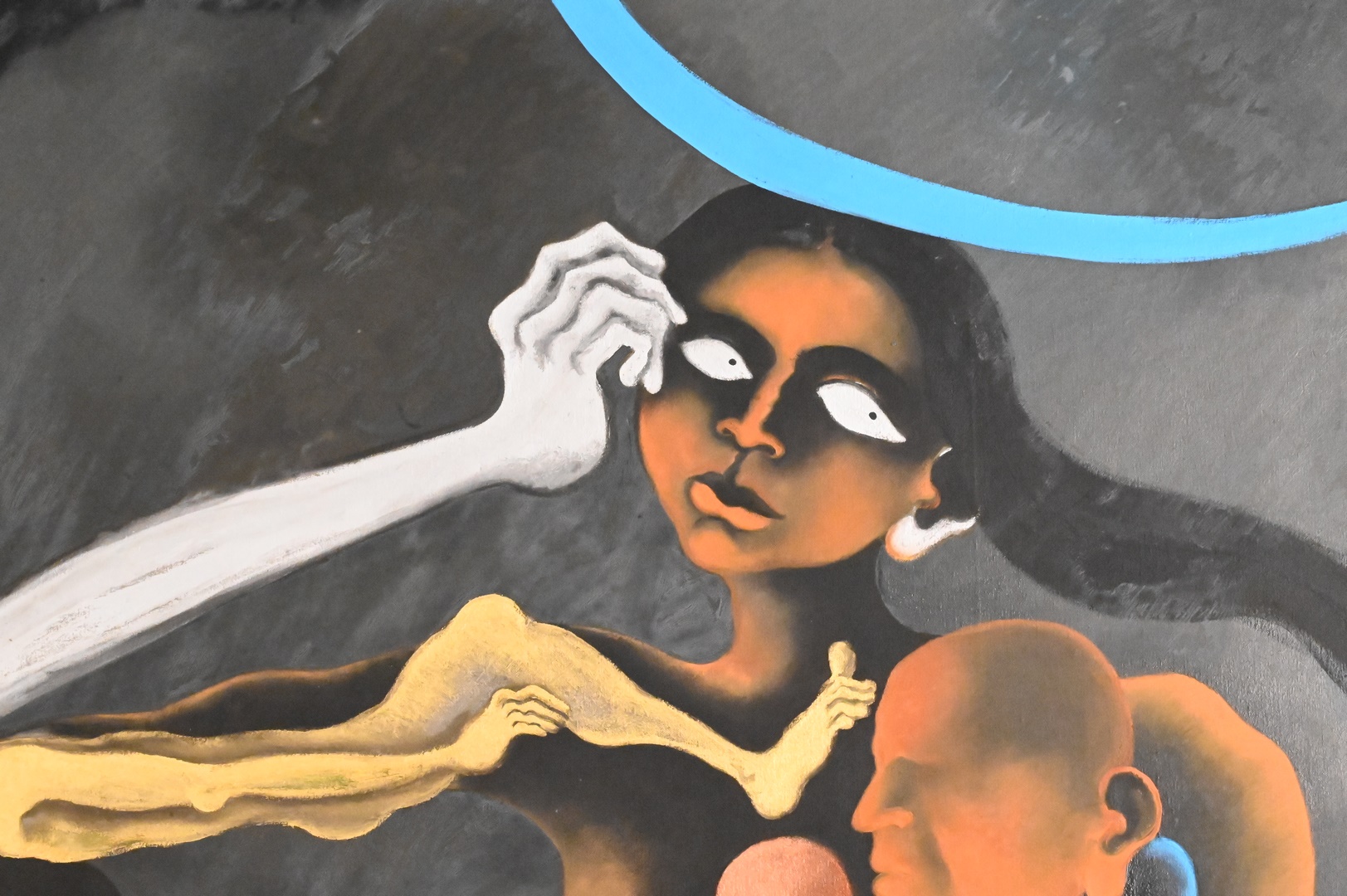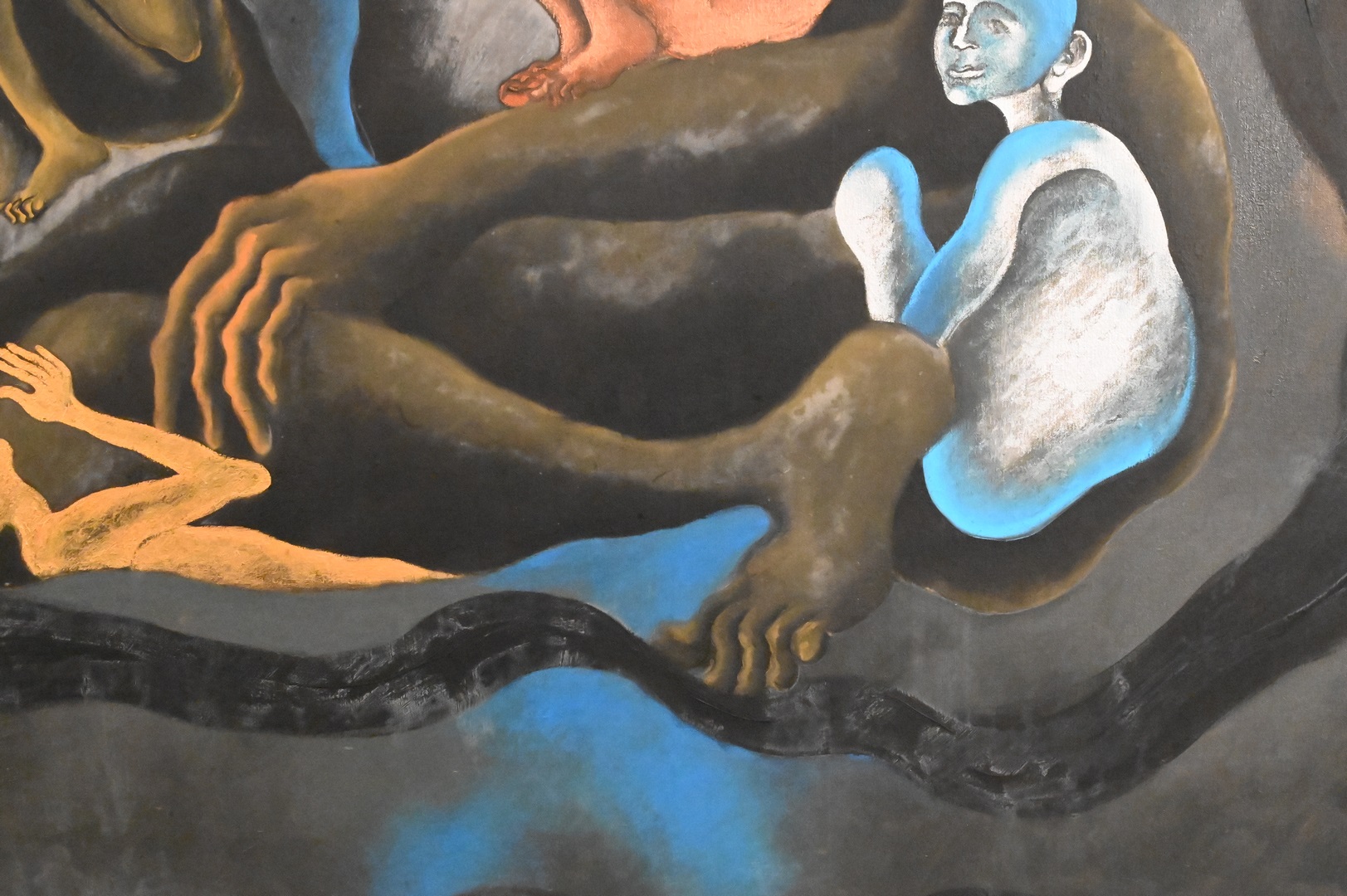signed lower right Arpana Caur 96, titled and signed on back of canvas