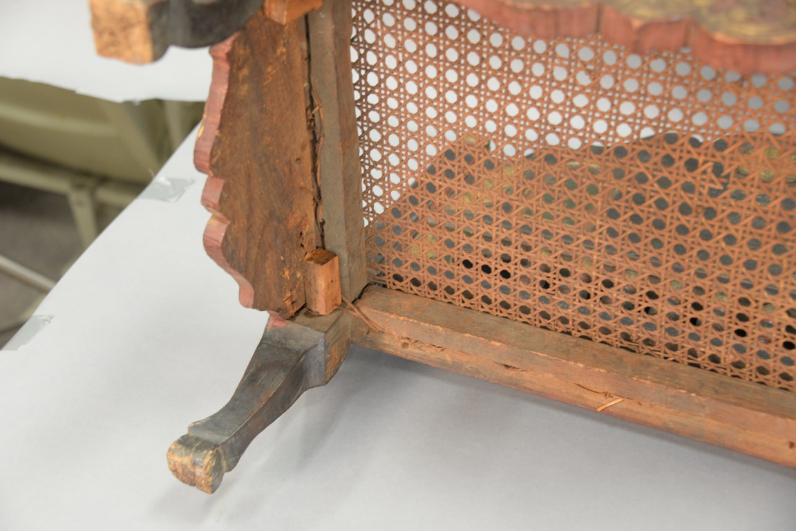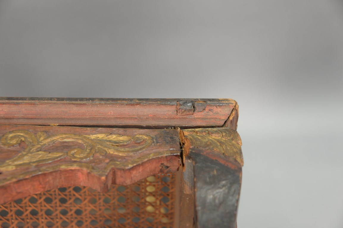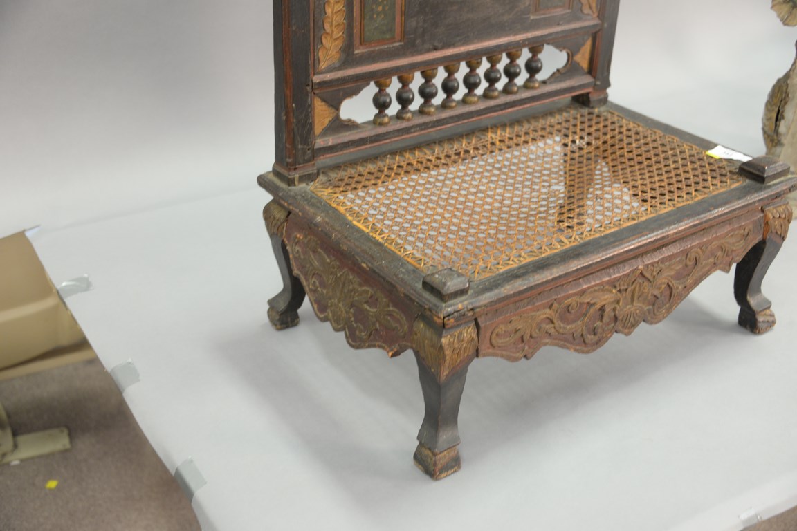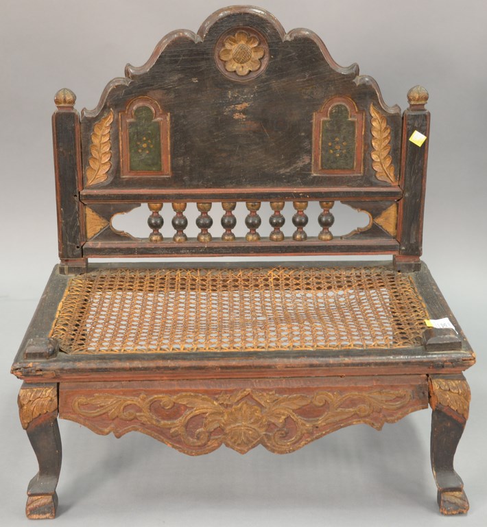 Diminutive cane seat bench. ht. 24 in. wd. 23 in.