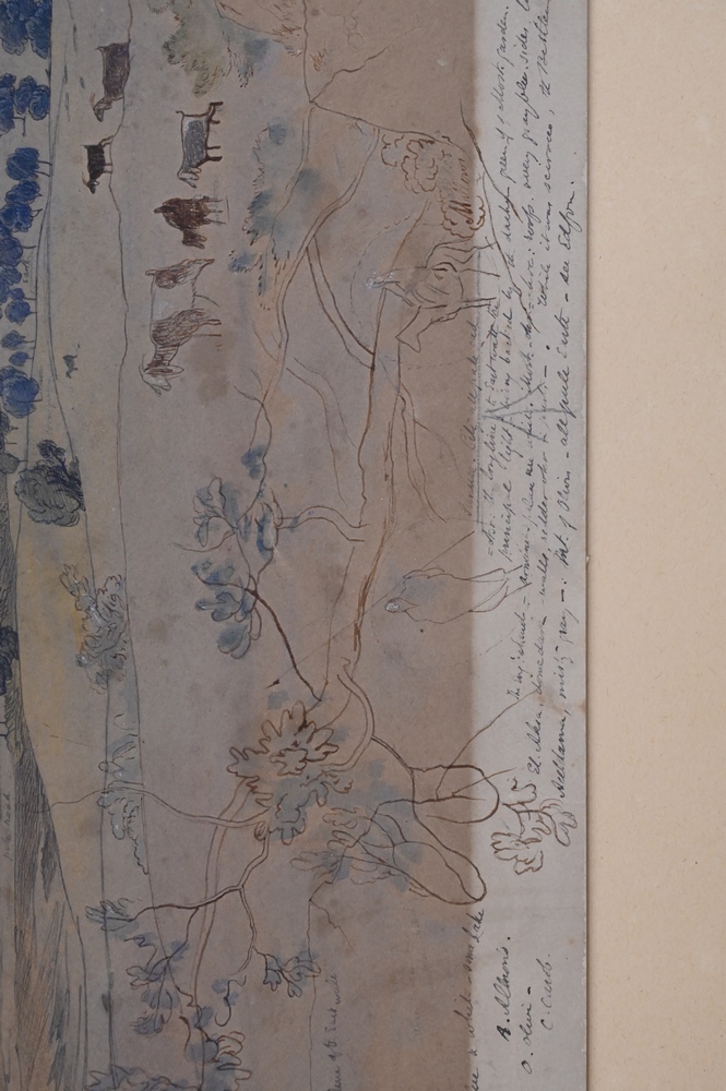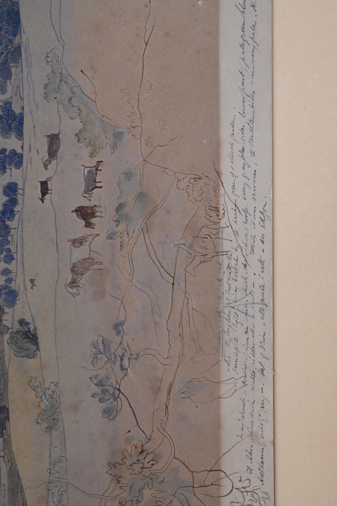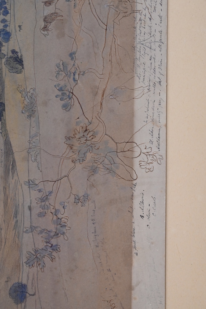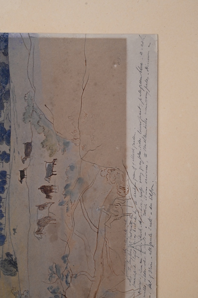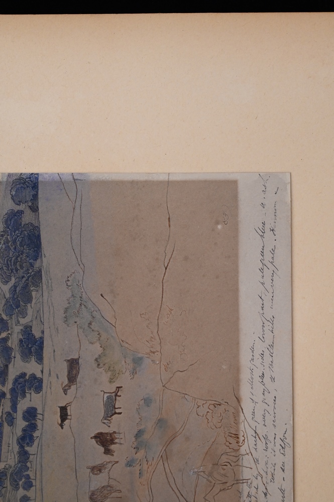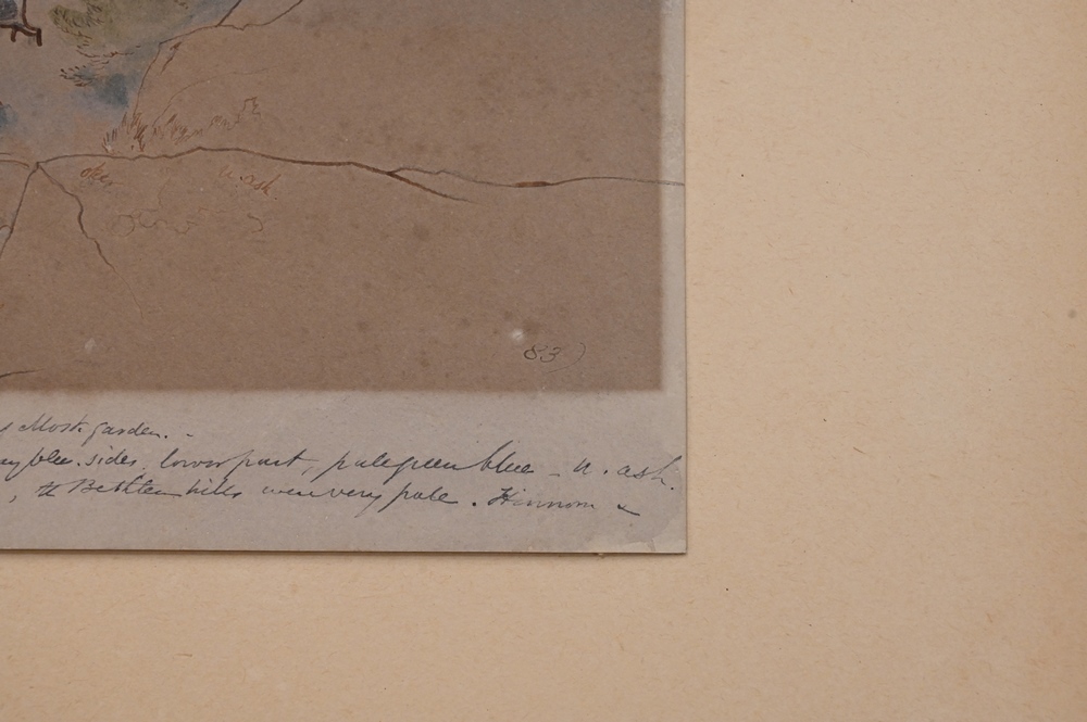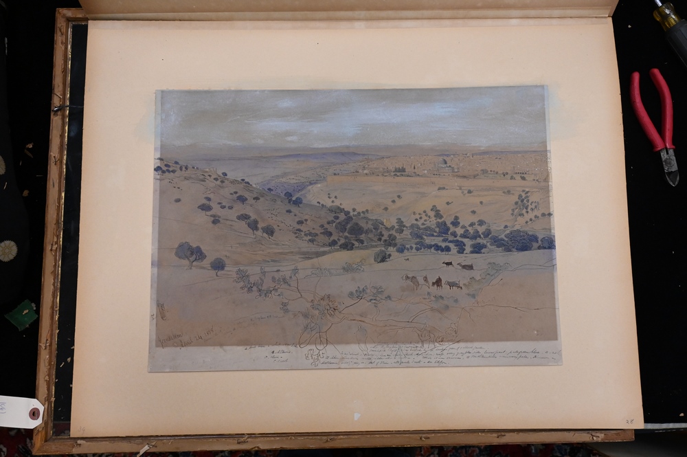 Lot 352: Edward Lear (1812 – 1888), Jerusalem, April 24, 1858, watercolor and pencil on paper, sketch with writing or notes, sight size 13″ x…