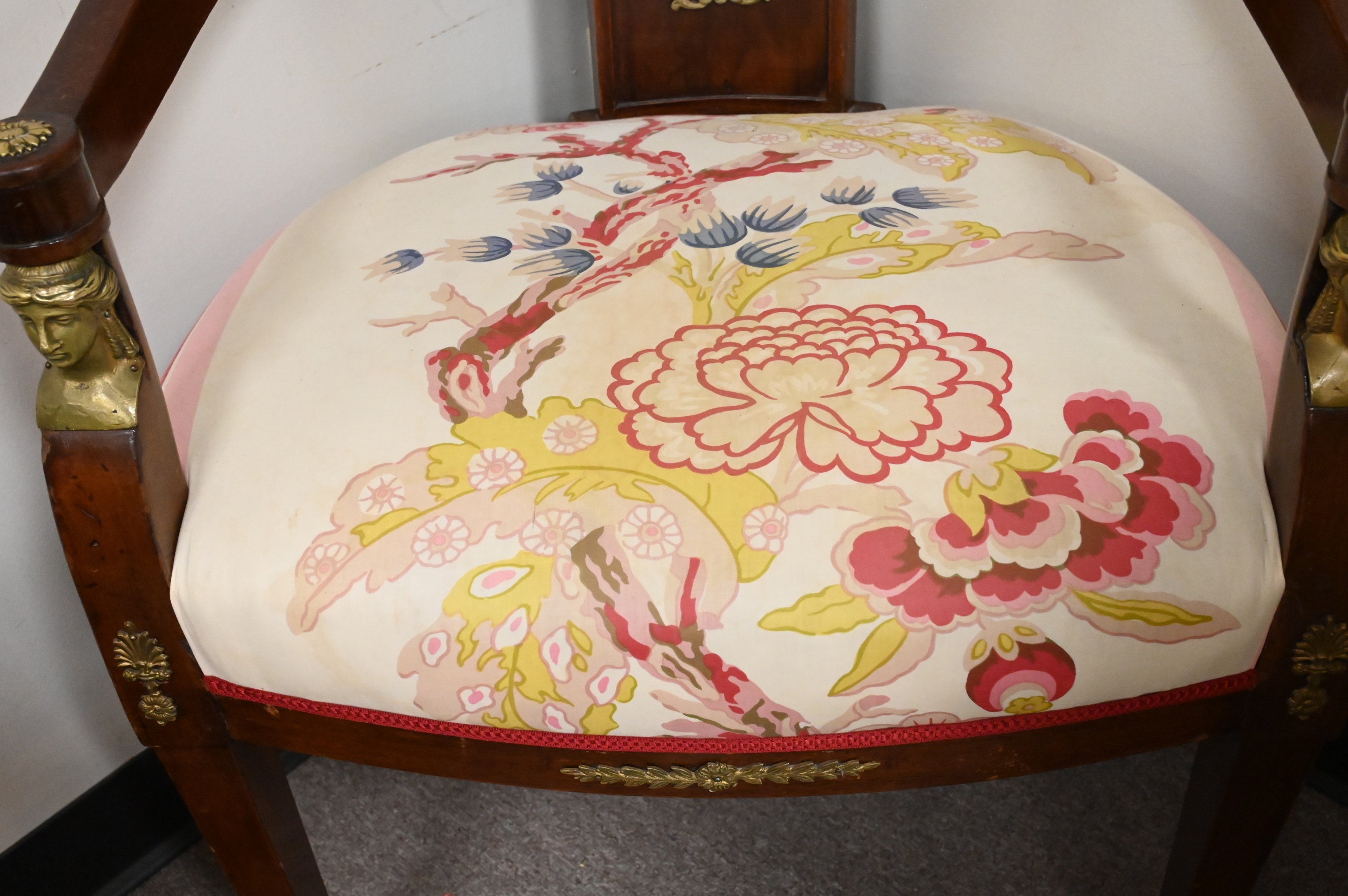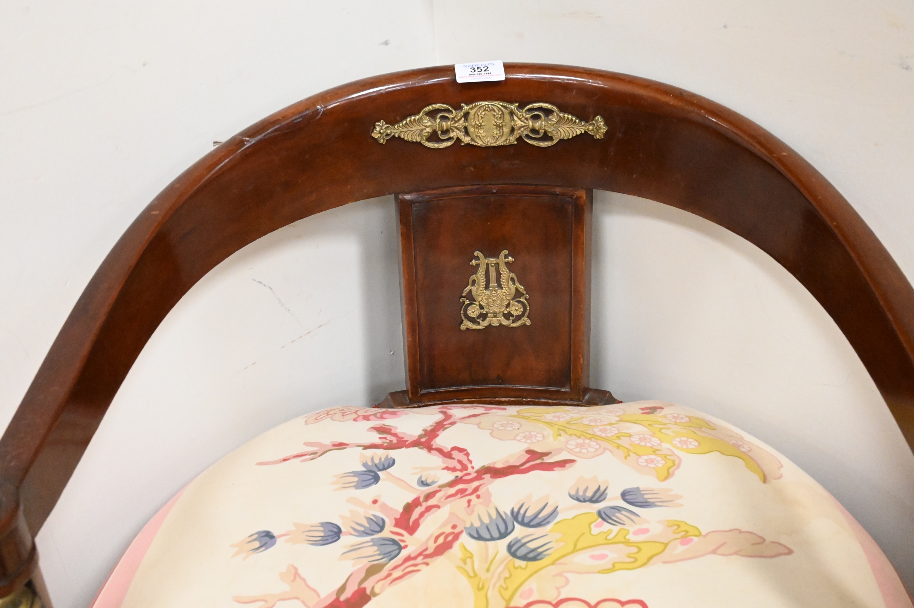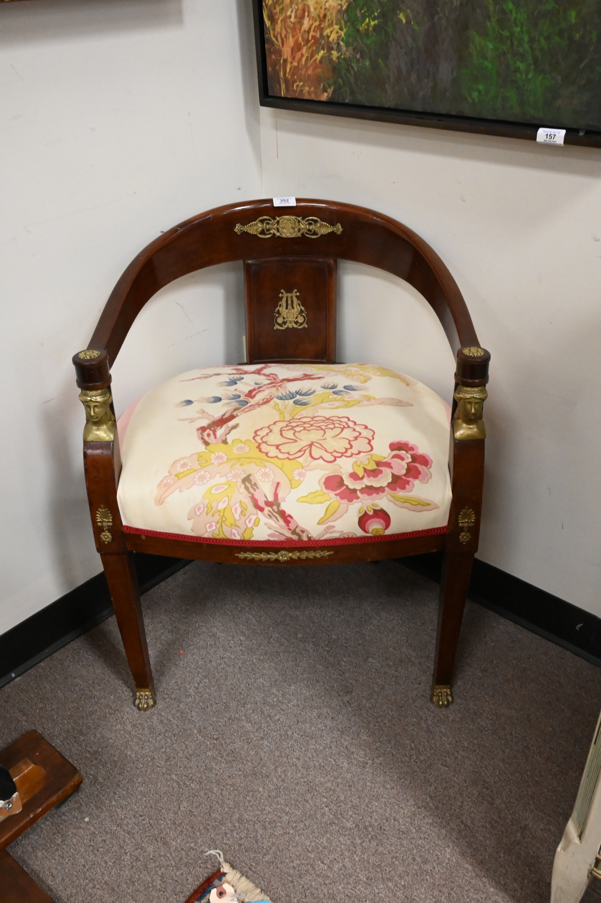 Lot 352: Empire Style Mahogany Ormolu Mounted Round Back Armchair