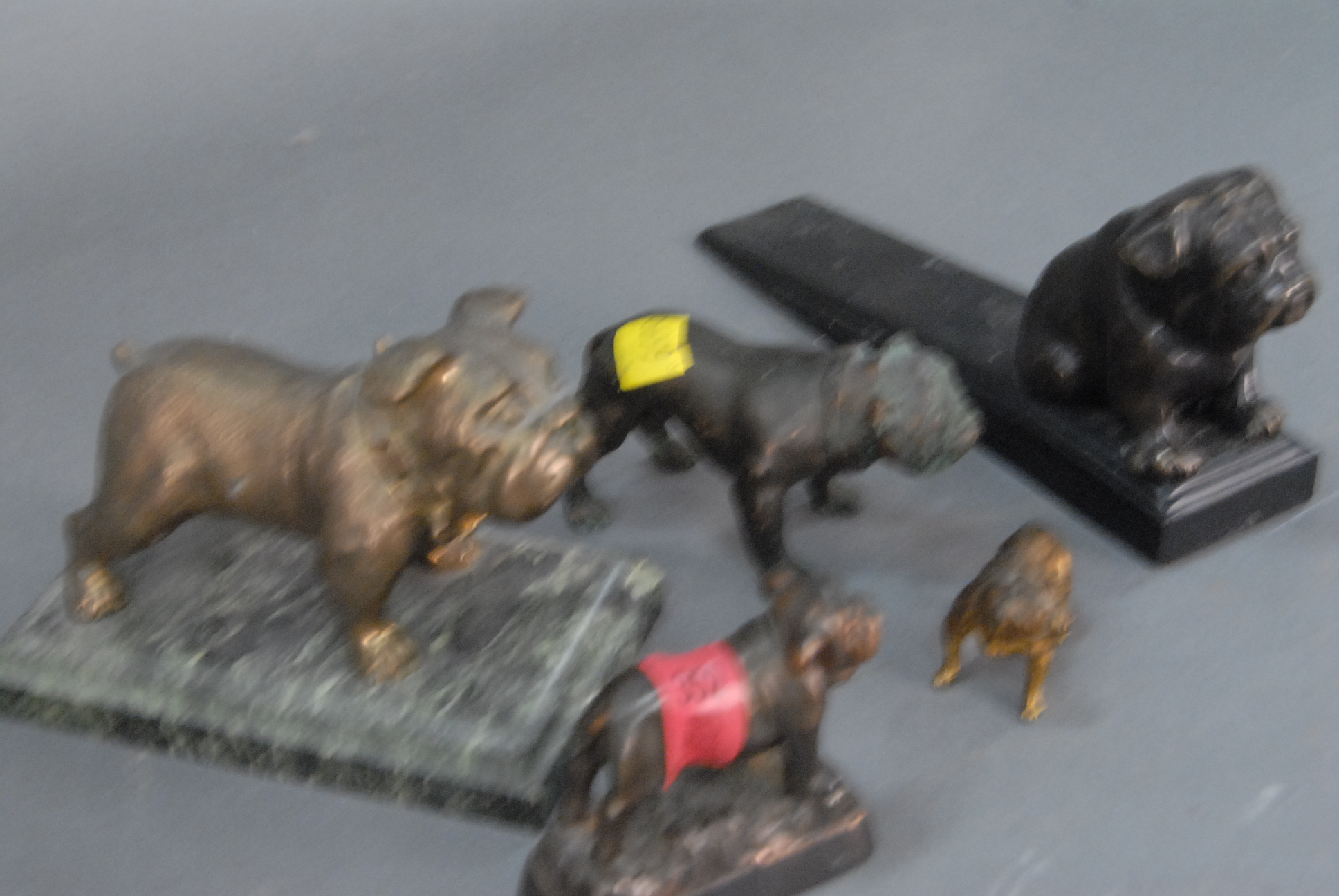 Five bulldog figures including two bronze, hts. 1 – 5.