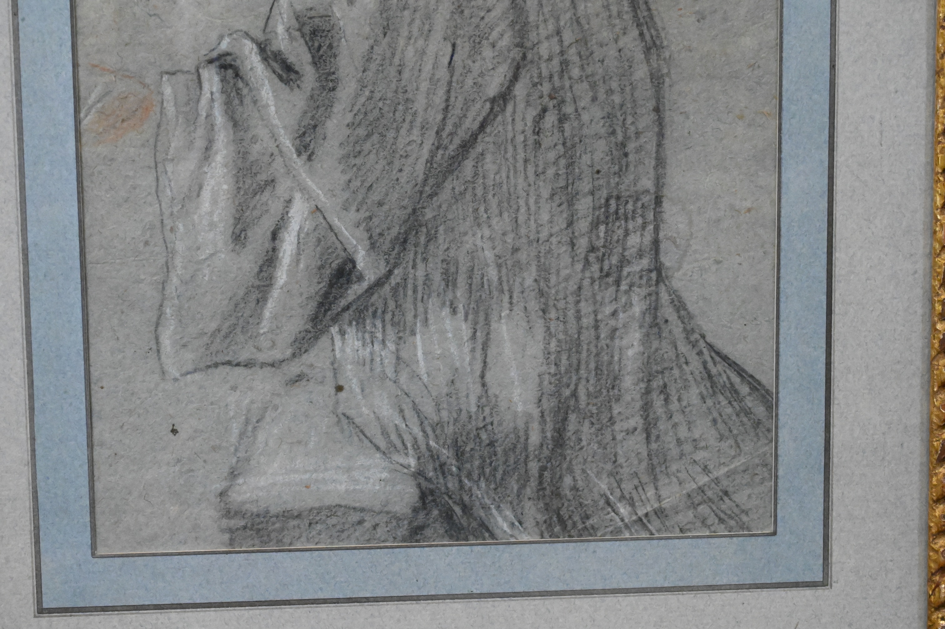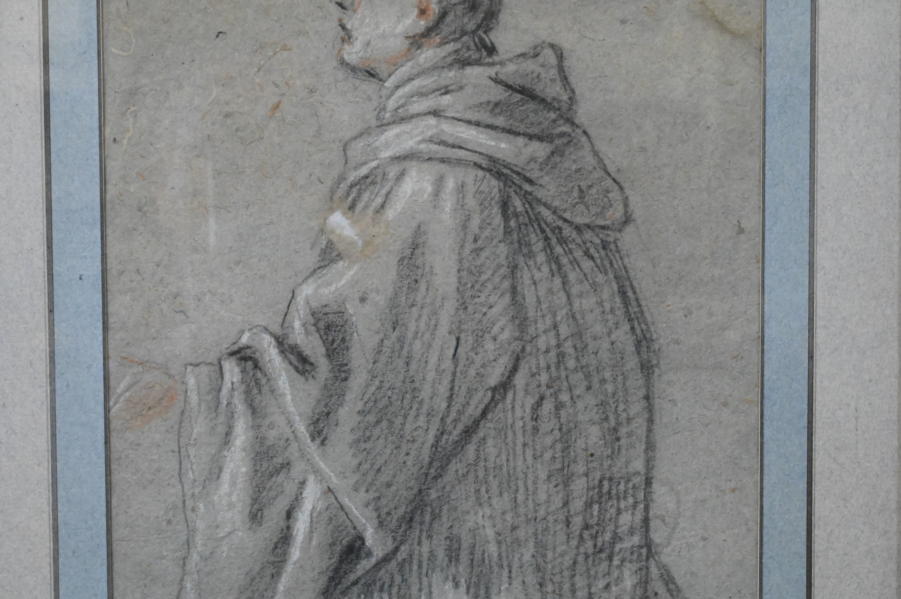 Black and red chalk on gray-blue paper