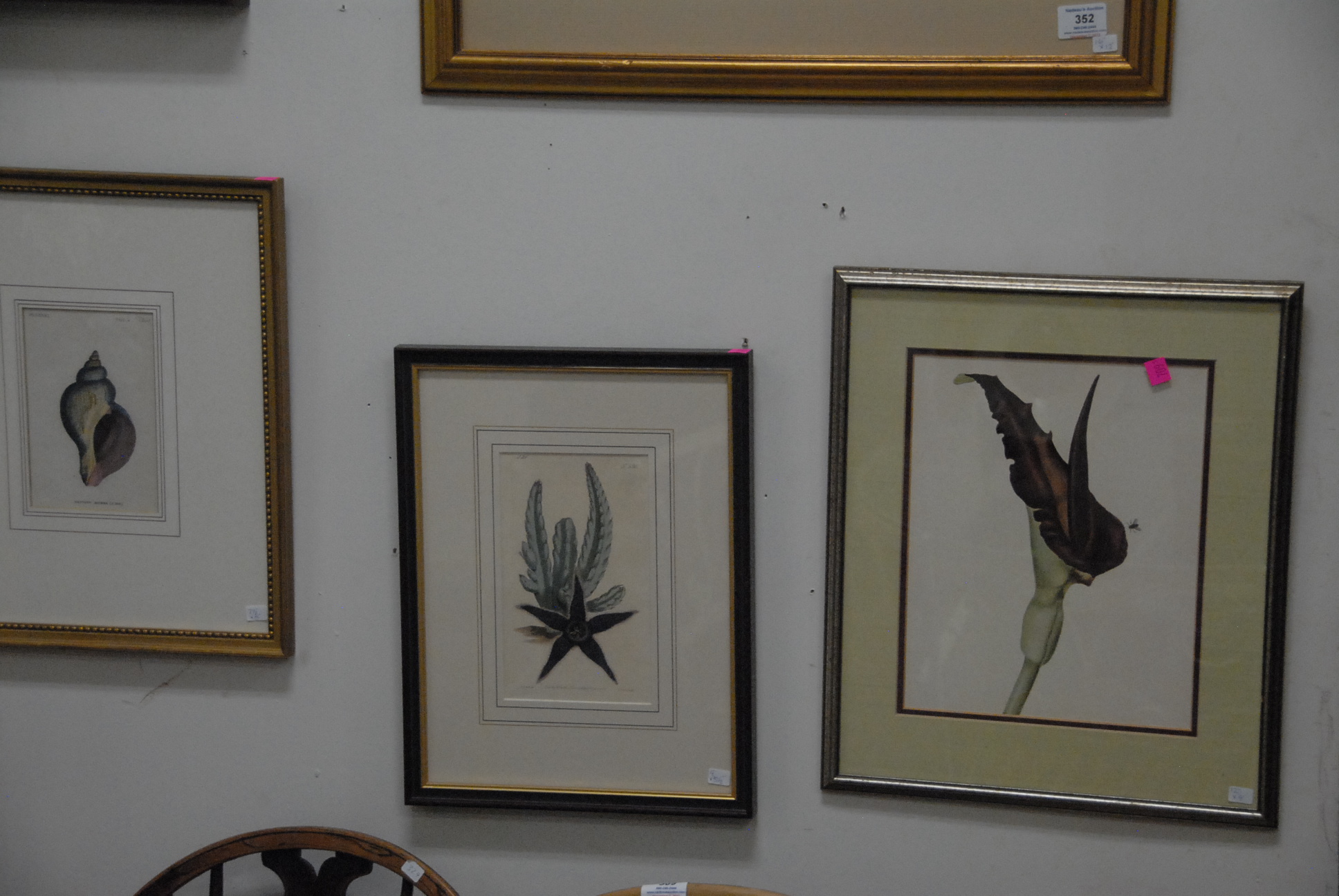 Lot 352: Group of six prints to include four still lifes, Hara Lei Bay by George Sumner, and framed ship print.