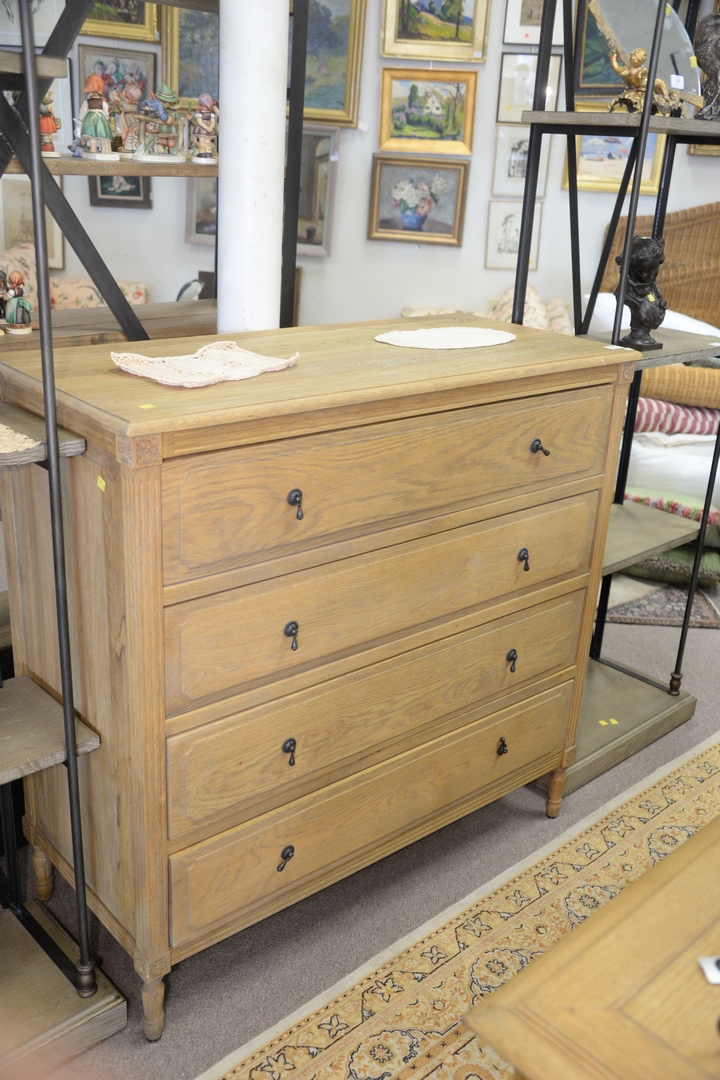 Lot 352: Two piece lot include Restoration Hardware Four Drawer Chest, along with a contemporary silver framed oval mirror height 44 1/2 in…