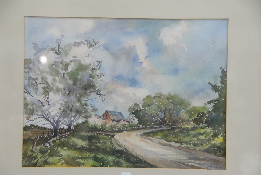 Two watercolors R. Olmsted 1960 Wilderness – 12 x 21 and Barbara Vanstappen Country Road – 12 x 16.