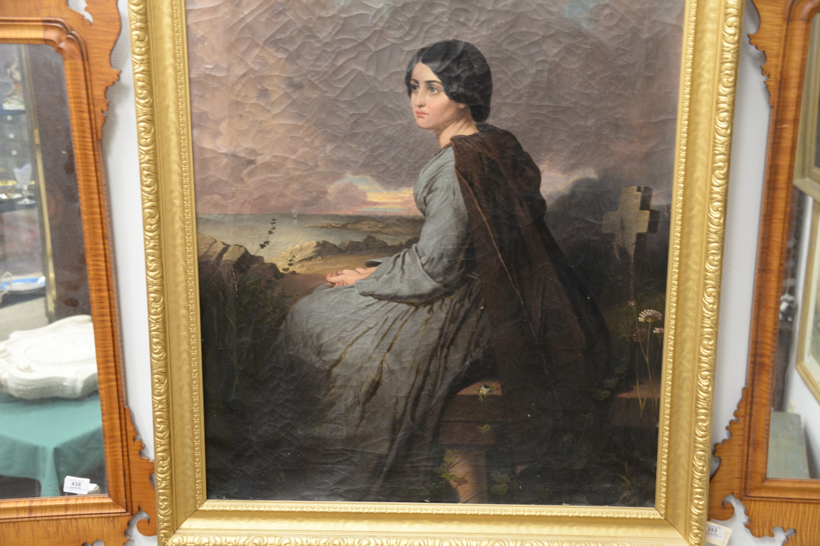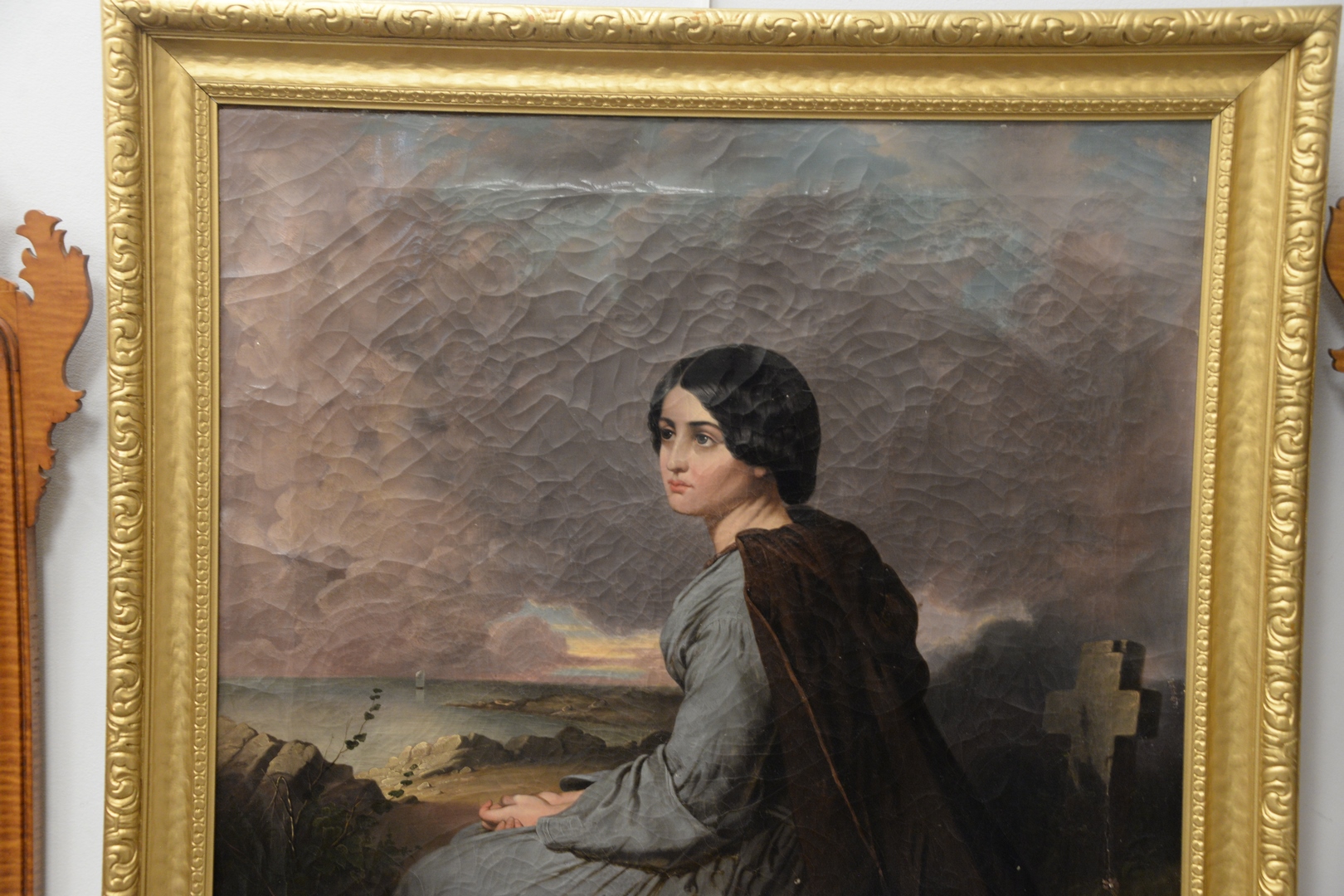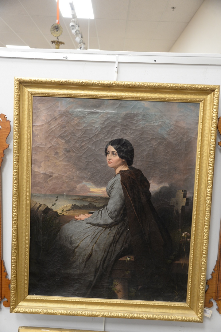 Lot 353: Continental School late 19th/early 20th Century, portrait of a girl with landscape, oil on canvas, unsigned, 36 x 29 1/4.