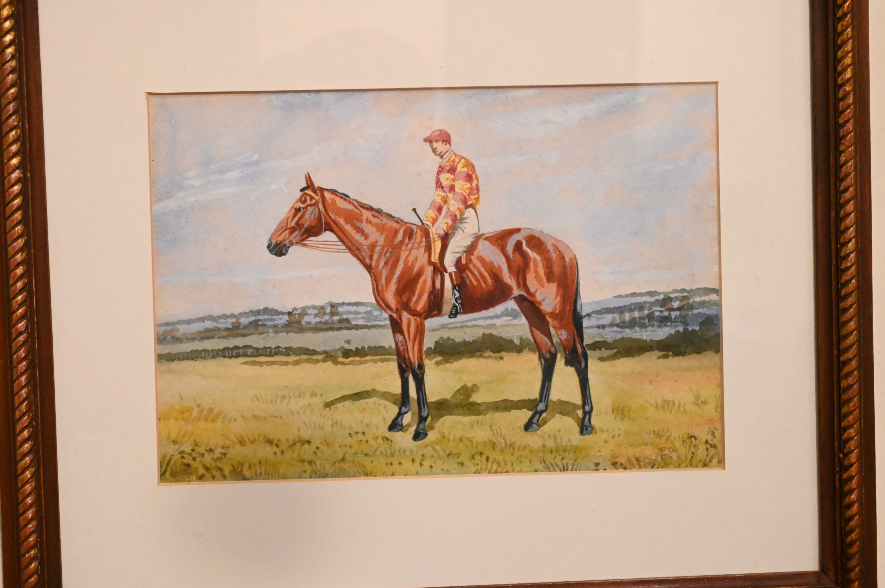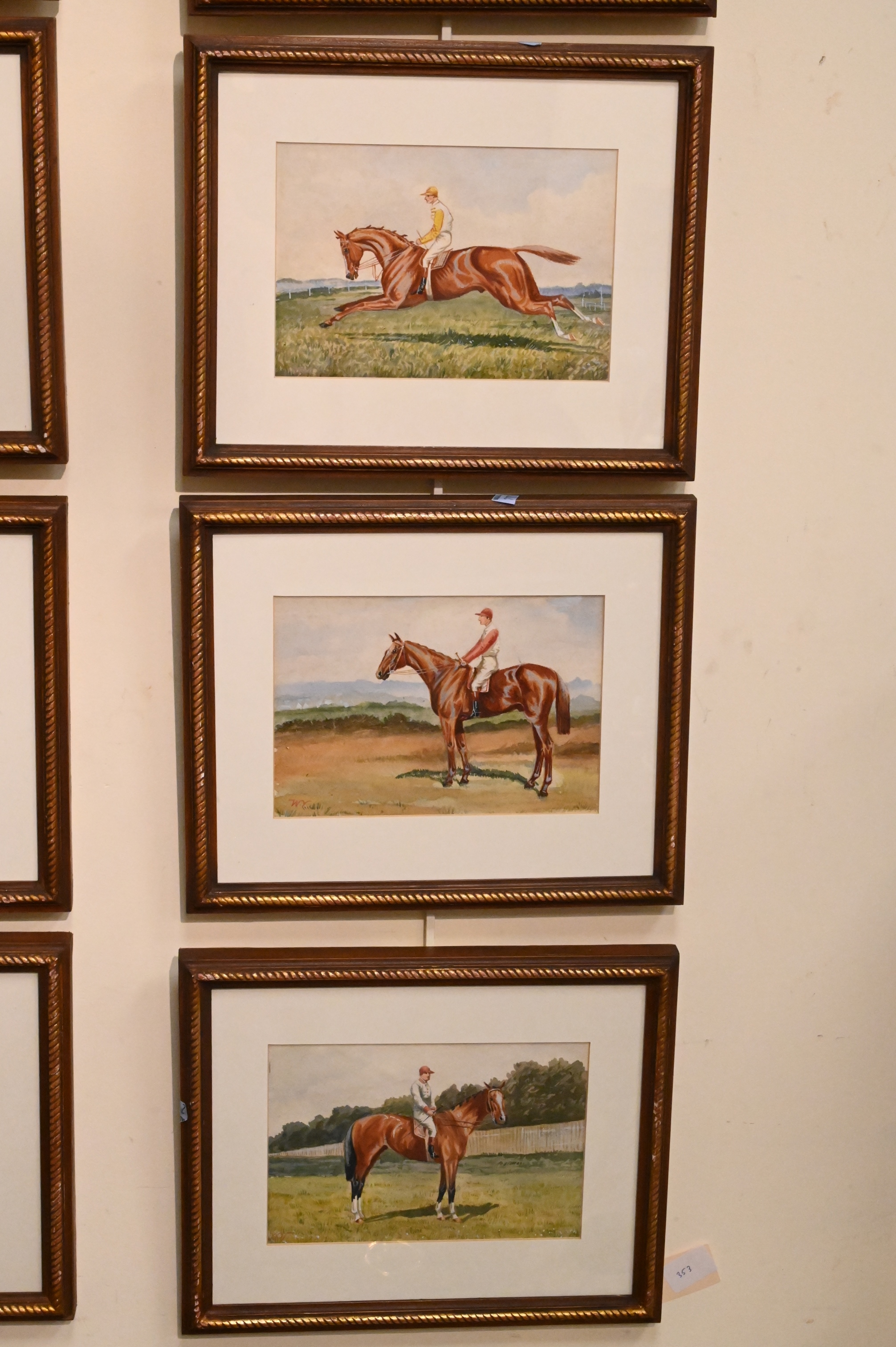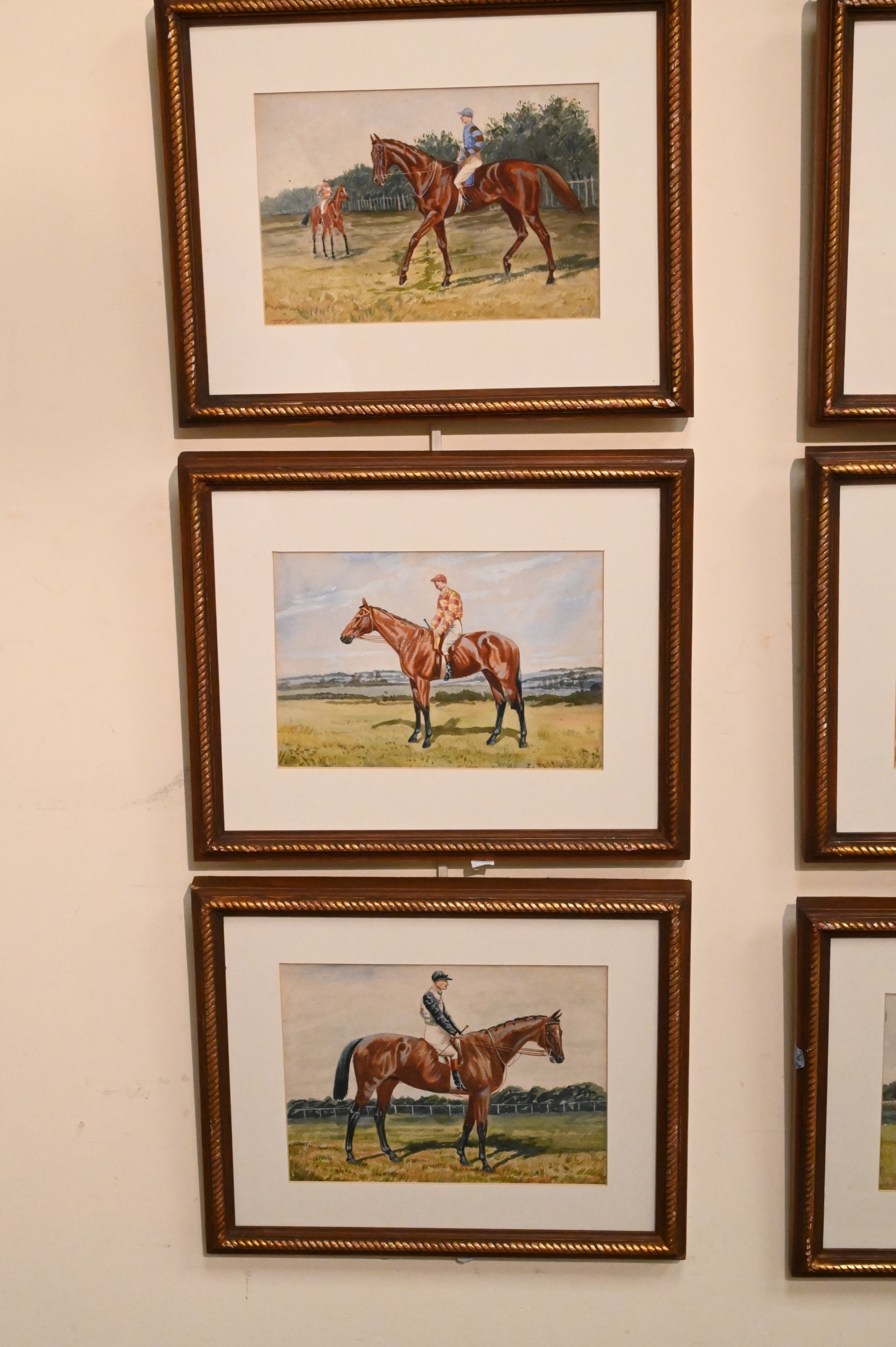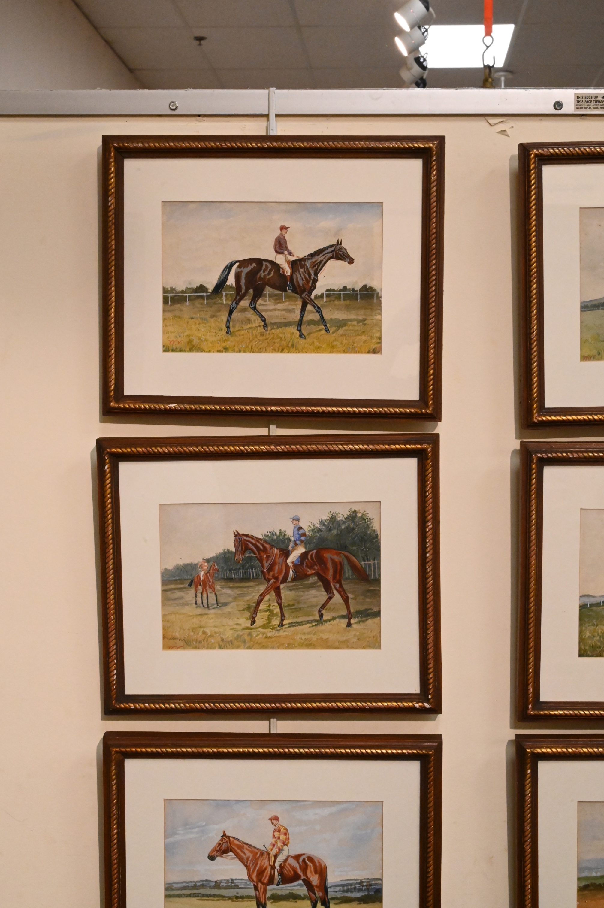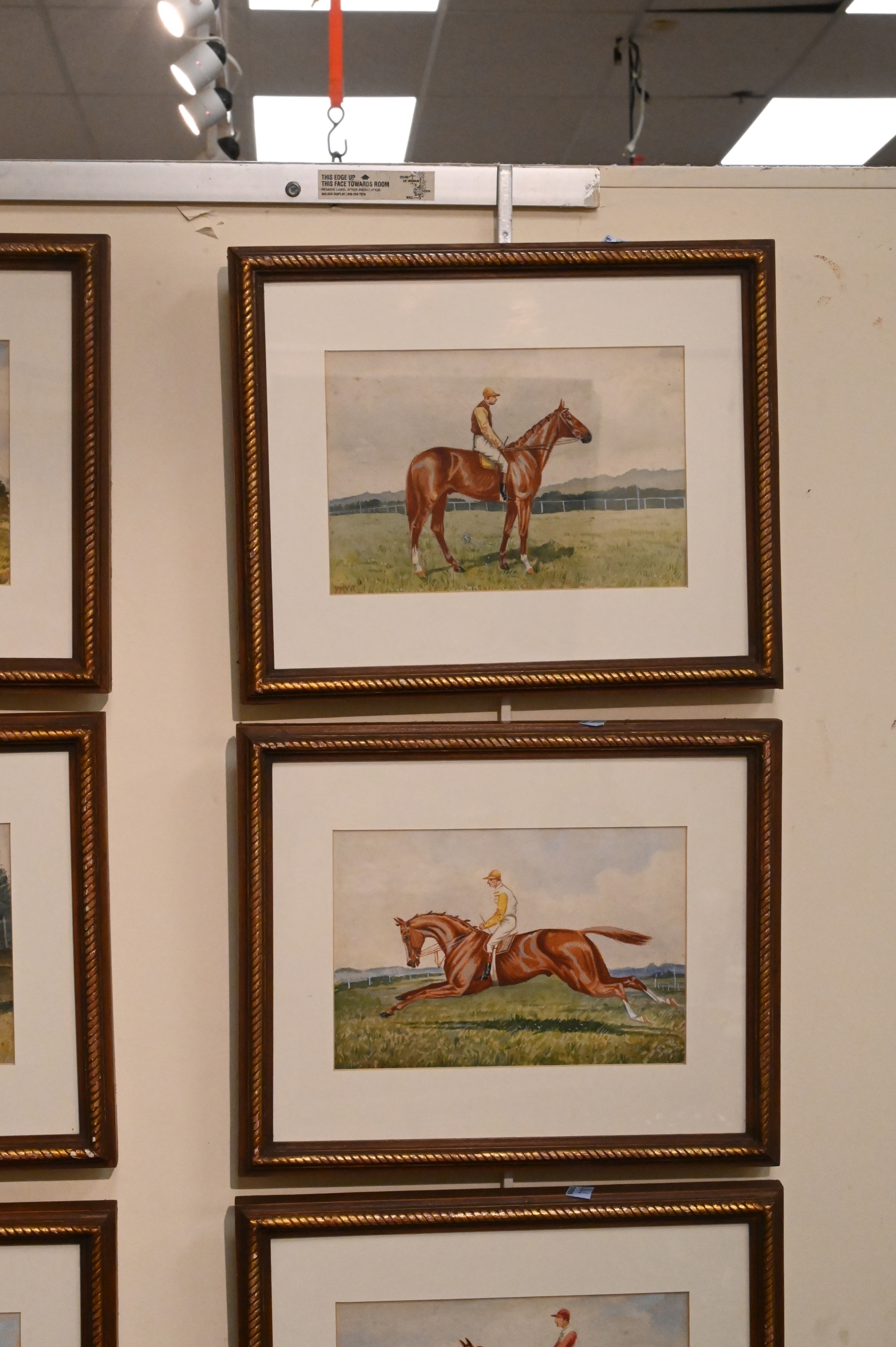 Lot 353: Group of Eight Watercolors of Jockeys and Horses