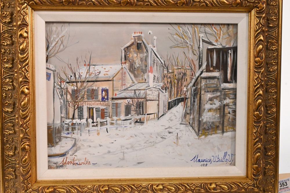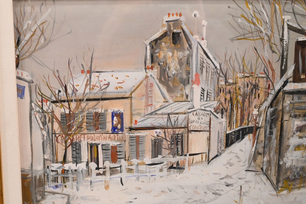 Lot 353: Maurice Utrillo (1883 – 1955), Le Lapin Agile Sous La Neige, Montmartre winter landscape, gouache, signed and dated lower right Maur…