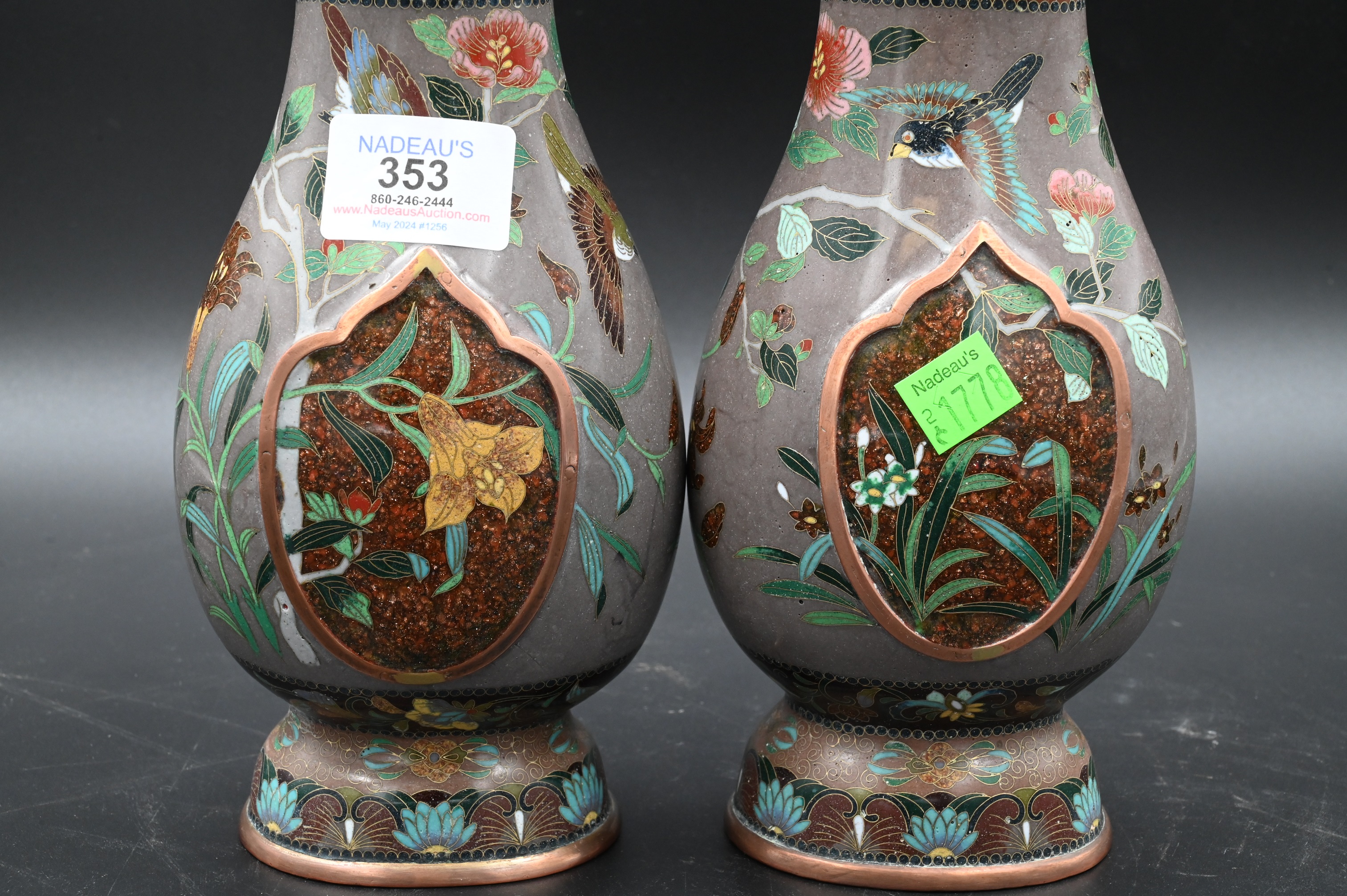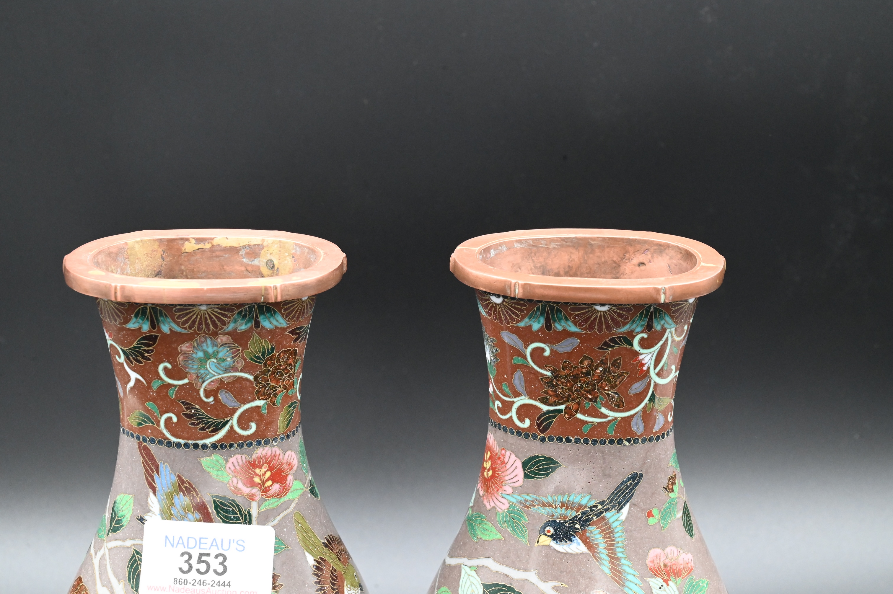 Lot 353: Pair of Japanese Enamel Cloisonne Vases