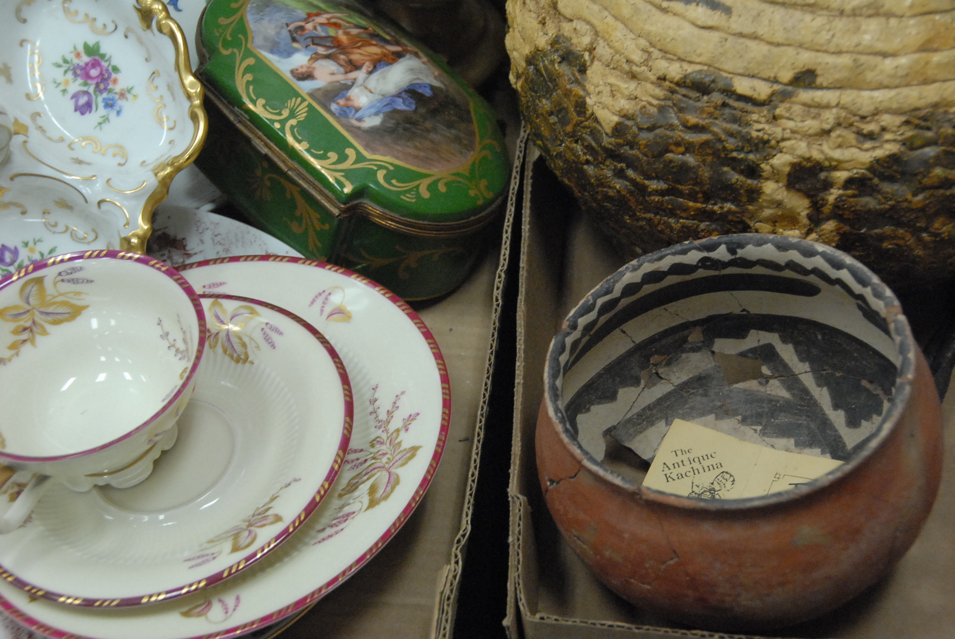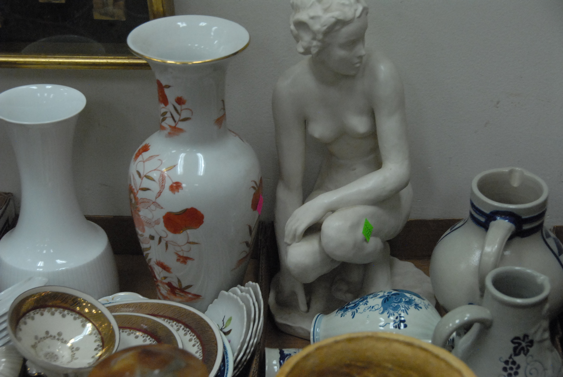 Six box lots including Rosenthal figure, china, metalwork etc.
