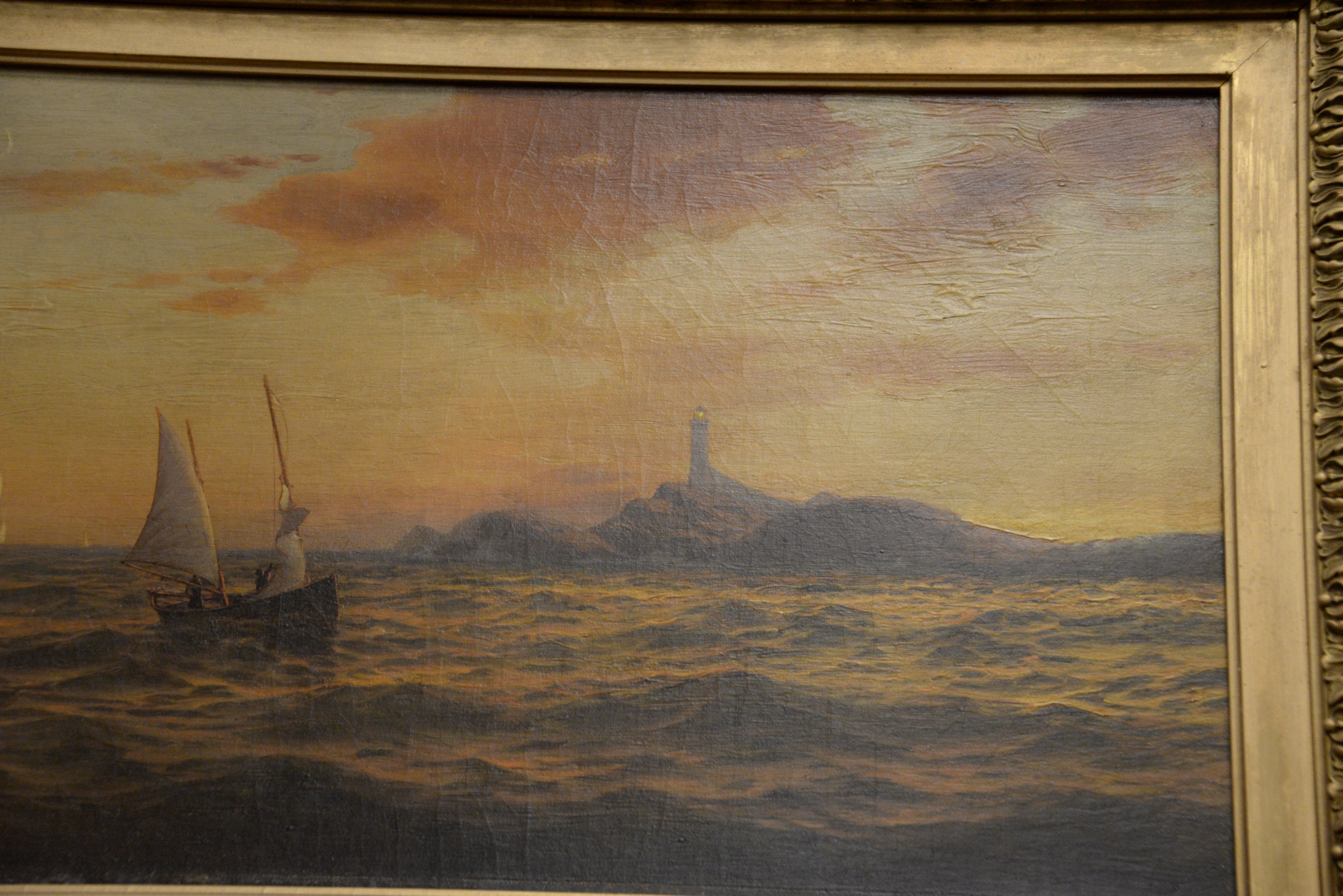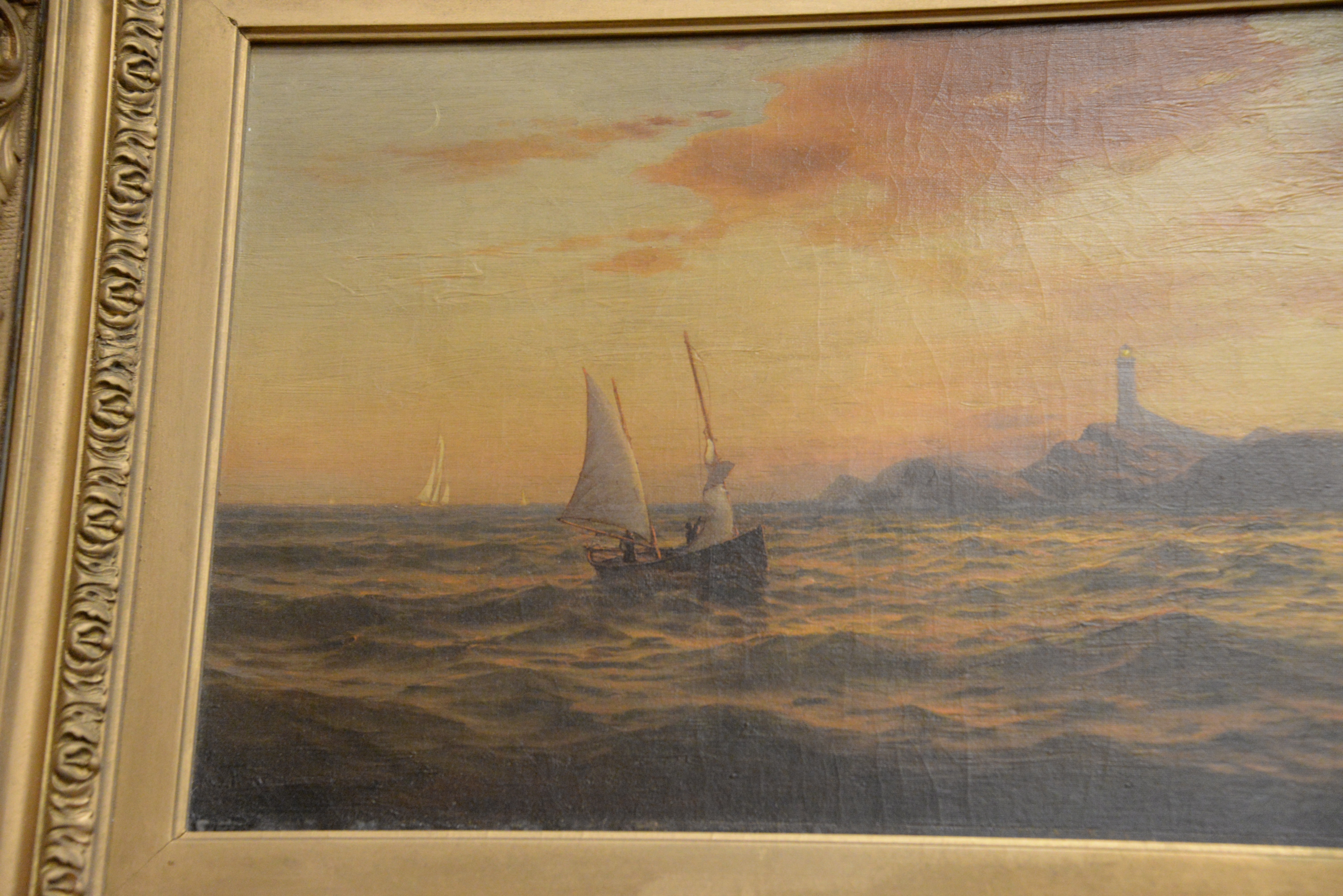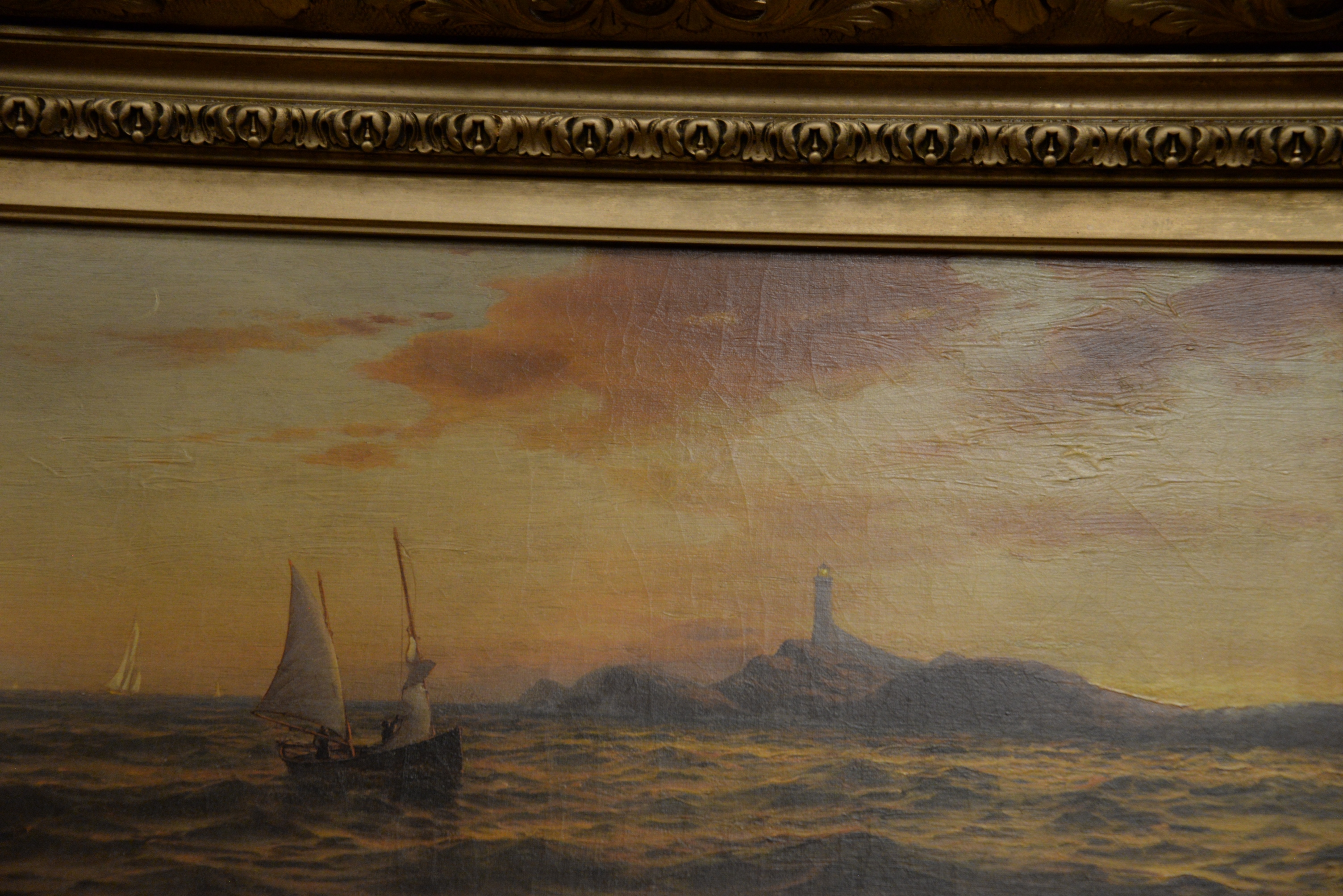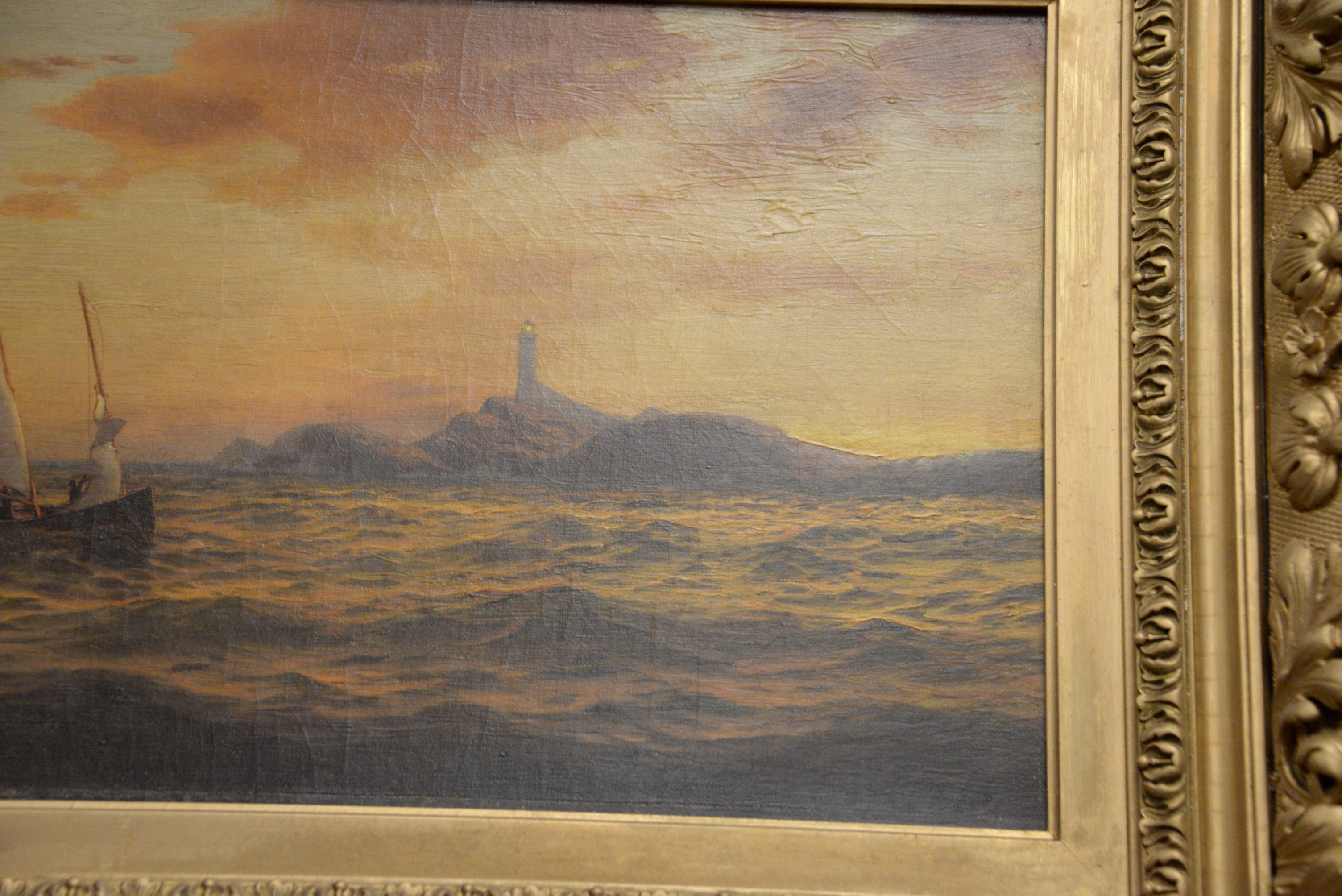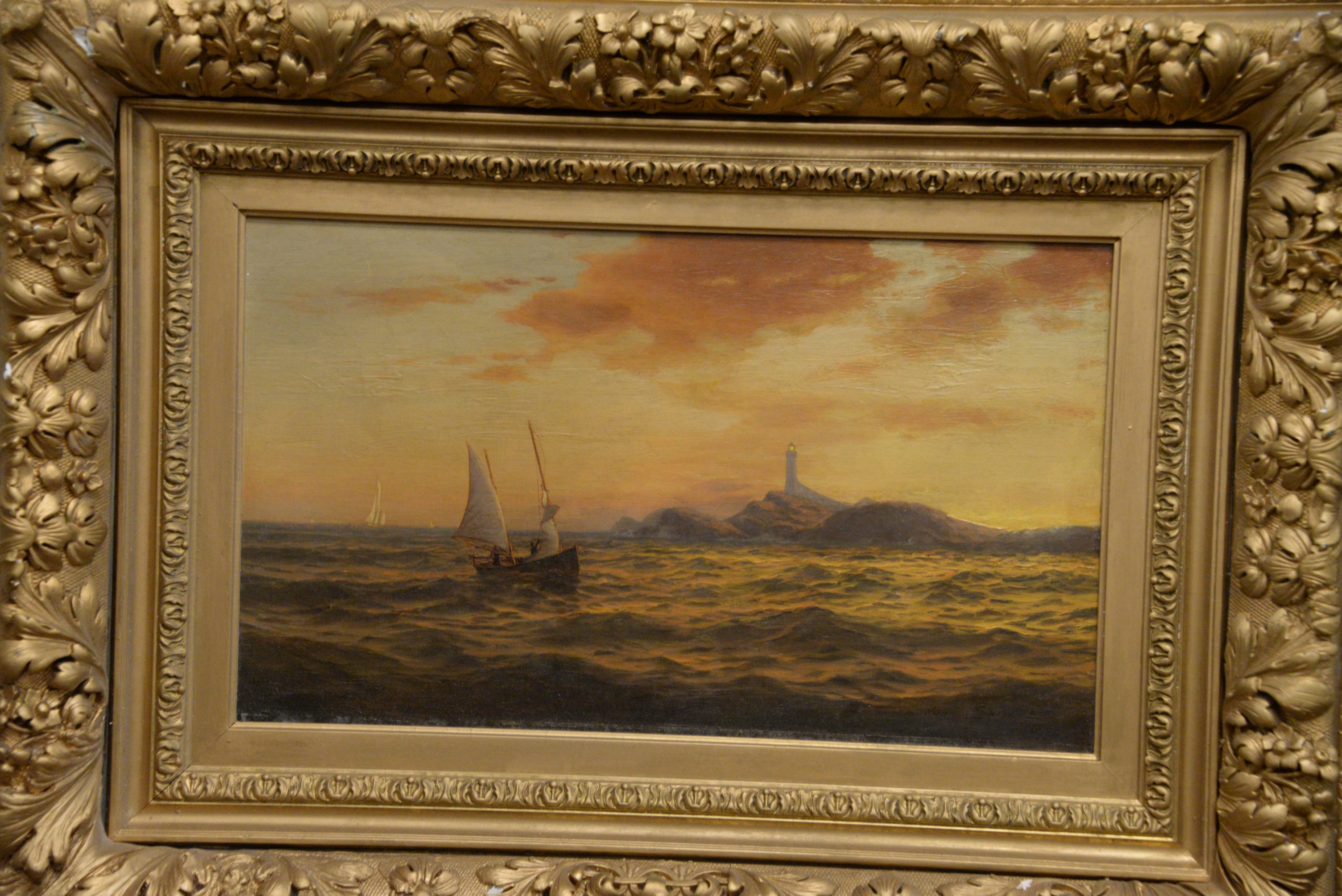 Warren Sheppard (American, 1858 – 1937) “Rounding Isle of Shoel Lighthouse” oil on canvas signed lower right “Warren Sheppard, 1866″ 12″ x 20”.