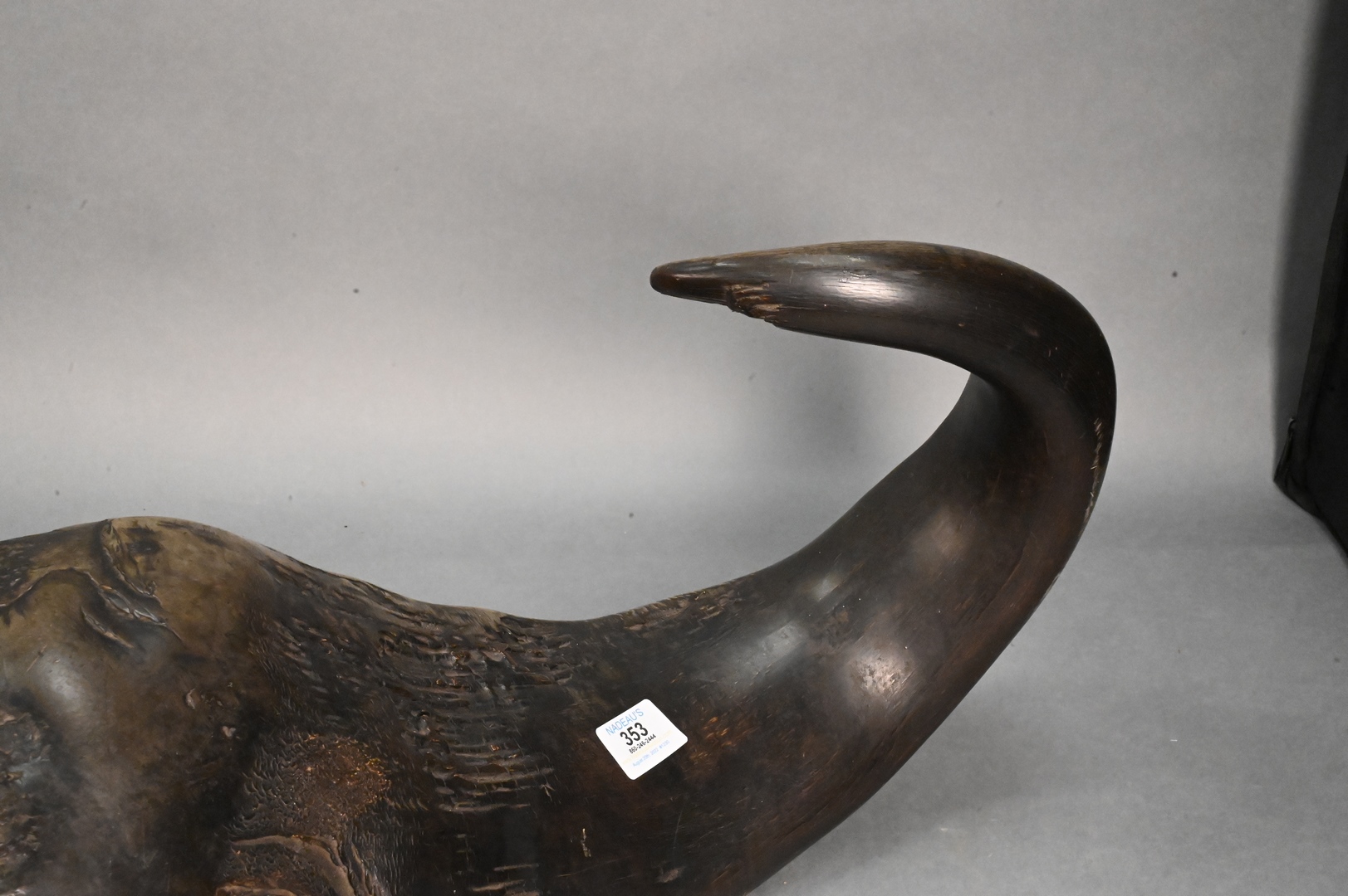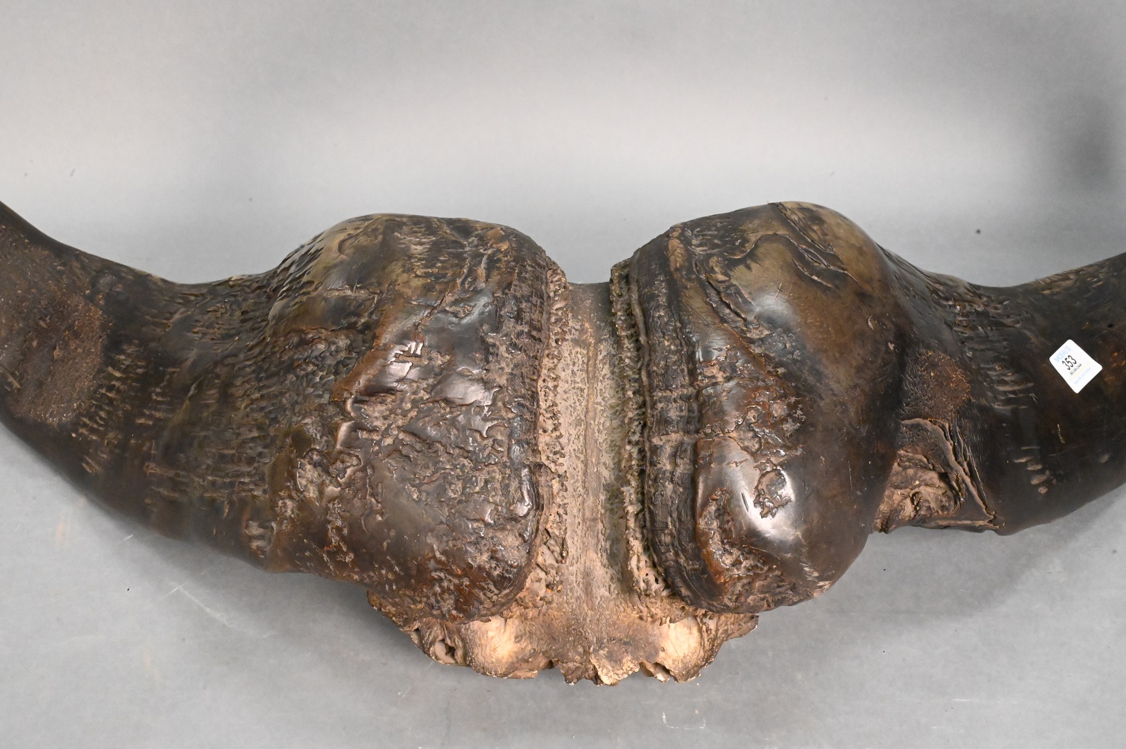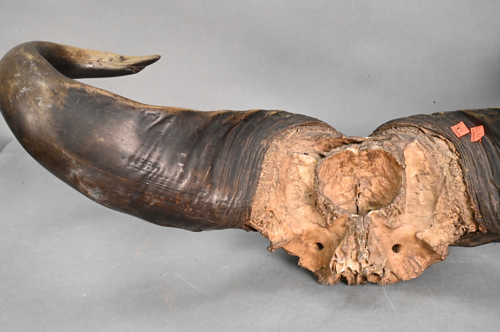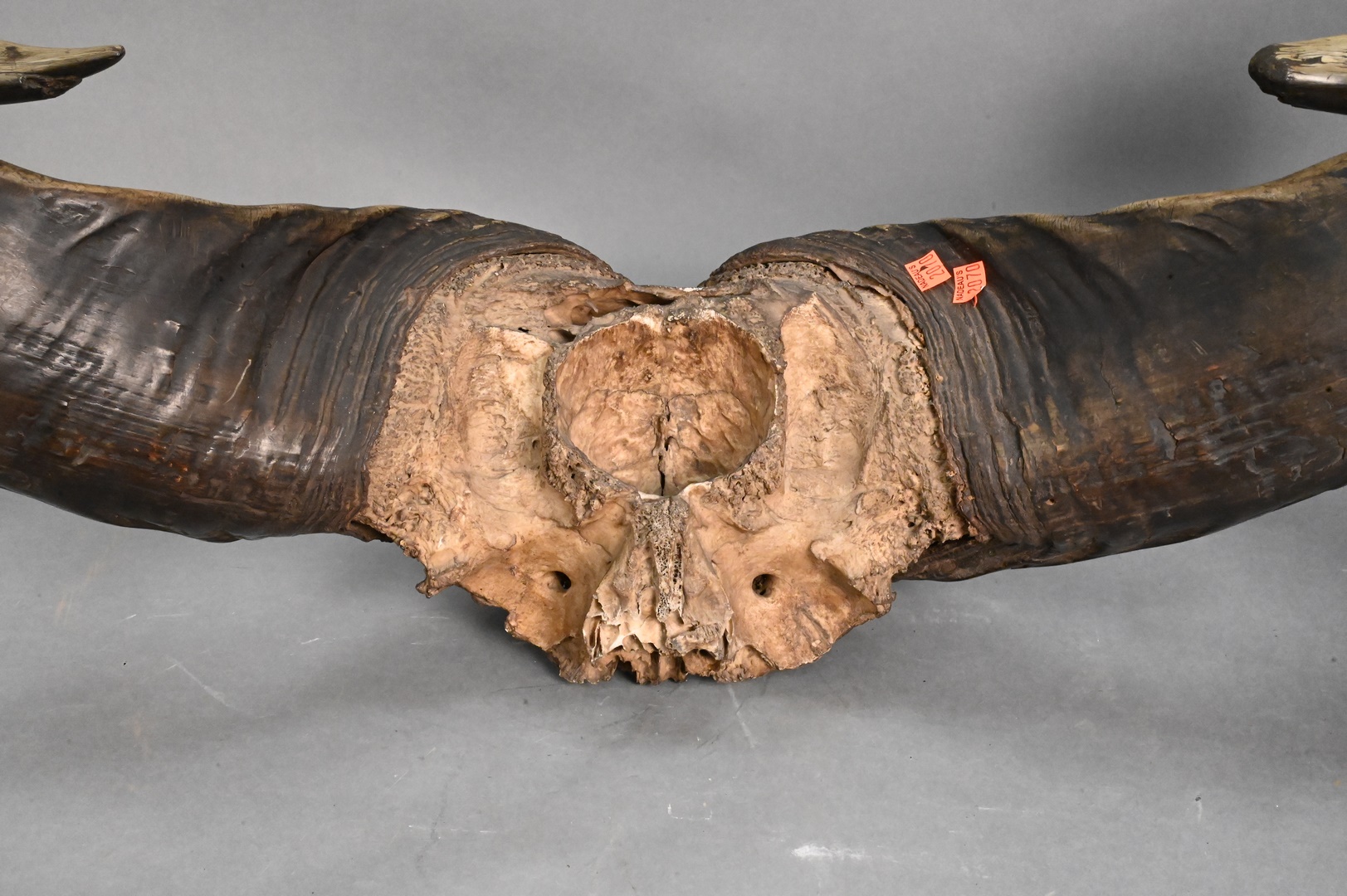 Water Buffalo Horns, length 38 inches, along with a pair of antlers, length 28 inches.