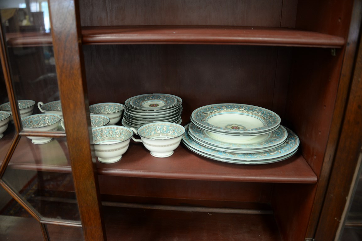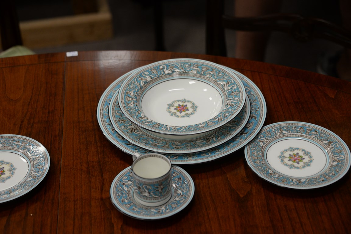 Lot 353: Wedgwood Florentine dinnerware set to include 8 dinner plates dia. 10 3/4 in., 8 lunch plates, 8 cups and saucers, 8 bowls, etc.
