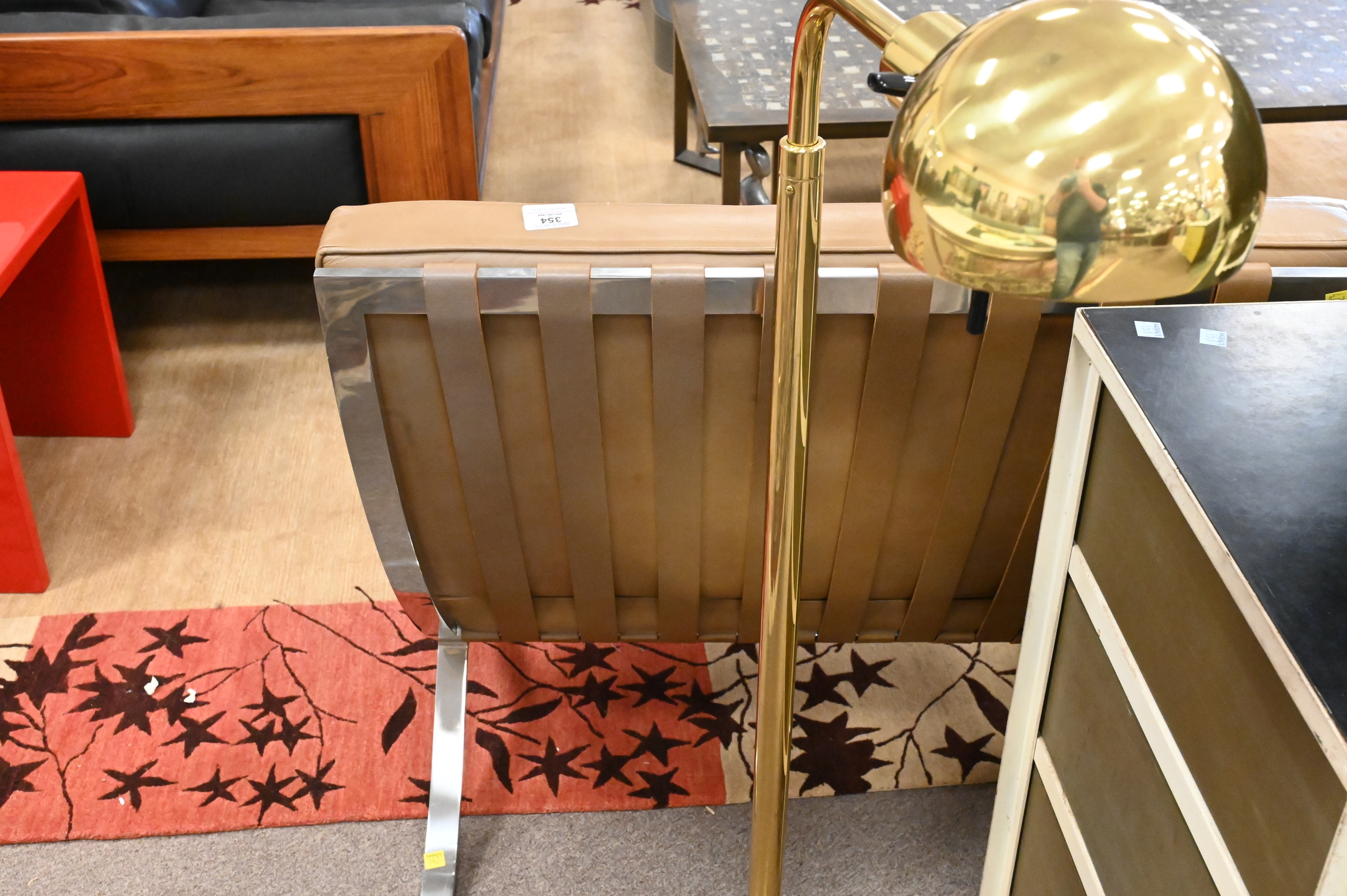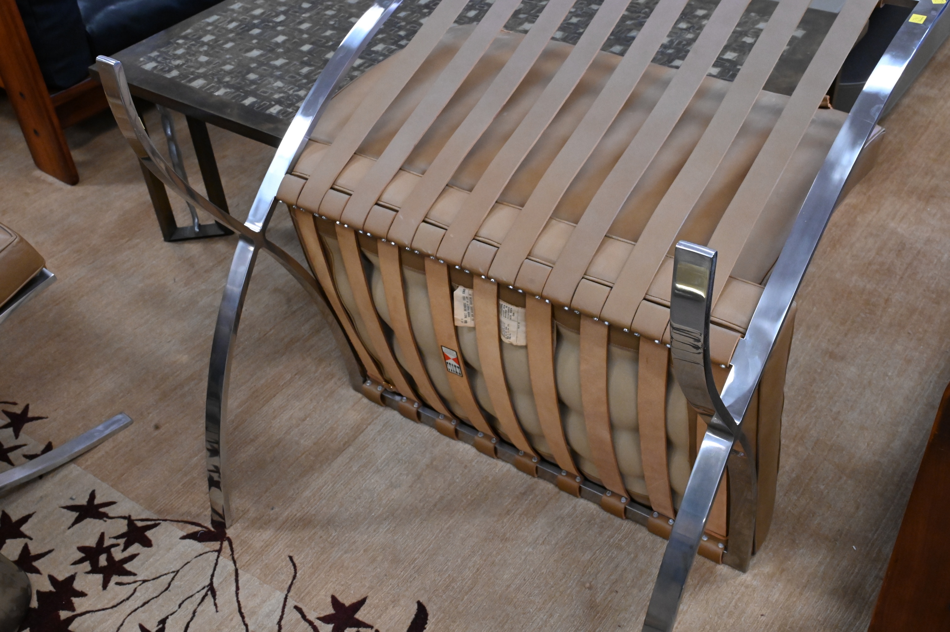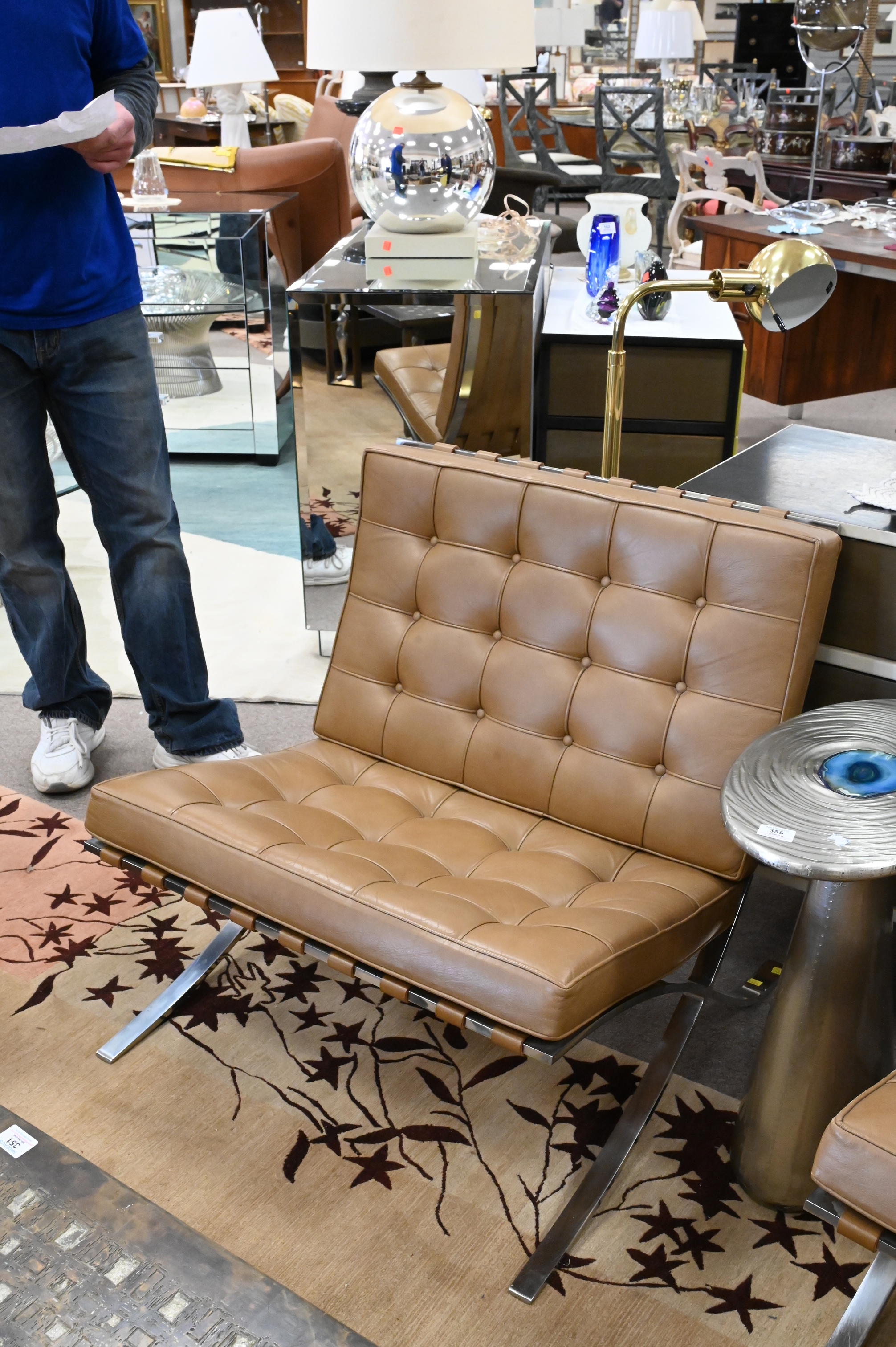 A Pair of Mies Van Der Rohe Barcelona Leather Lounge Chairs, height 30 inches, width 29 1/2 inches.