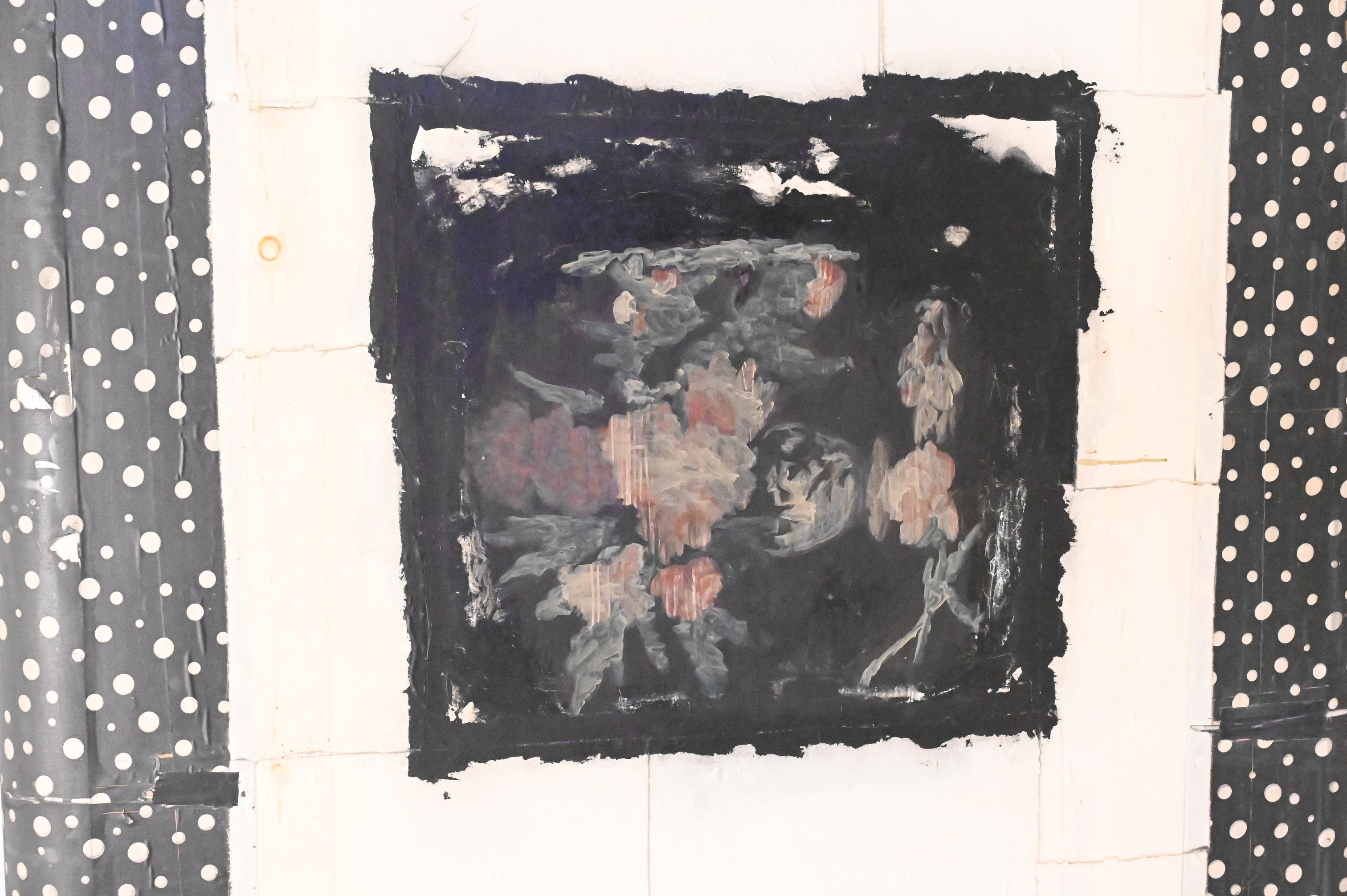 Acrylic, oil, paper on fabric