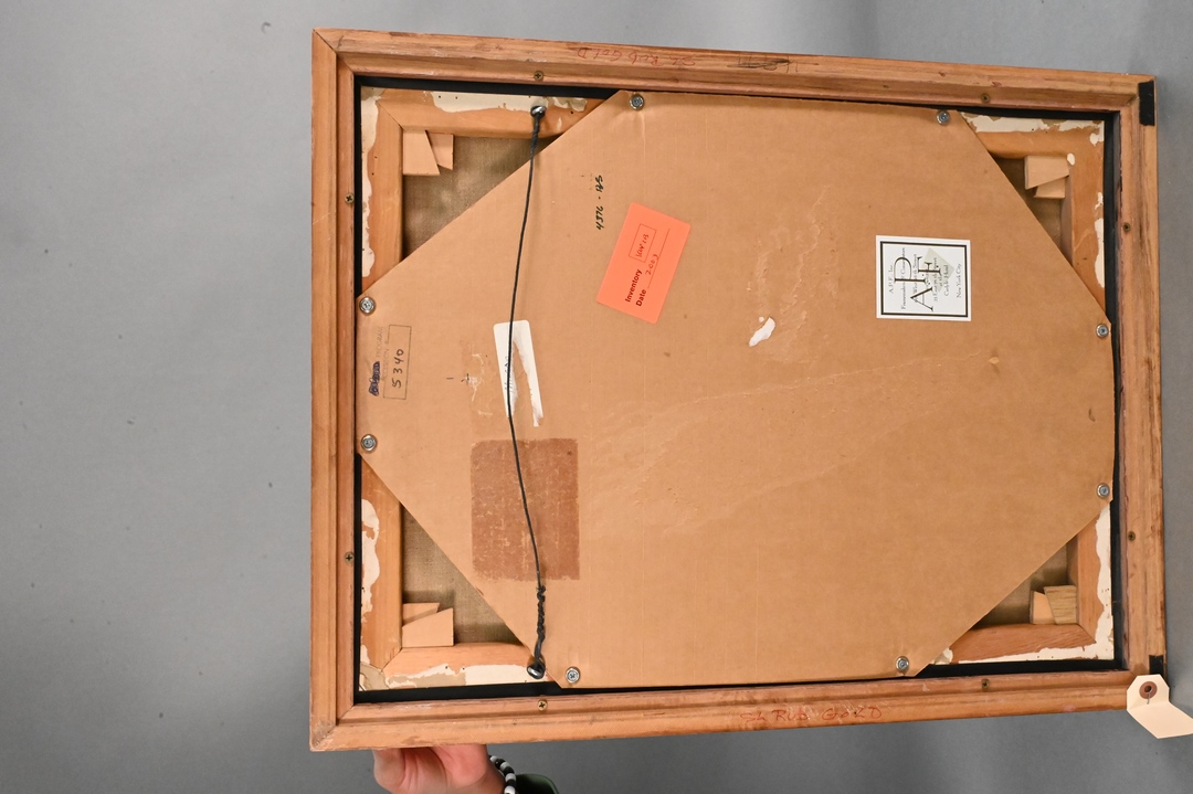 Condition: Stretcher marks, light wear around edges, a little dirty. Good under black light.